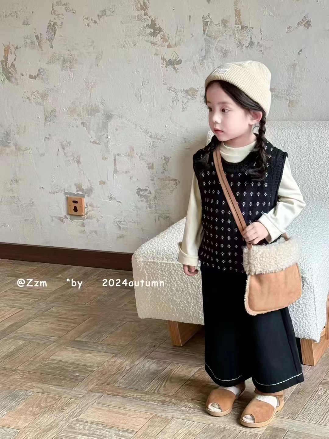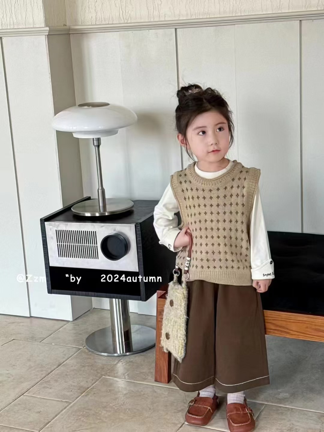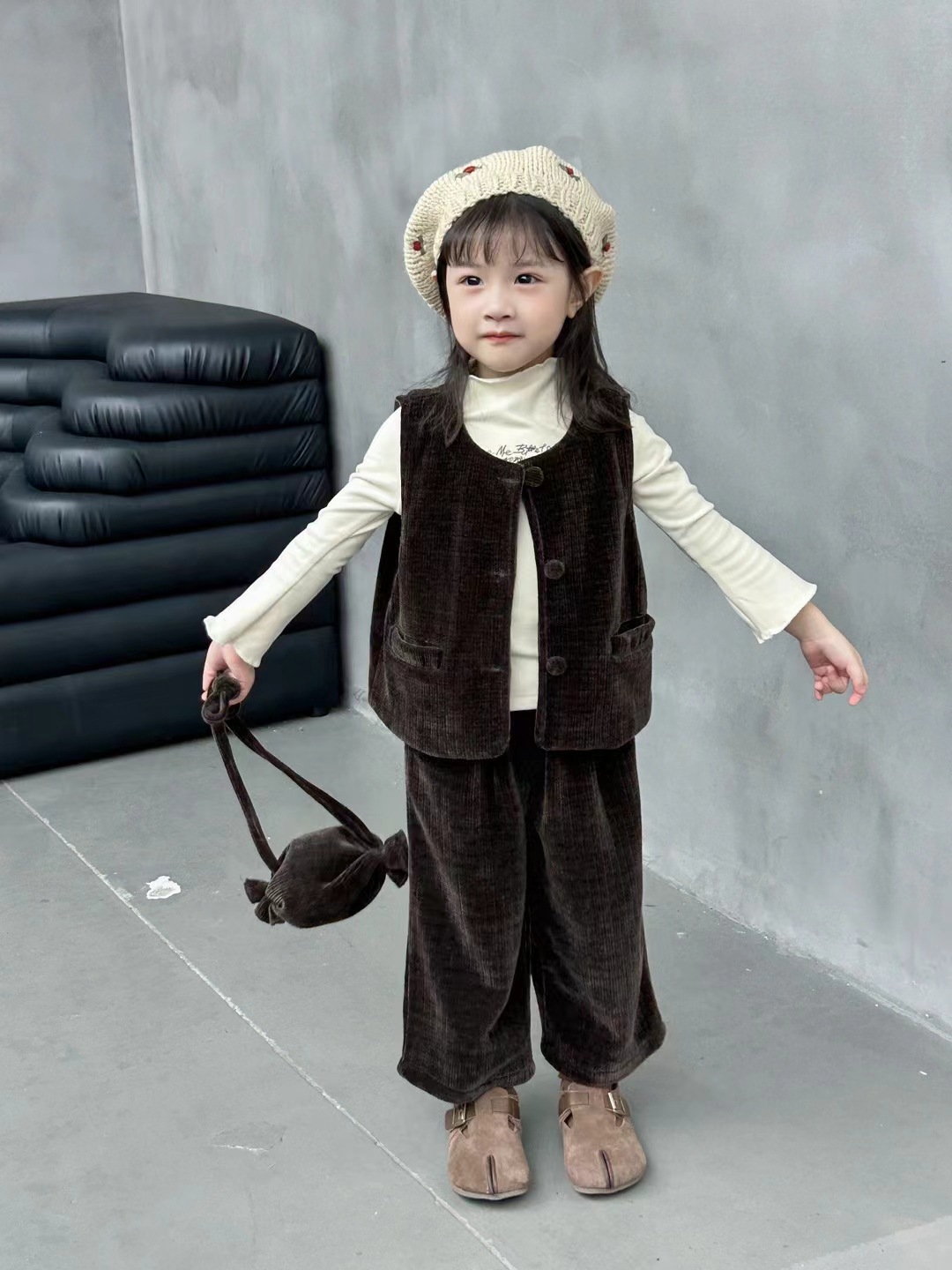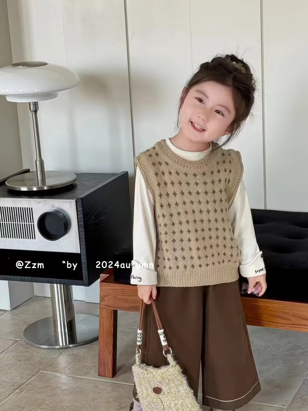 2024新款大麦马甲打底长裤三件套春秋款套装长袖衬衣马甲背心套