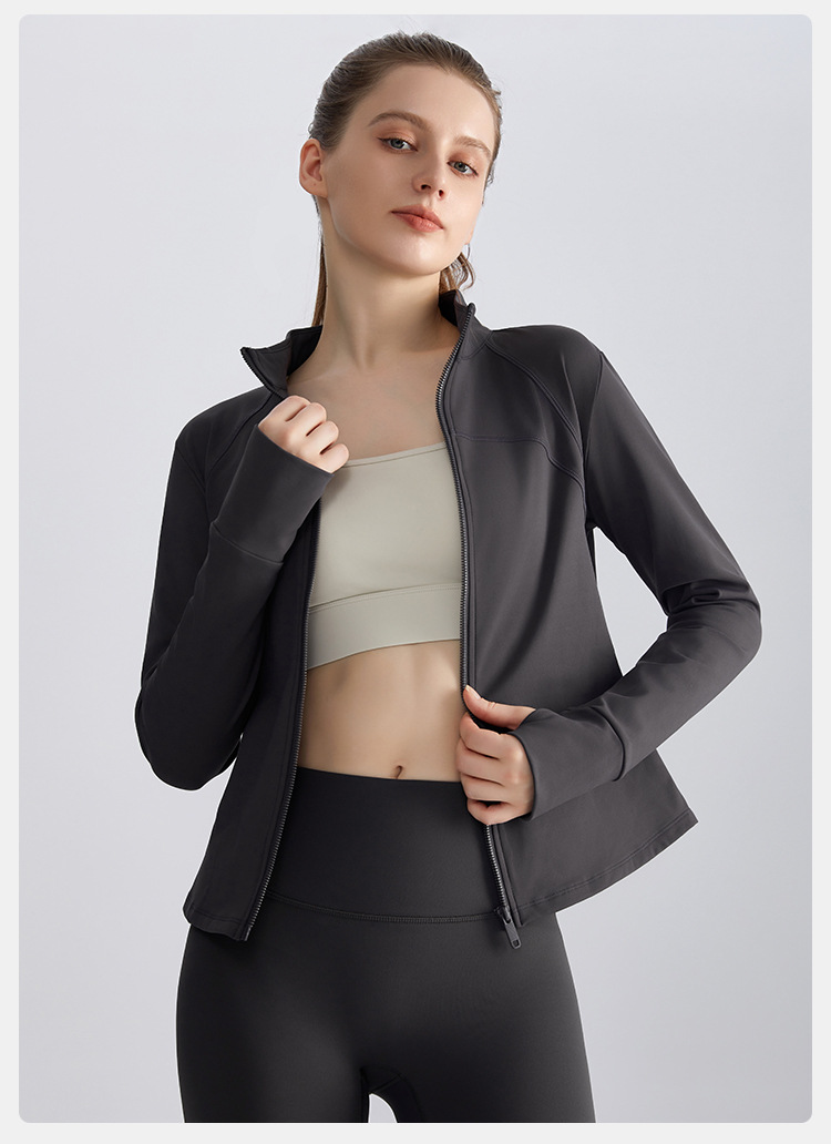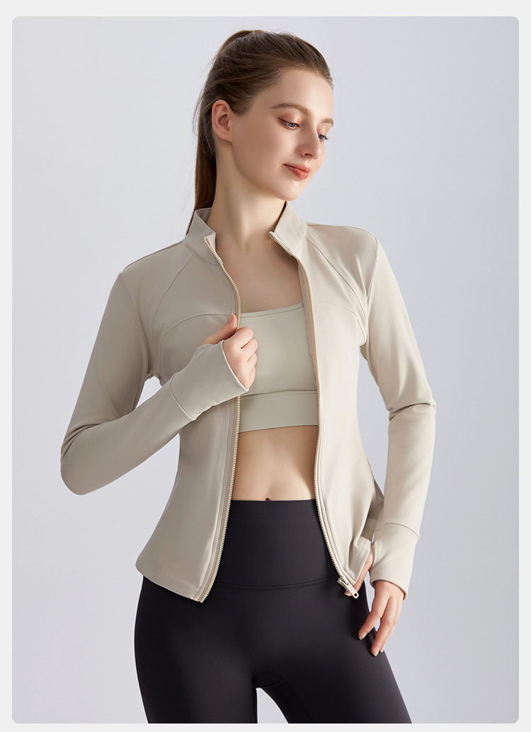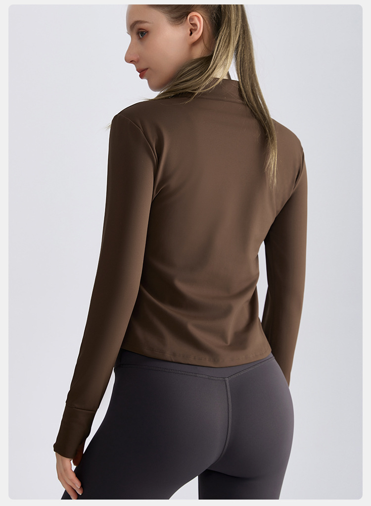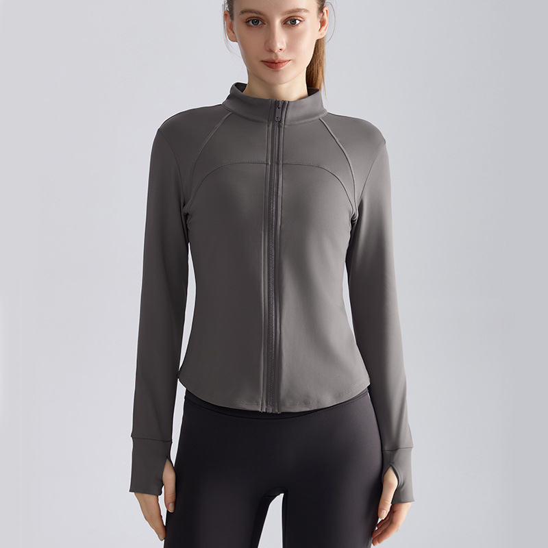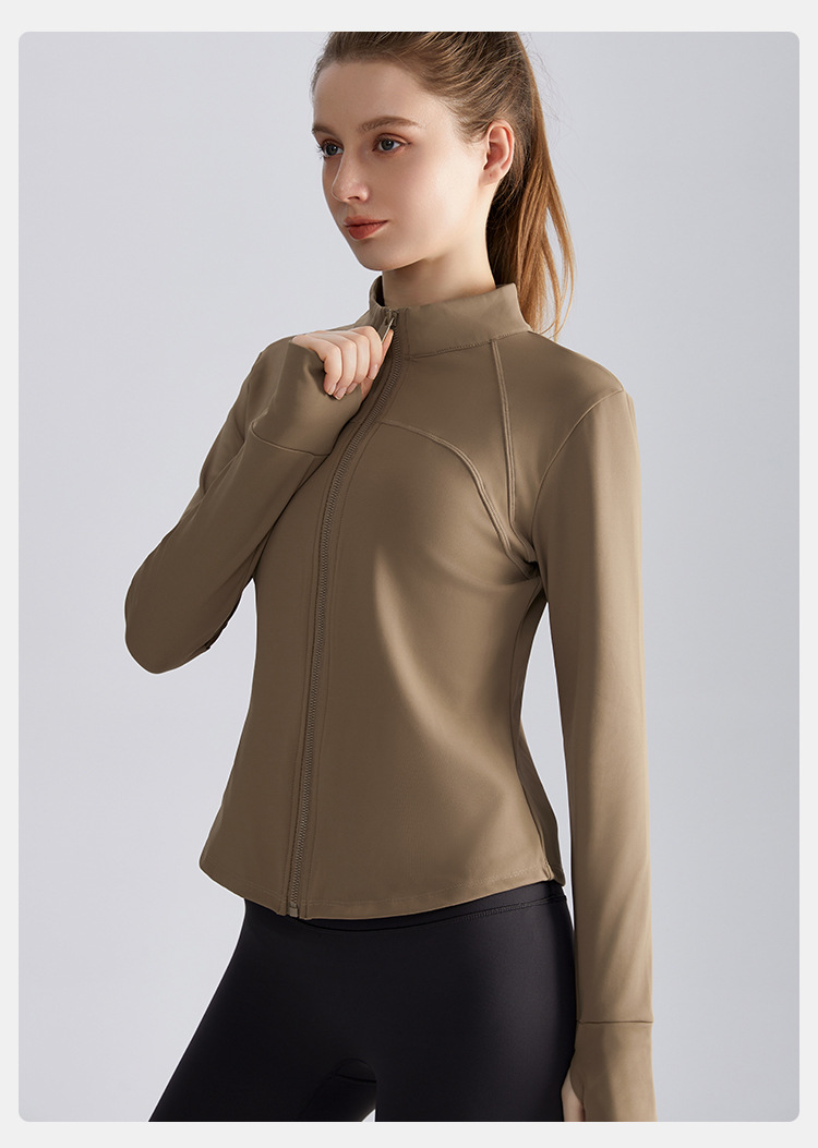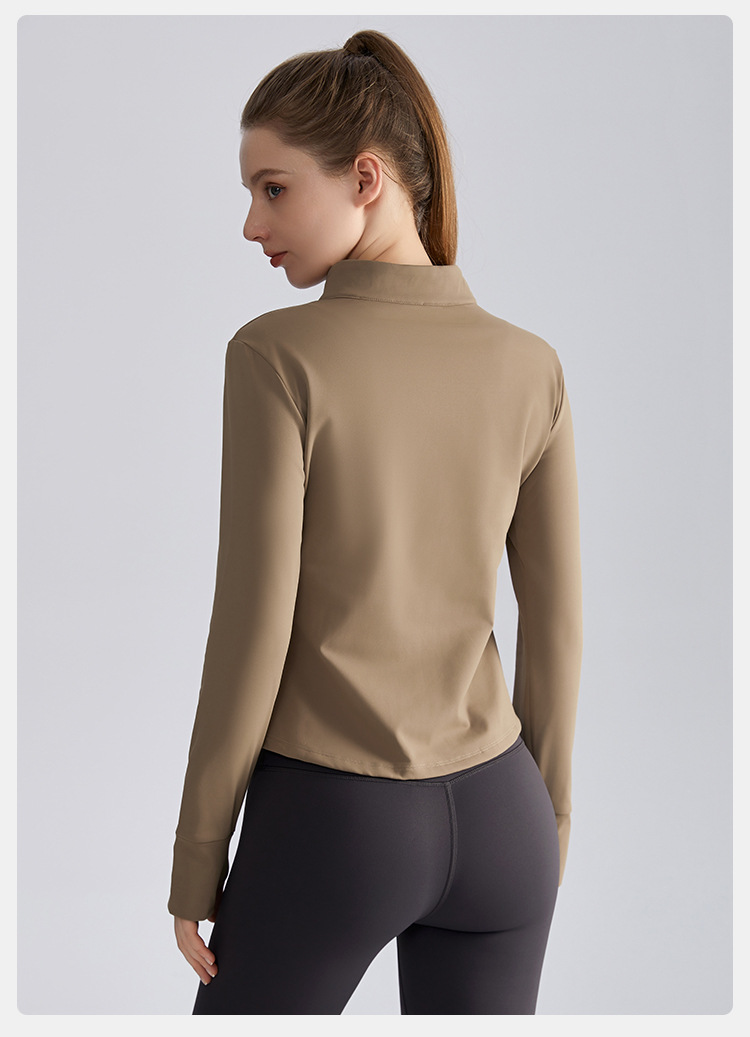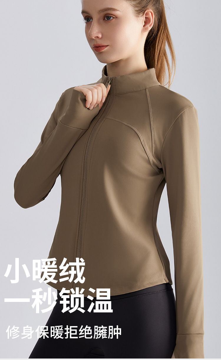 라헨 여성용 가을 슬림핏 지퍼 셔츠 긴팔 보온 스탠드 칼라 피트니스 요가복 상의