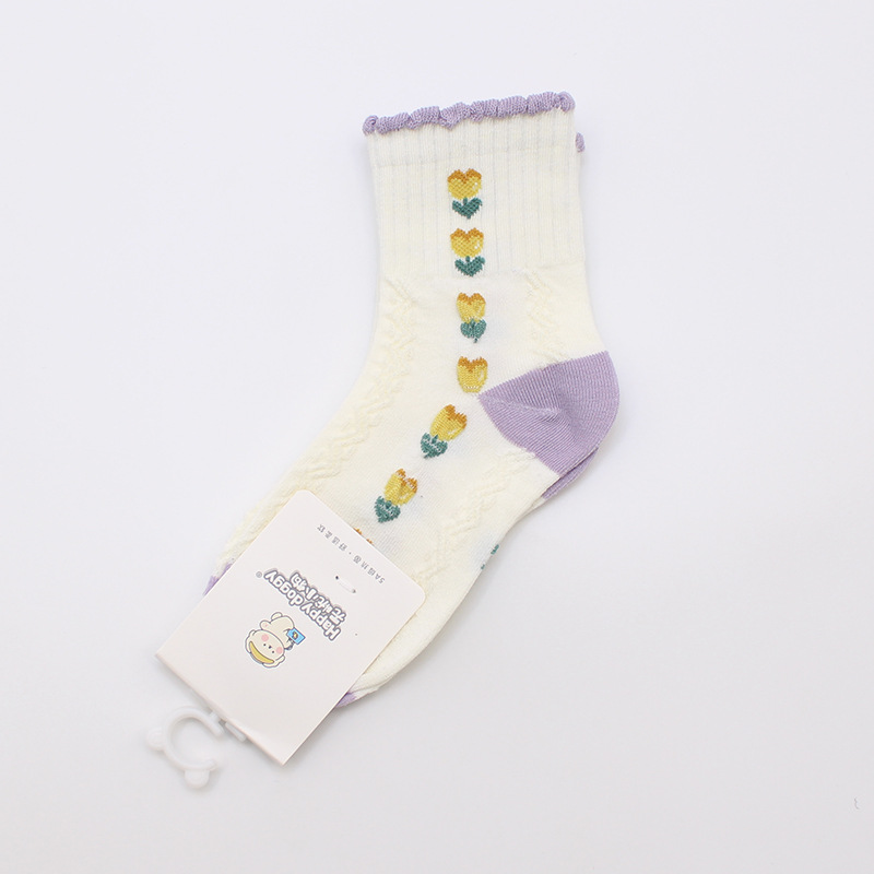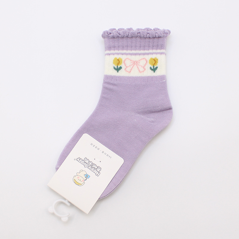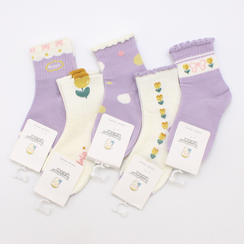 2024 어린이 양말 가을 겨울 새로운 튜브 귀여운 보라색 꽃 소녀 아기 크고 중간 스몰 사이즈 양말 도매스토어 가기