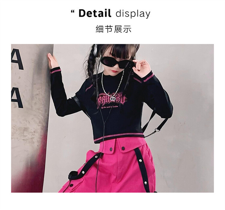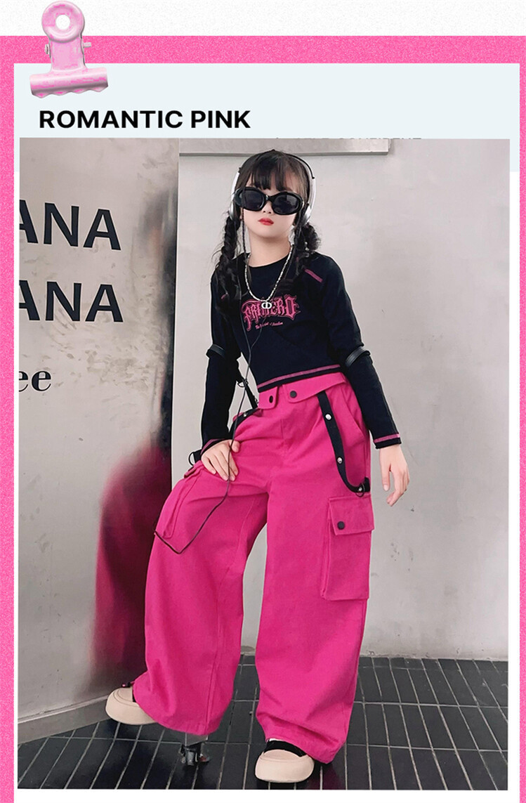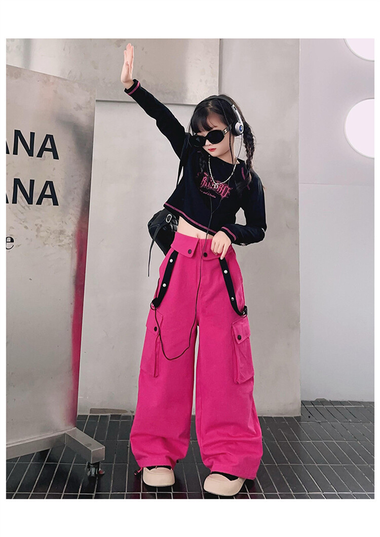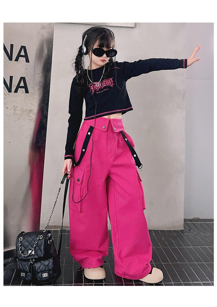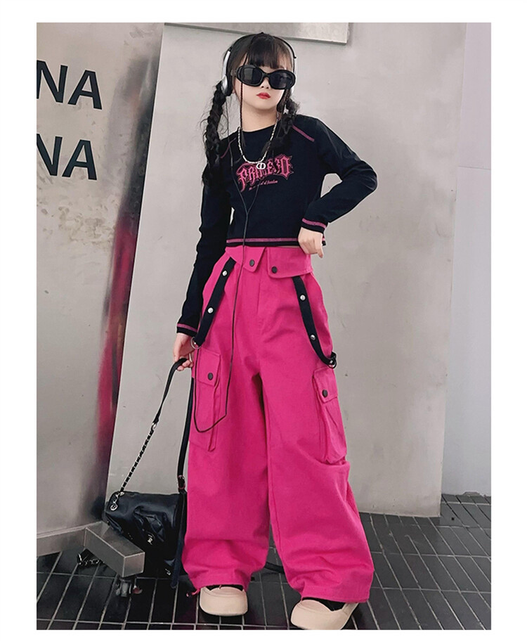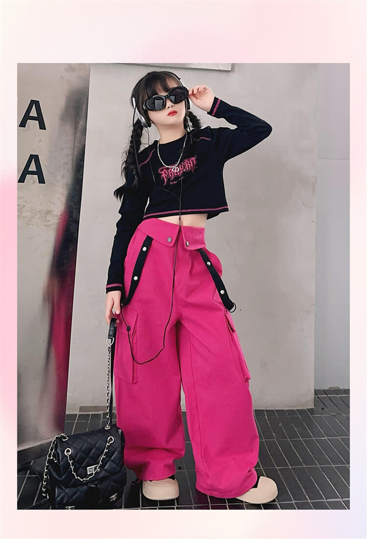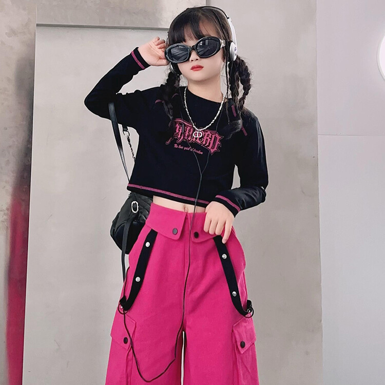 소녀 트렌디 쿨 작업복 바지 스트리트 댄스 세트 2024 새로운 어린이 서양식 봄과 가을 원피스 한국 스타일 맞춤형 소녀 아동복