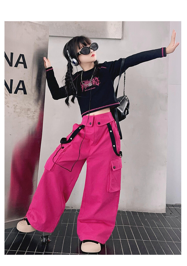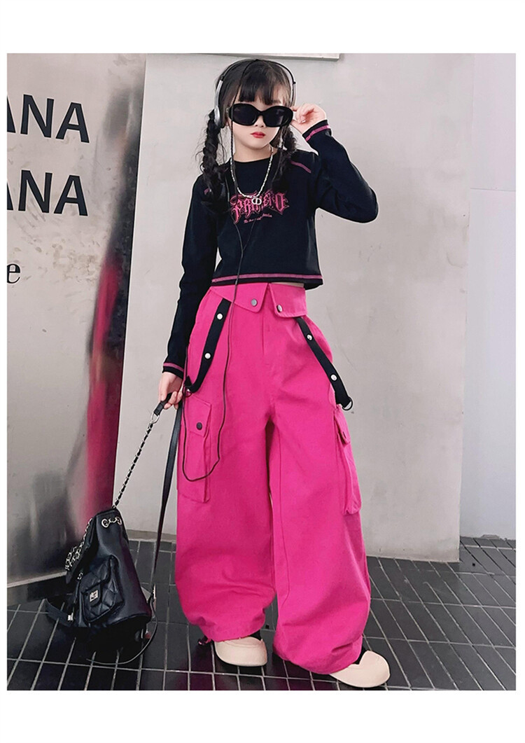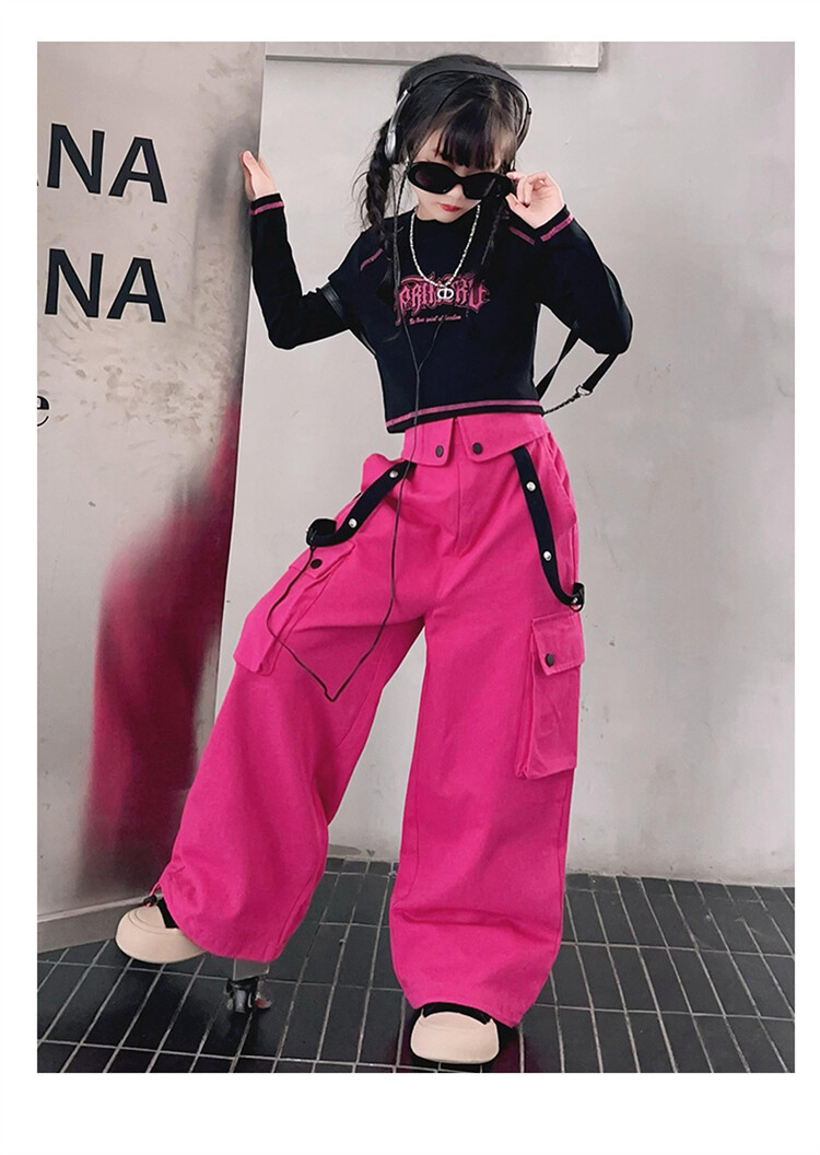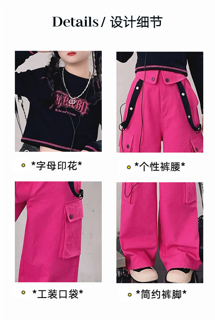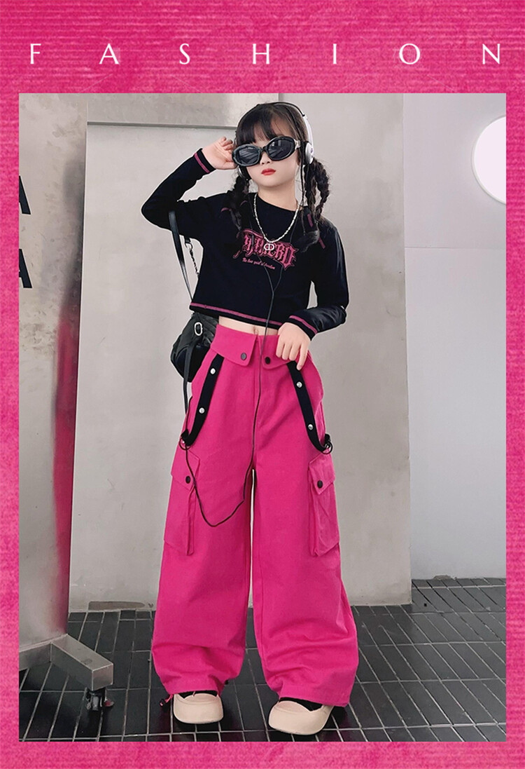 소녀 트렌디 쿨 작업복 바지 스트리트 댄스 세트 2024 새로운 어린이 서양식 봄과 가을 원피스 한국 스타일 맞춤형 소녀 아동복스토어 가기