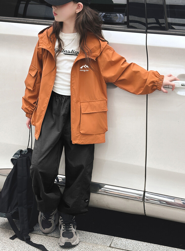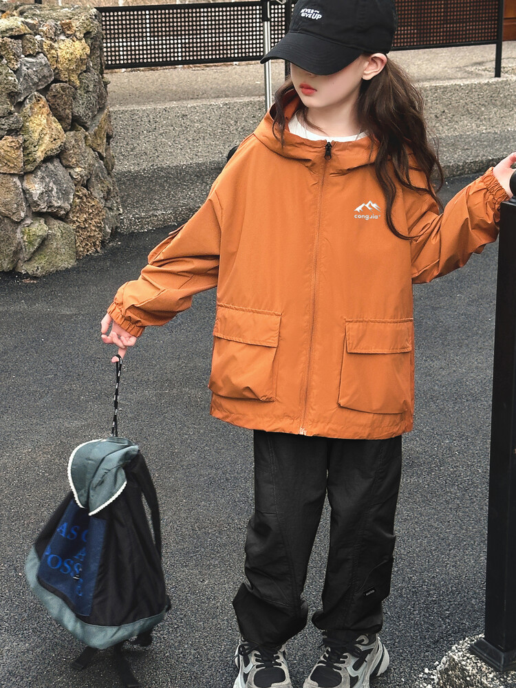 소녀 후드 러쉬 옷 봄과 가을 유행 느슨한 작업복 재킷 중 큰 어린이 유행 캐주얼 자켓 트렌치 코트