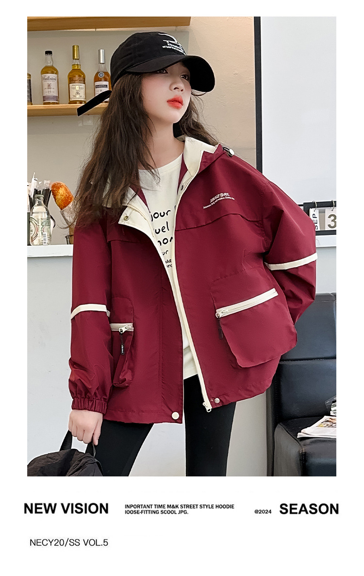 소녀의 봄과 가을 후드 러쉬 의류 초가을 코트 큰 어린이 유행 서양식 어린이 가을 옷 한국 스타일 트렌디 탑