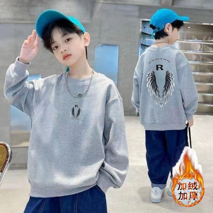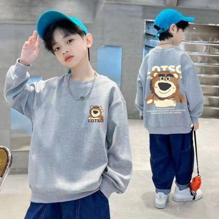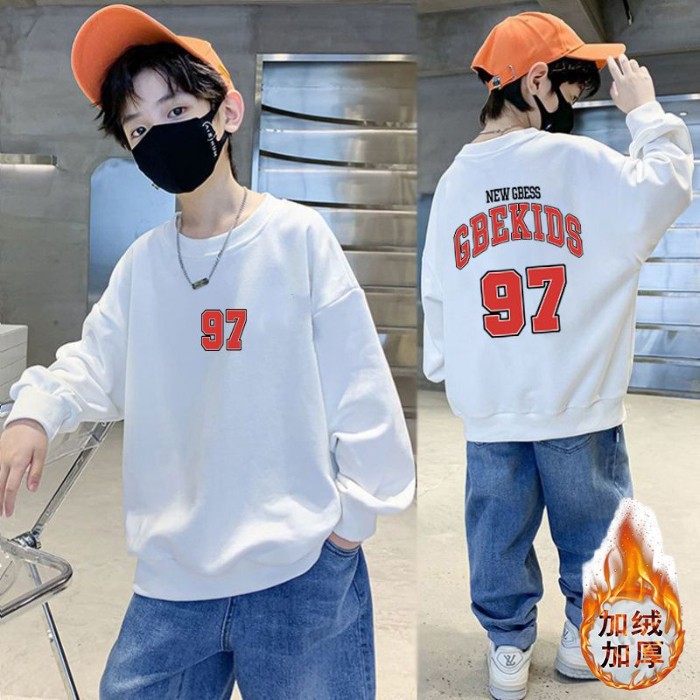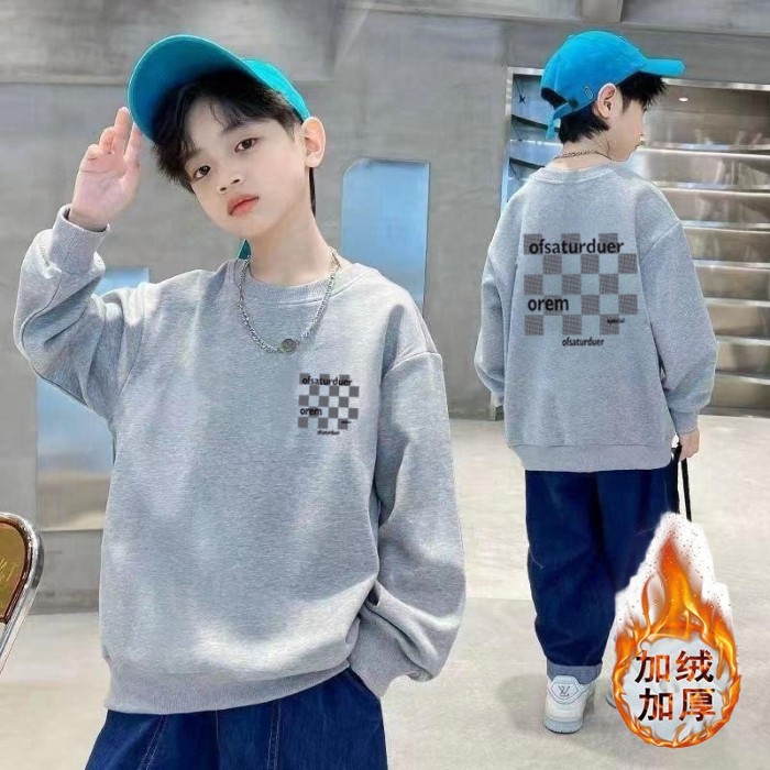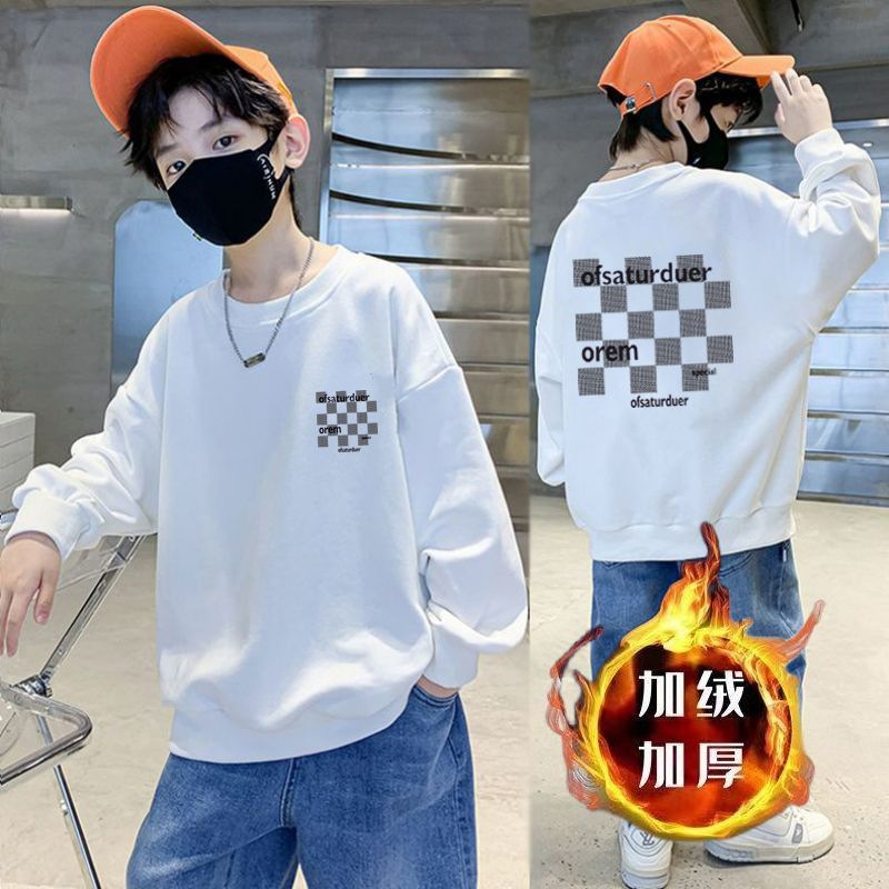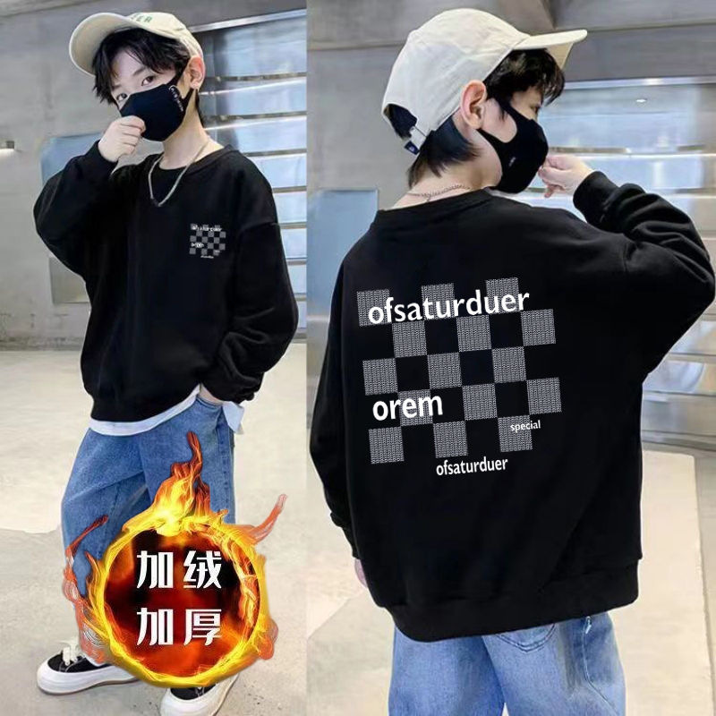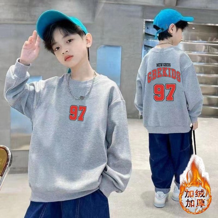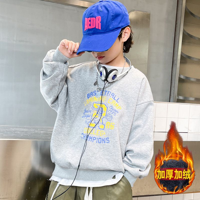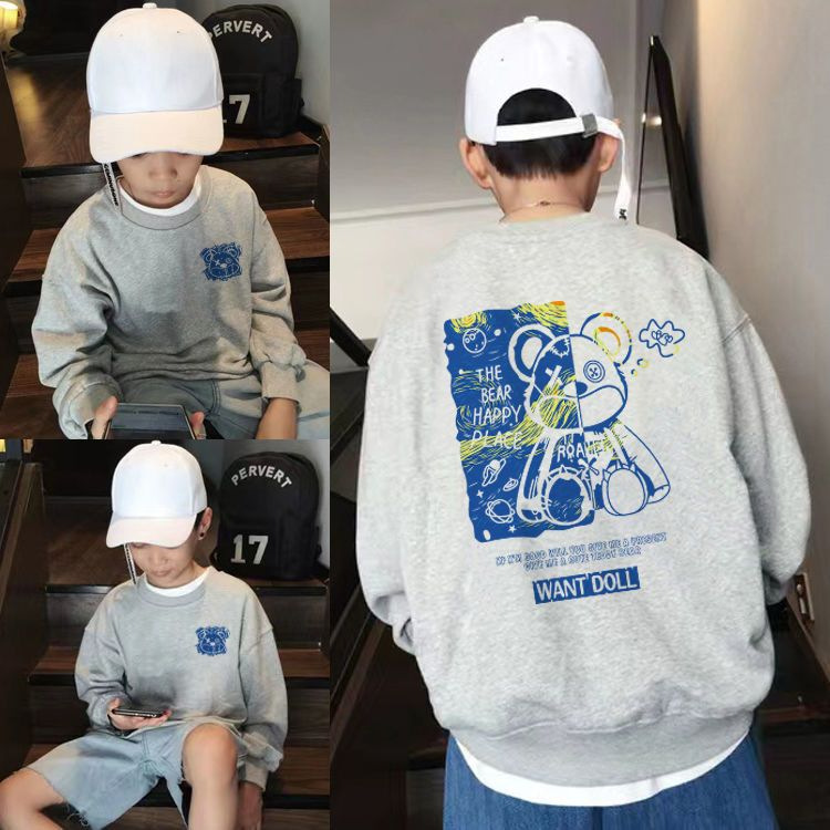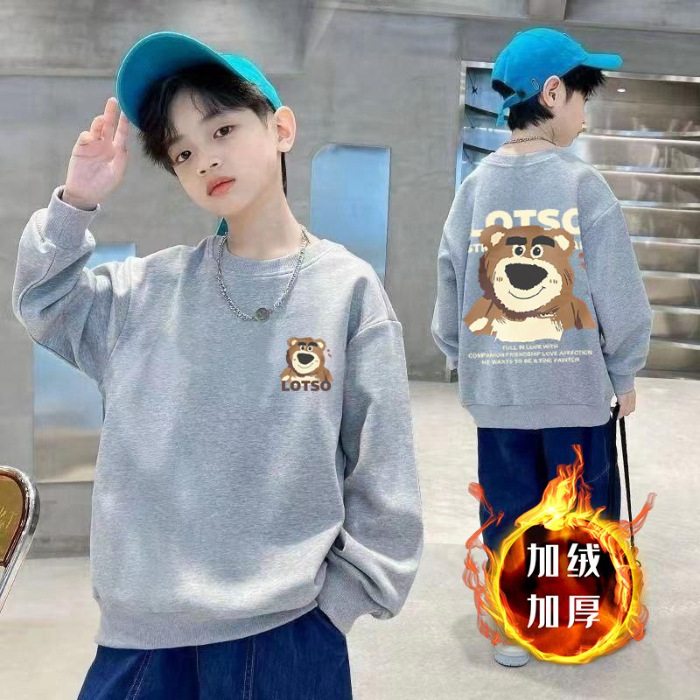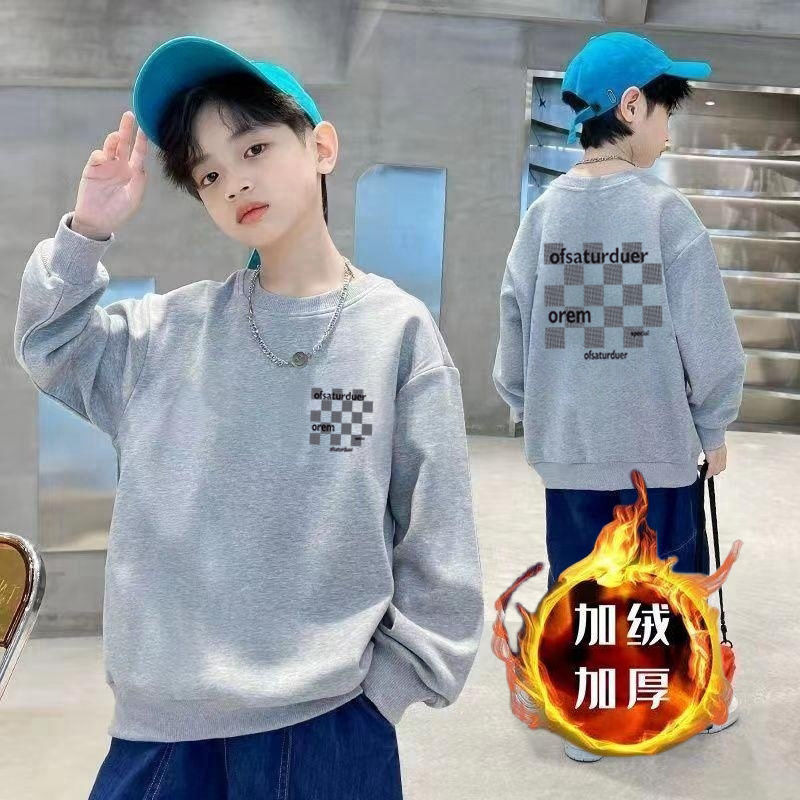 남아용 긴팔 순면 스웨트셔츠, 봄 가을용 2026년 신상, 멋진 남아 가을옷, 기모 처리된 아동용 상의, 중대형 아동용스토어 가기
