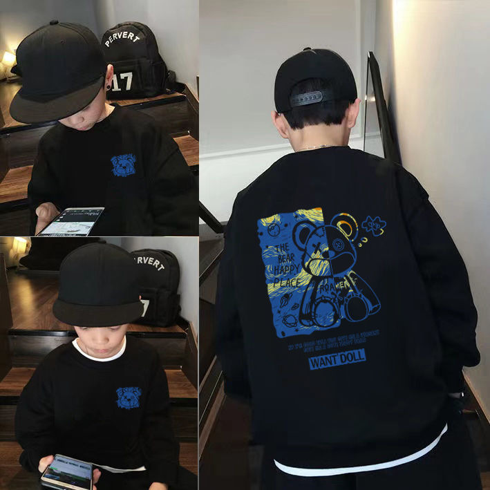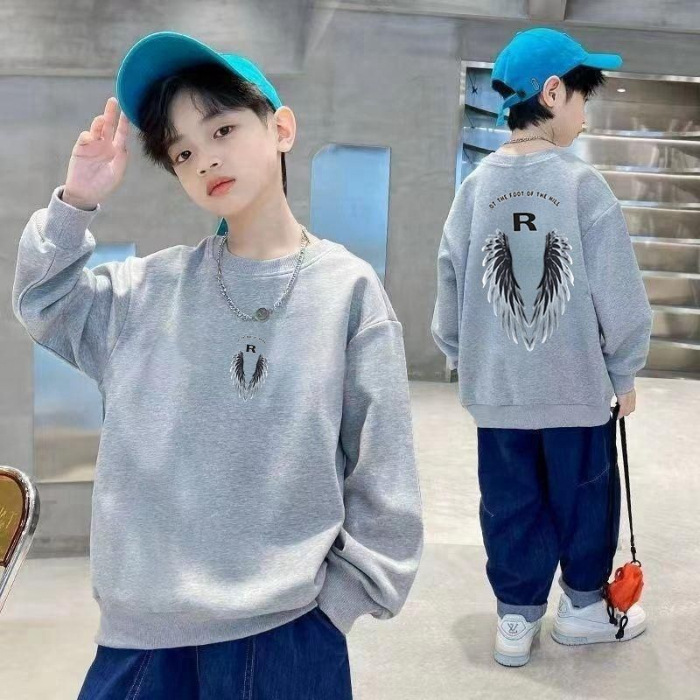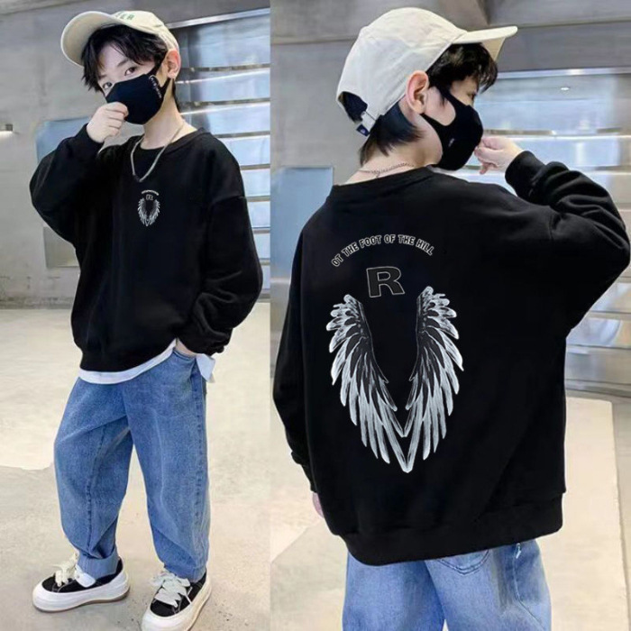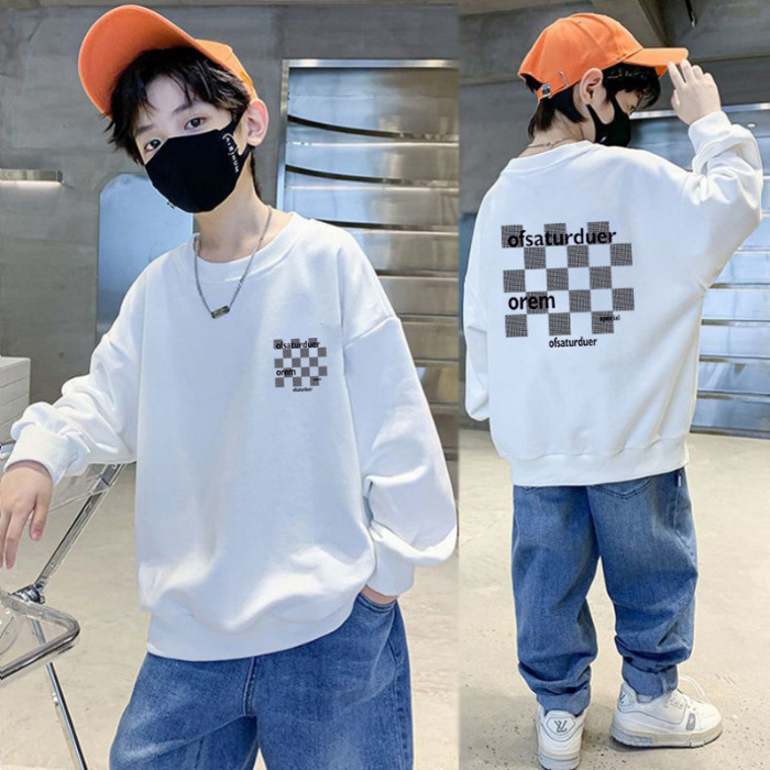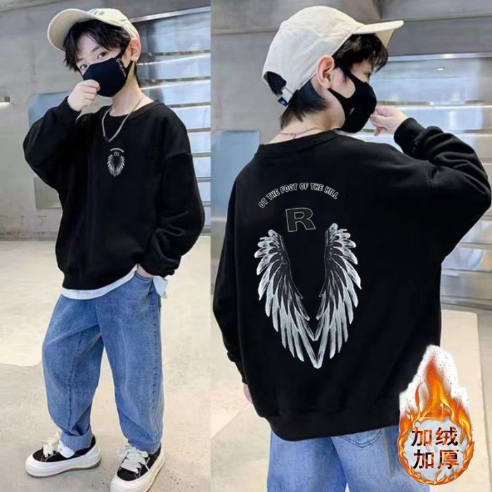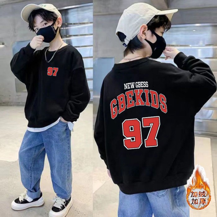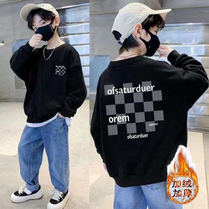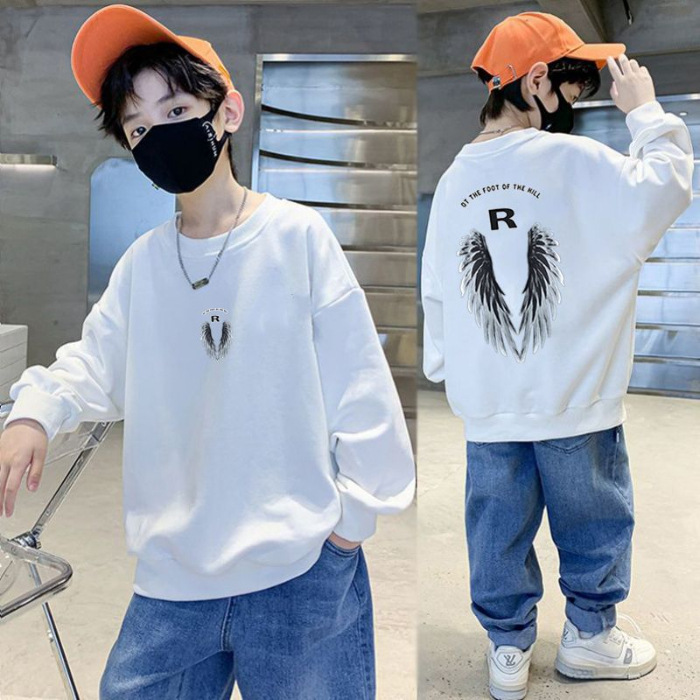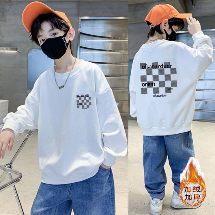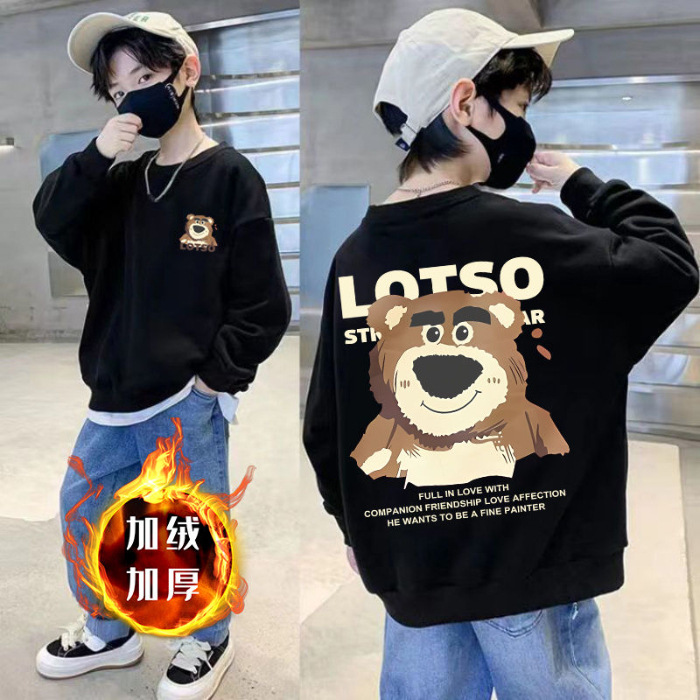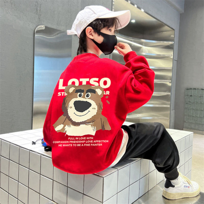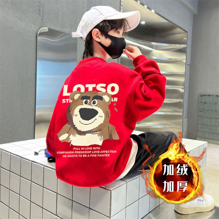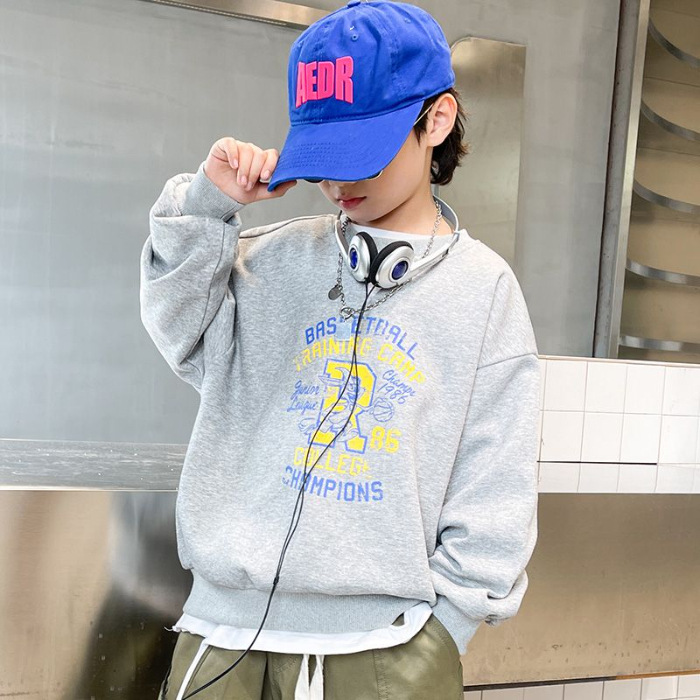 남아용 긴팔 순면 스웨트셔츠, 봄 가을용 2026년 신상, 멋진 남아 가을옷, 기모 처리된 아동용 상의, 중대형 아동용스토어 가기