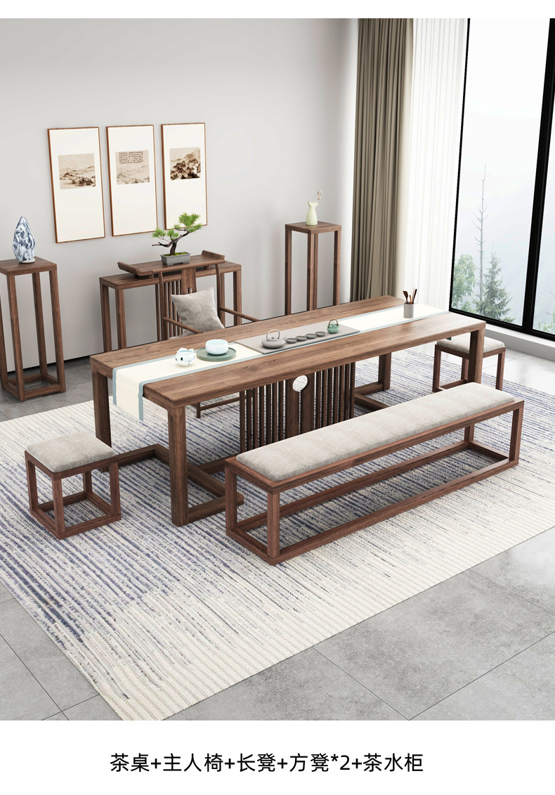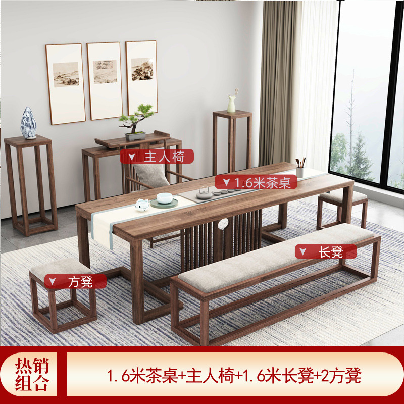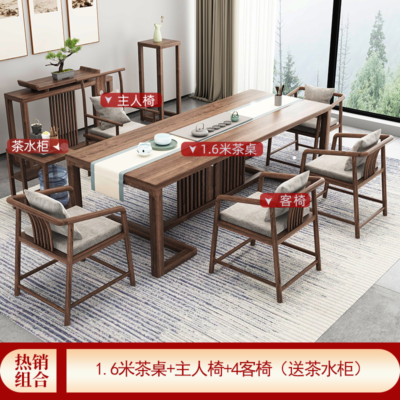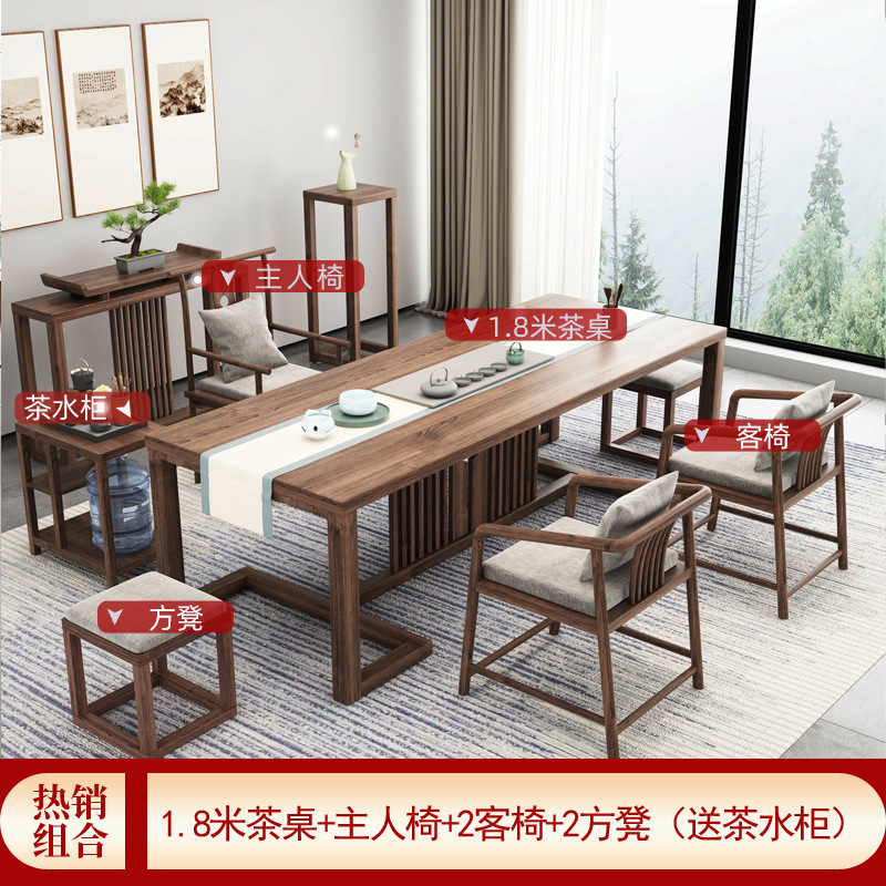 새로운 중국 스타일의 단단한 나무 차 테이블 차 테이블 테이블 및 의자 조합 로그 커피 테이블 사무실 홈 거실 선 다방 가구스토어 가기