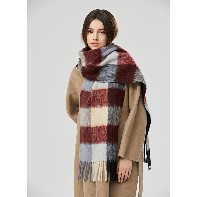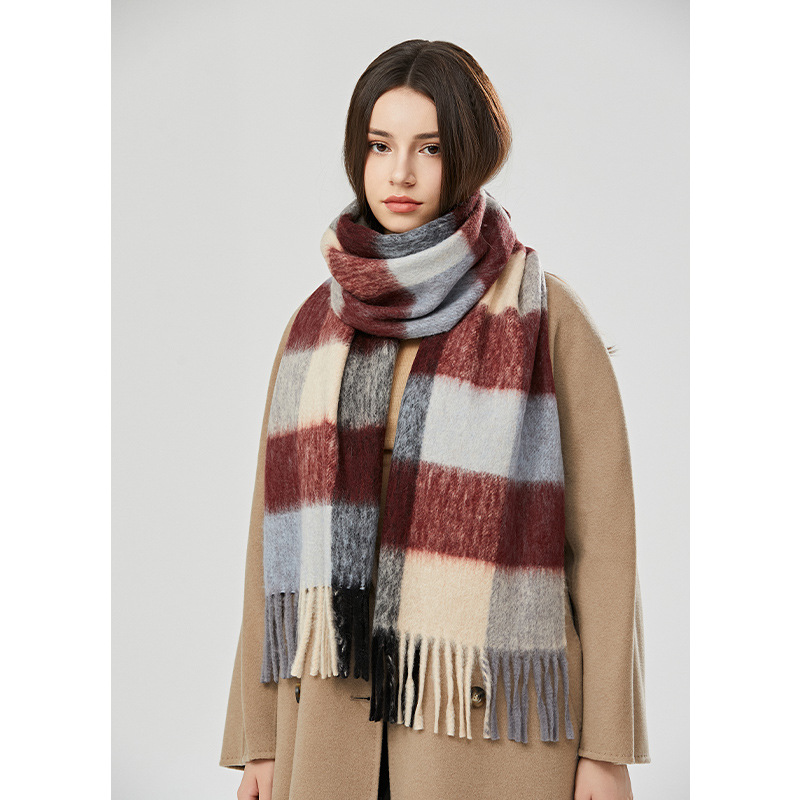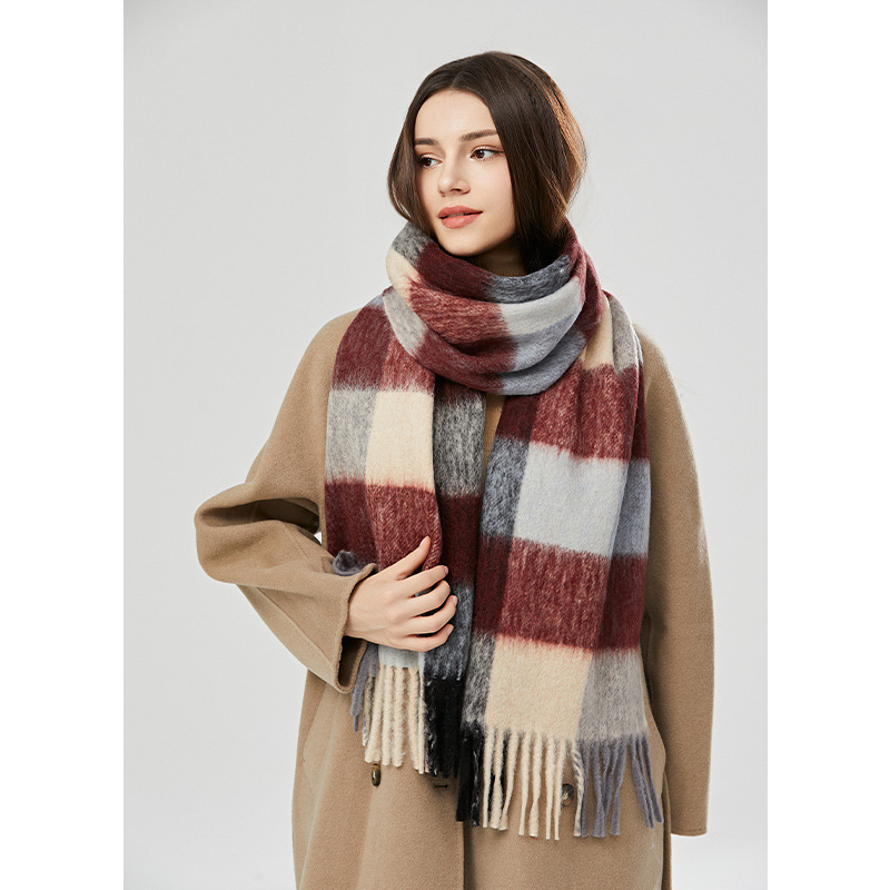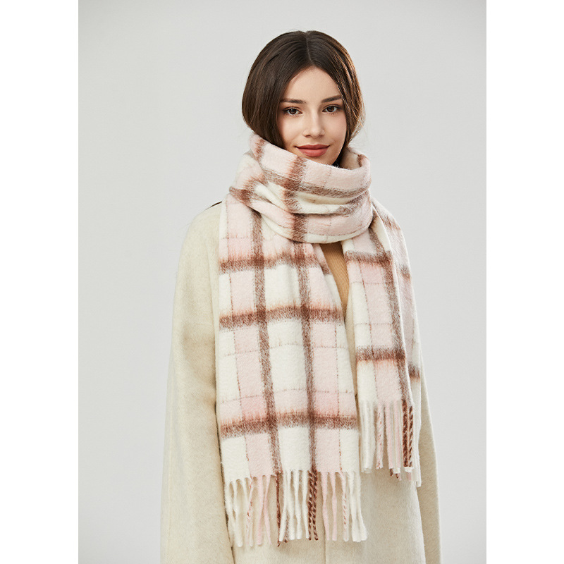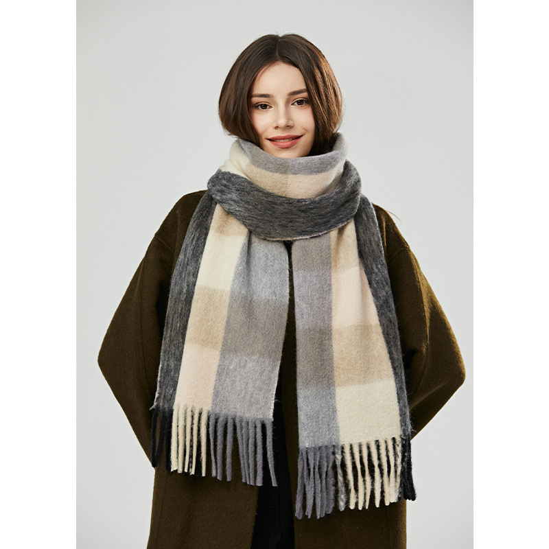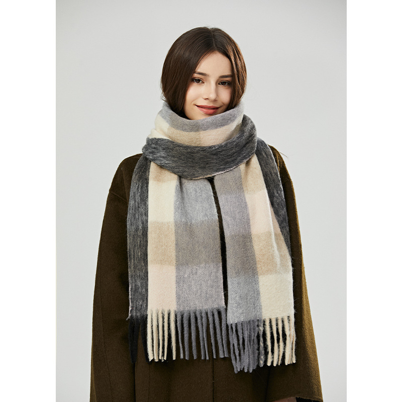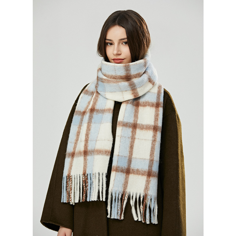 Yu Shuxin의 모헤어 스카프 여성 루프 양모 두꺼운 따뜻한 스카프 새로운 한국 격자 무늬 목도리