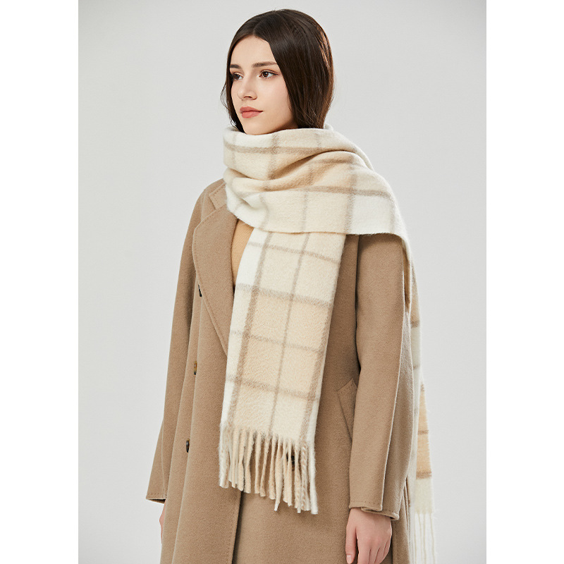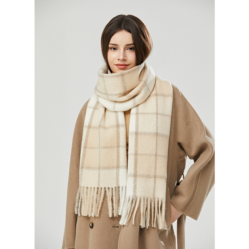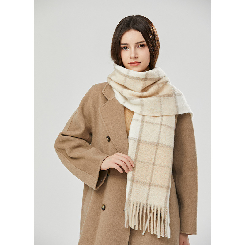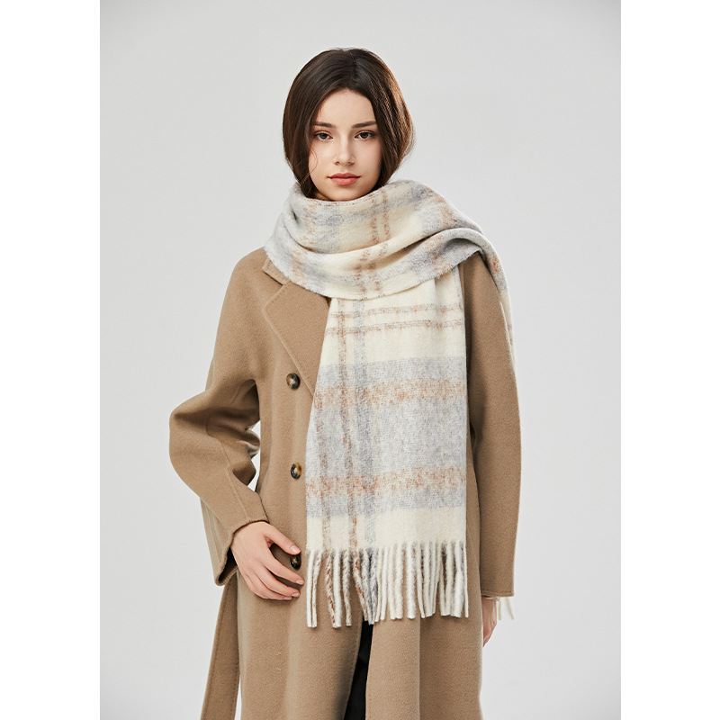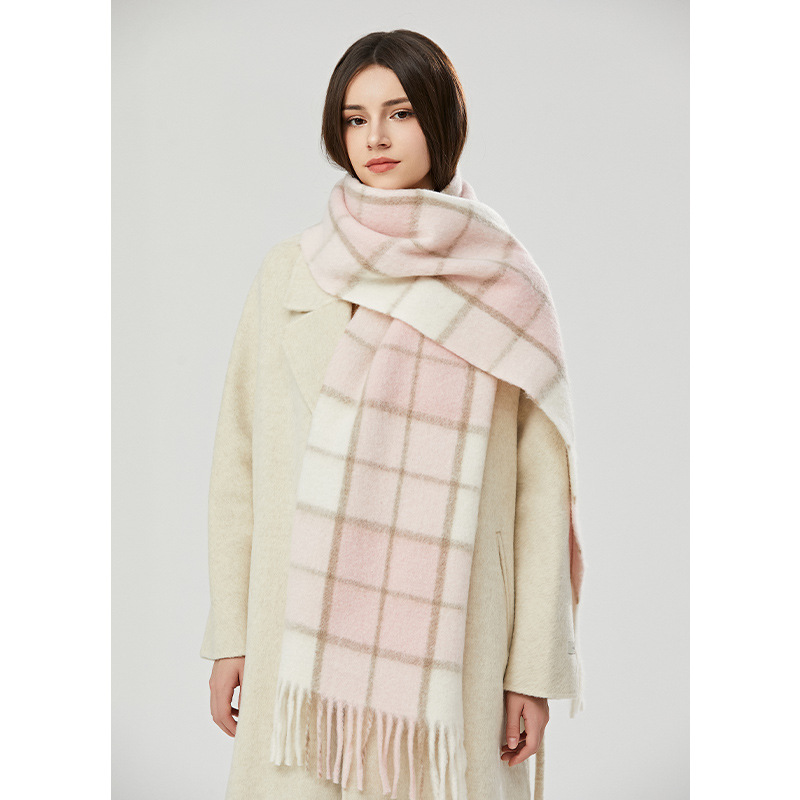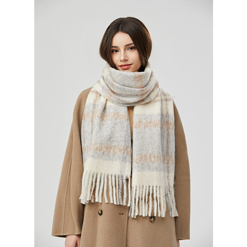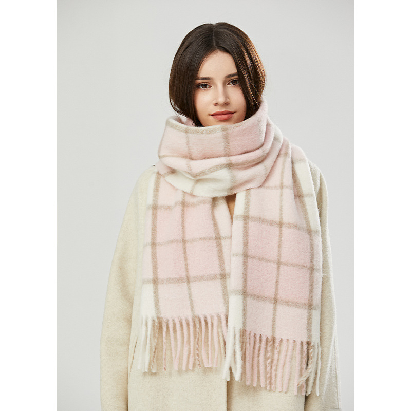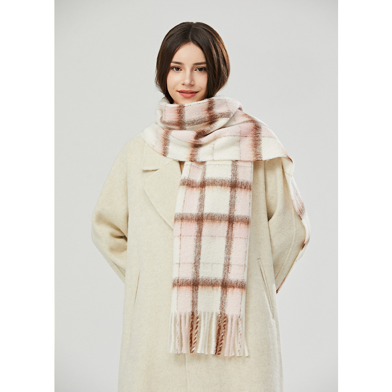 Yu Shuxin의 모헤어 스카프 여성 루프 양모 두꺼운 따뜻한 스카프 새로운 한국 격자 무늬 목도리