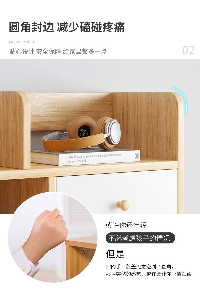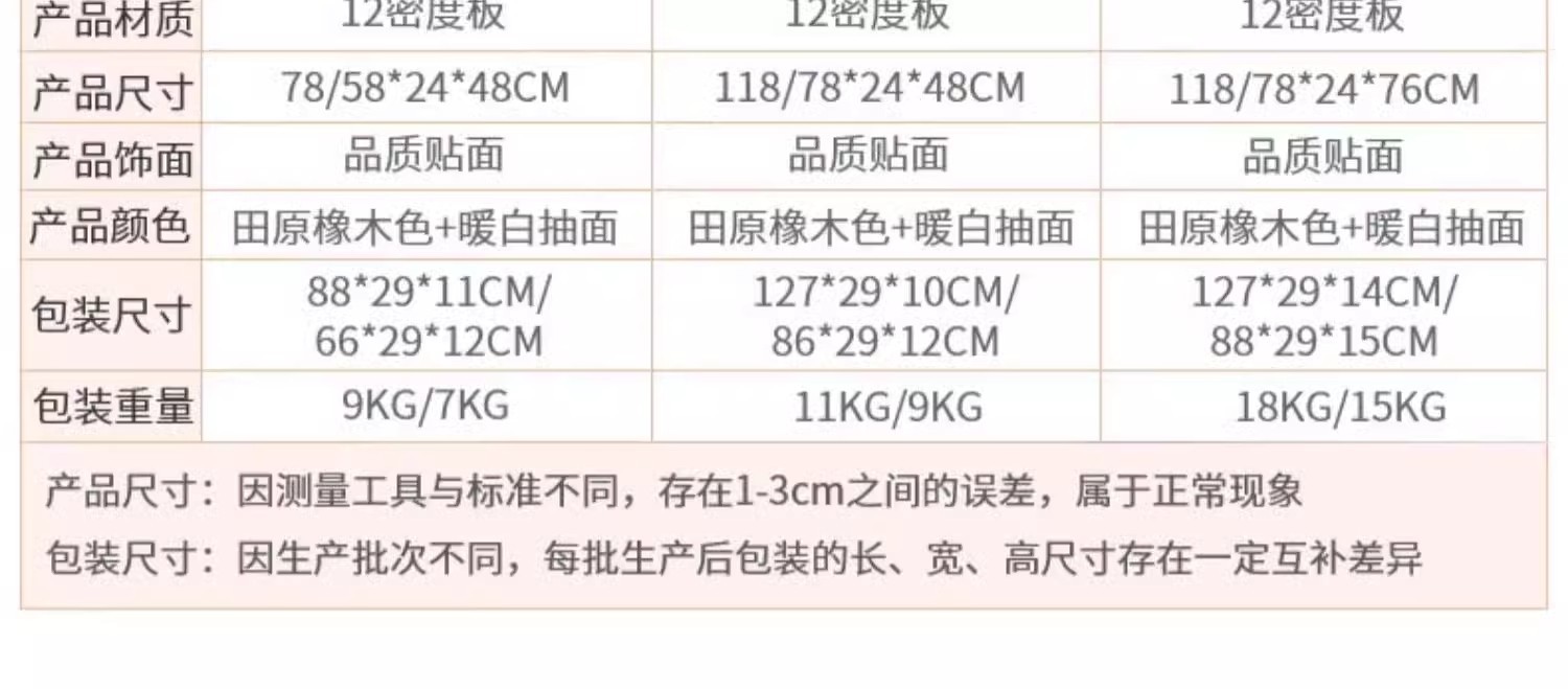 • 【원목 파티클보드 - 오른쪽 서랍】 전원풍 오크 + 따뜻한 흰색 (32.59-60) * 22 * 35