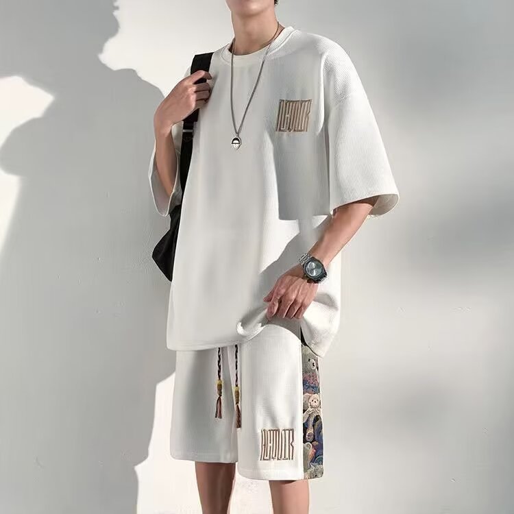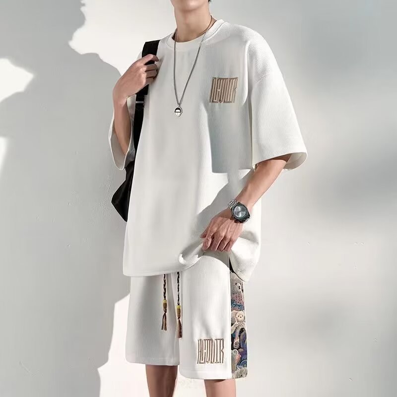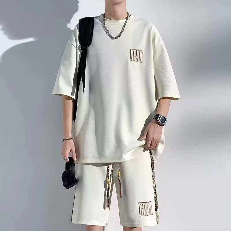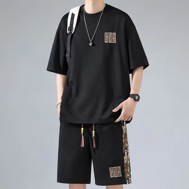 국경 간 중국 스포츠 세트 남자 여름 아이스 실크 빠른 건조 반팔 티셔츠 경량 통기성 플러스 사이즈 캐주얼 반바지