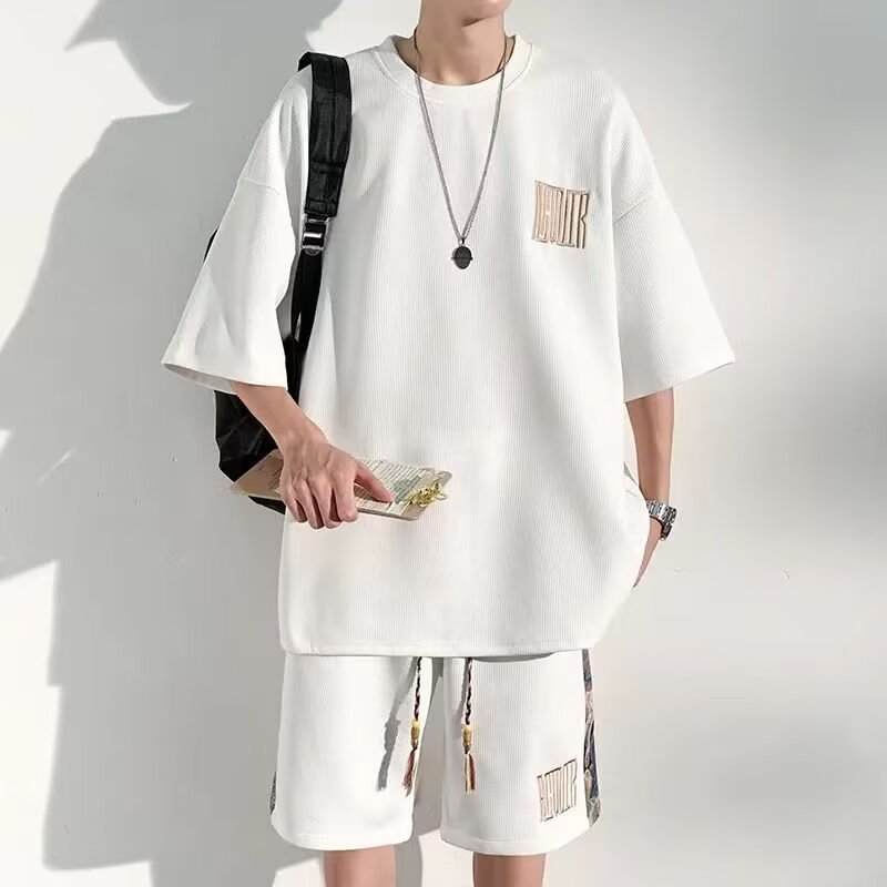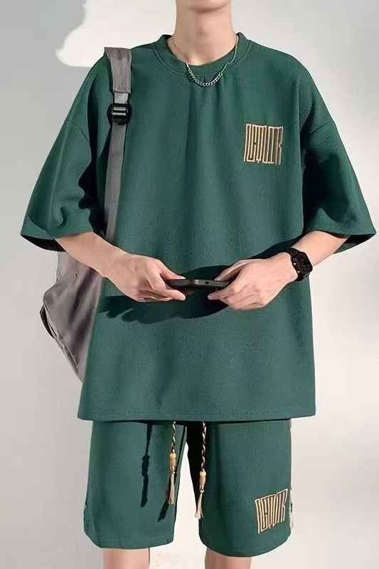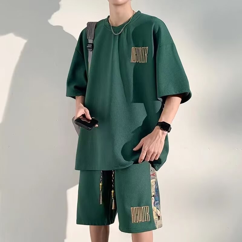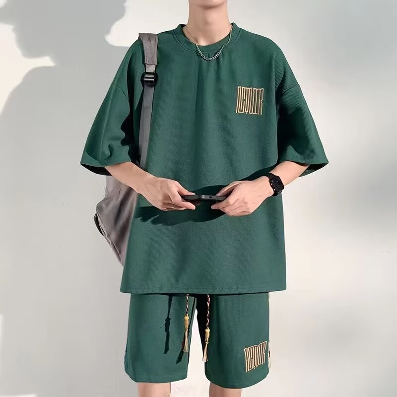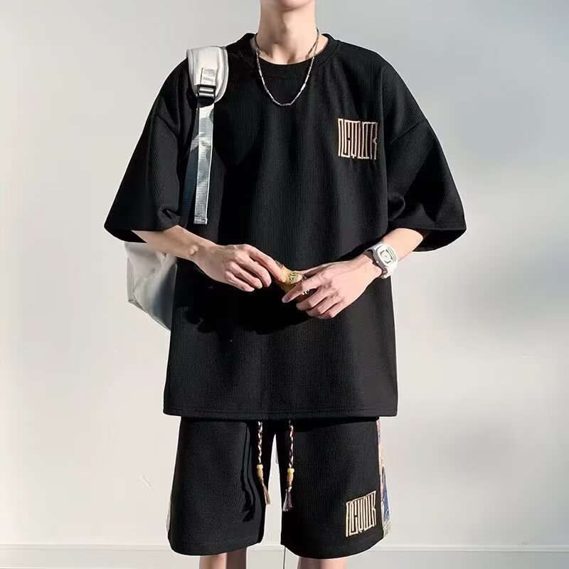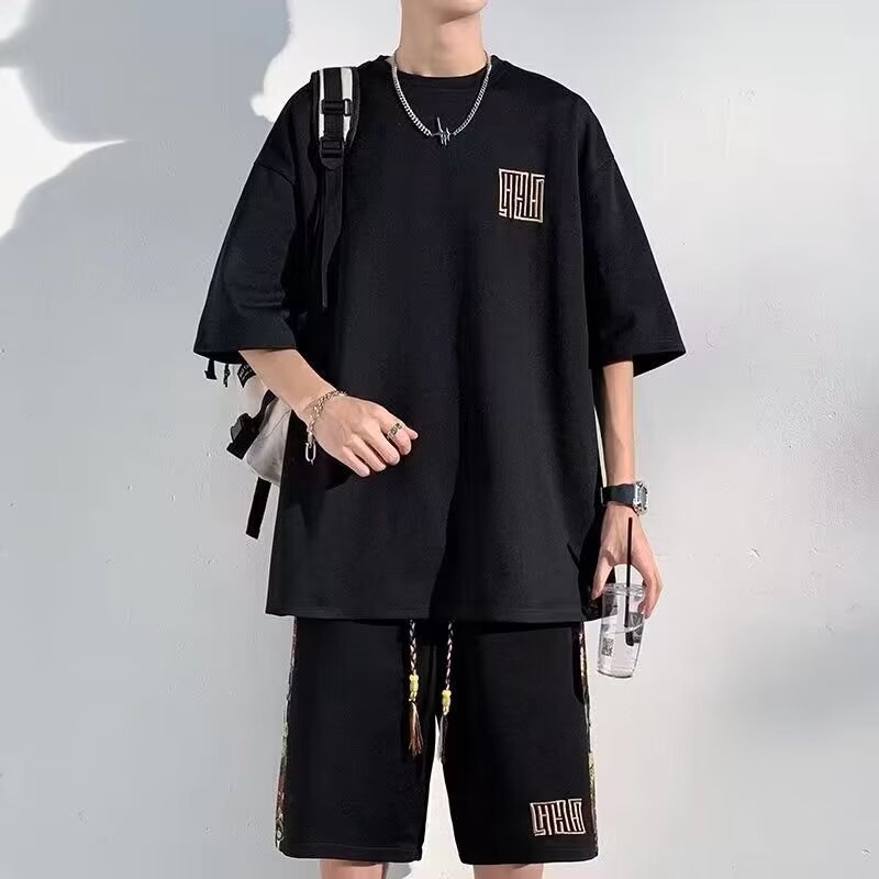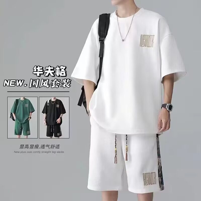 국경 간 중국 스포츠 세트 남자 여름 아이스 실크 빠른 건조 반팔 티셔츠 경량 통기성 플러스 사이즈 캐주얼 반바지스토어 가기
