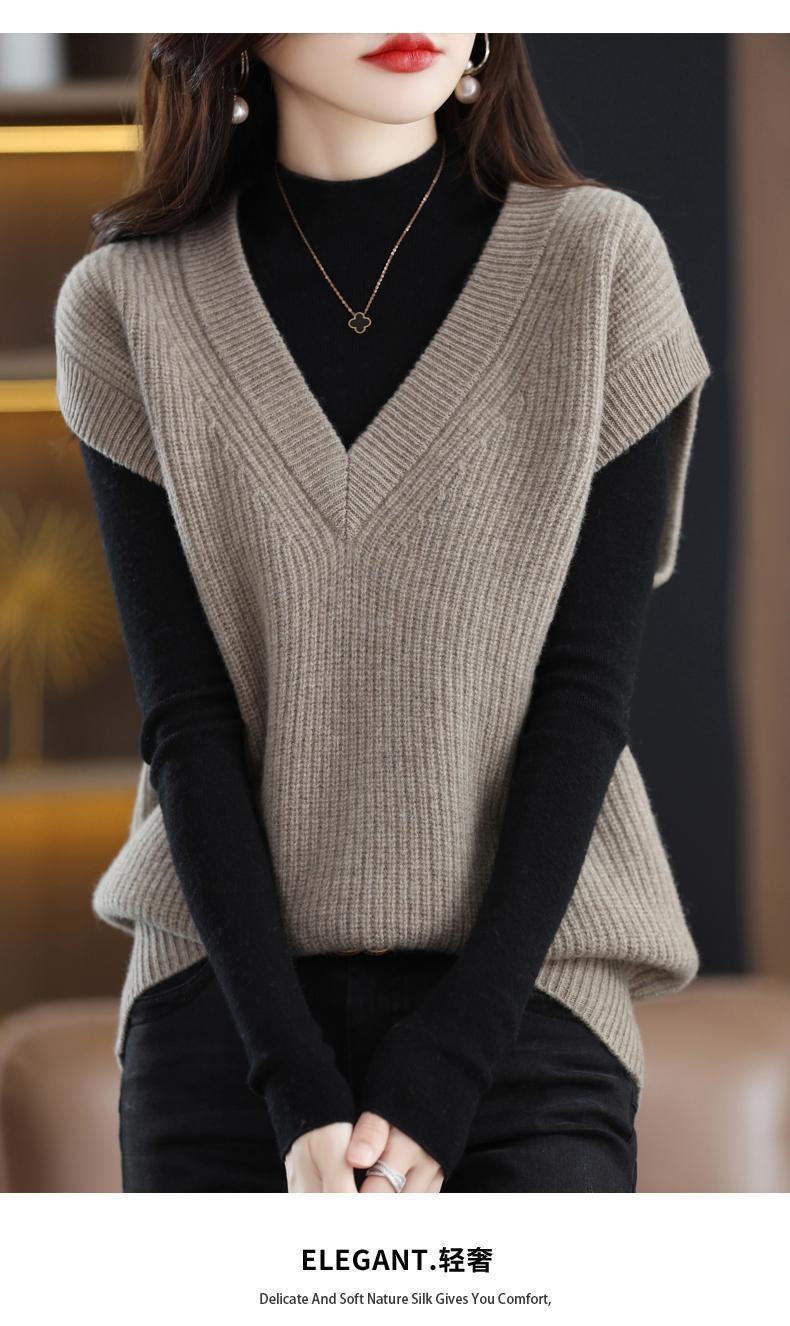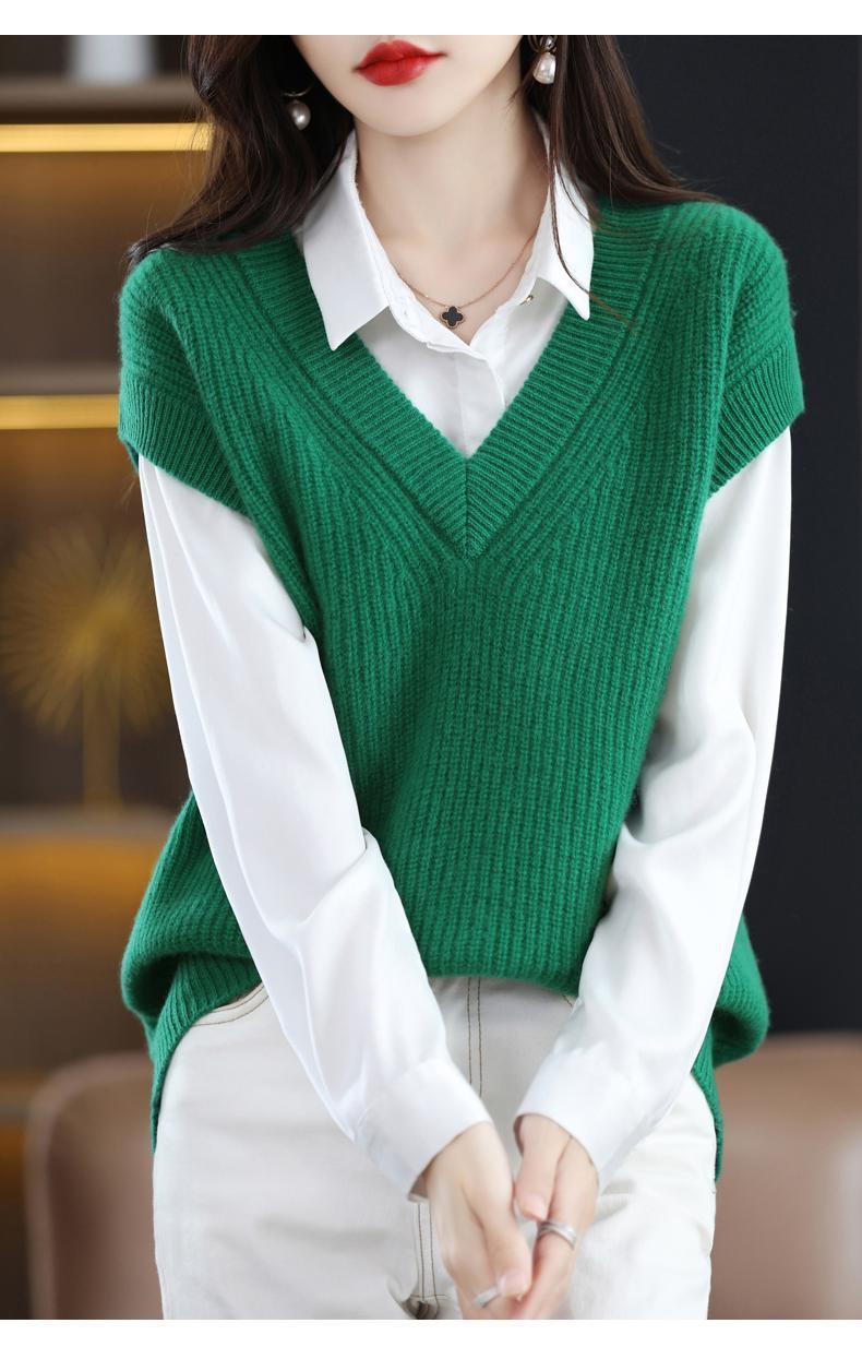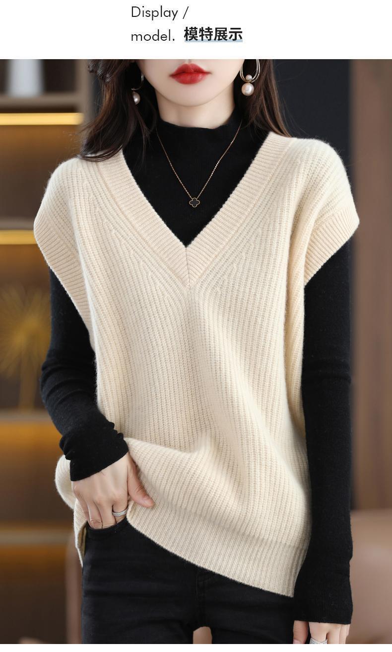 가을과 겨울 V-Neck 풀오버 니트 내베이스 셔츠 스웨터 조끼 허리 코트 느슨한 게으른 여성 조끼스토어 가기