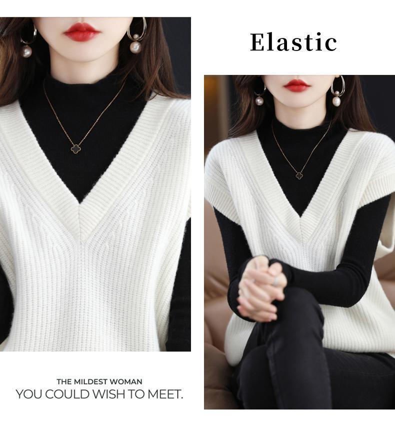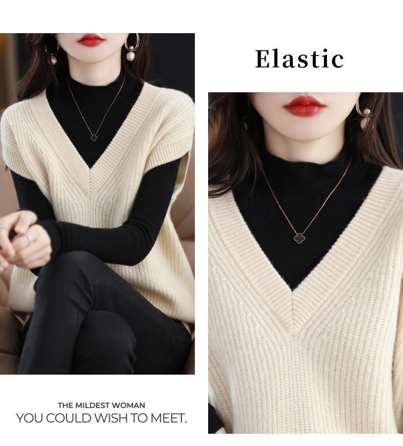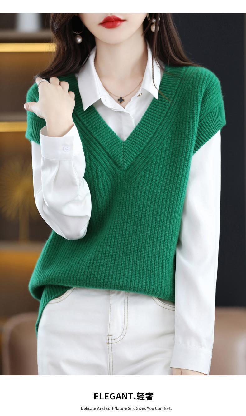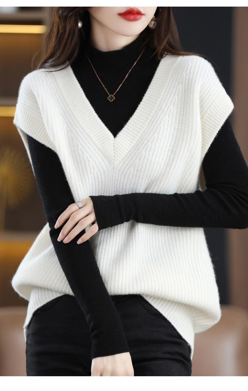 가을과 겨울 V-Neck 풀오버 니트 내베이스 셔츠 스웨터 조끼 허리 코트 느슨한 게으른 여성 조끼스토어 가기