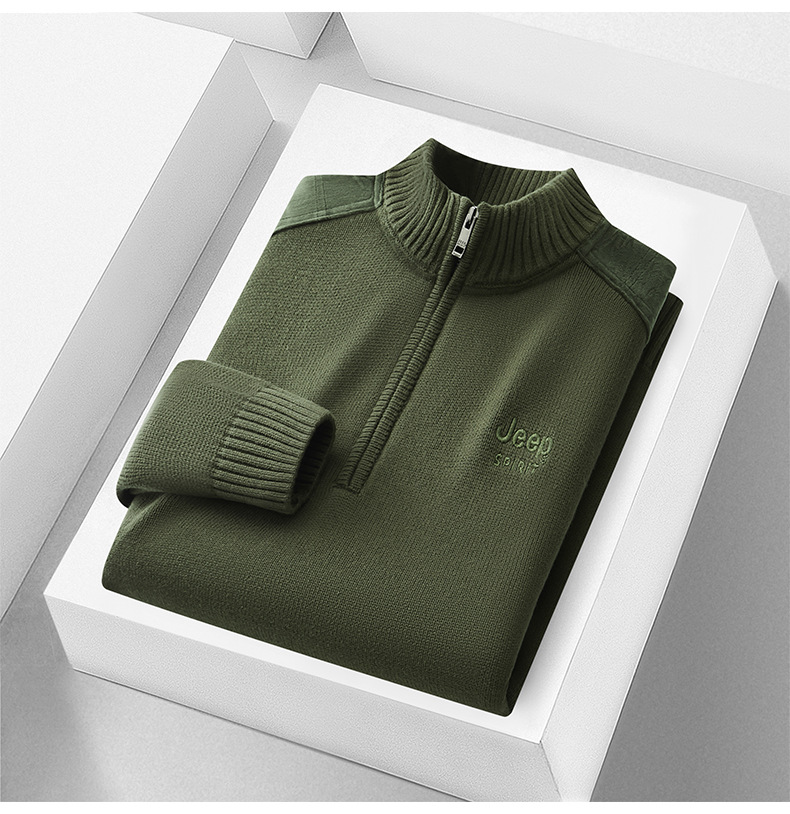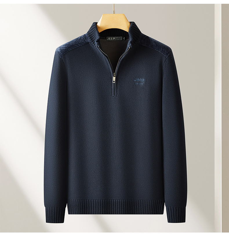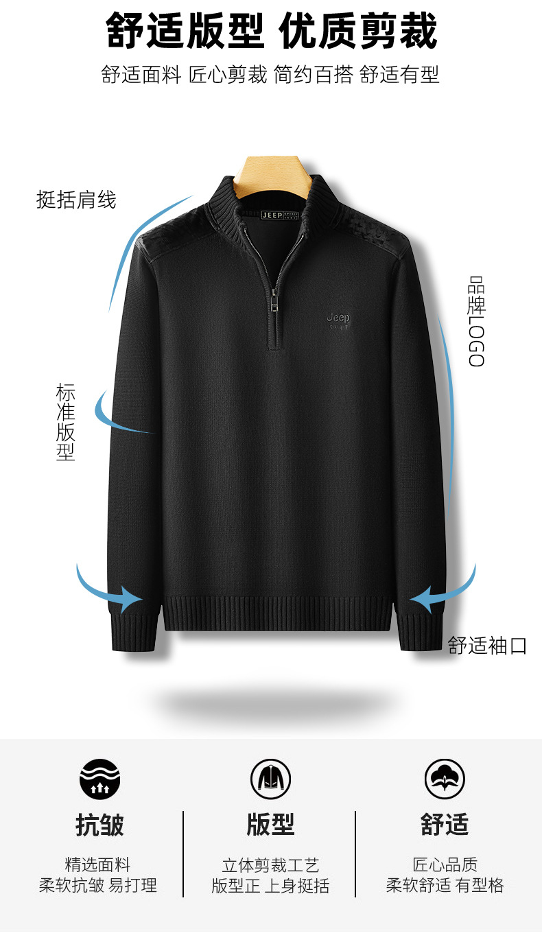 JEEP SPIRIT 기모 스웨터 남성 2024 가을과 겨울 새로운 따뜻한 주름 편안한 통기성 패션 스웨터