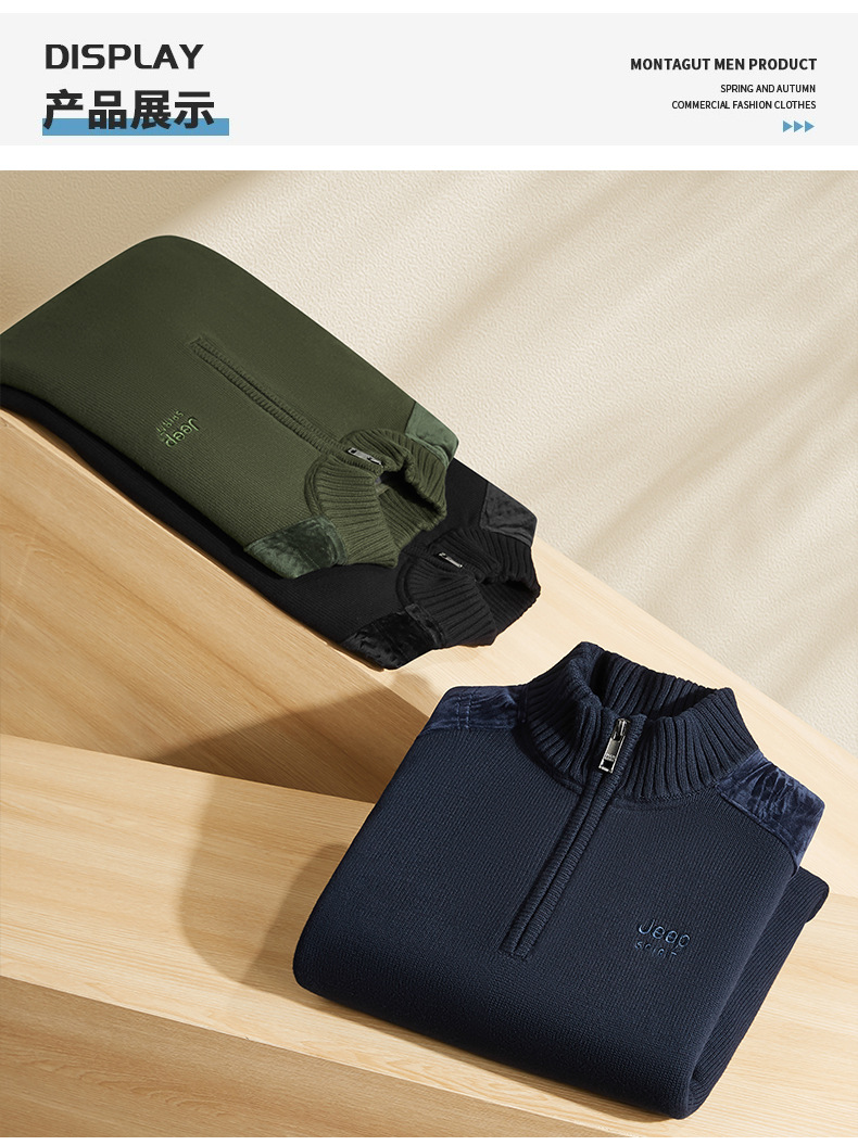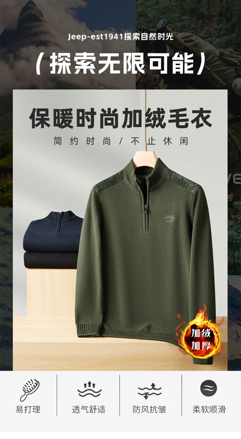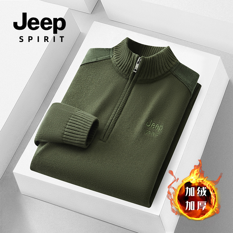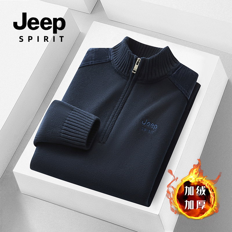 JEEP SPIRIT 기모 스웨터 남성 2024 가을과 겨울 새로운 따뜻한 주름 편안한 통기성 패션 스웨터스토어 가기