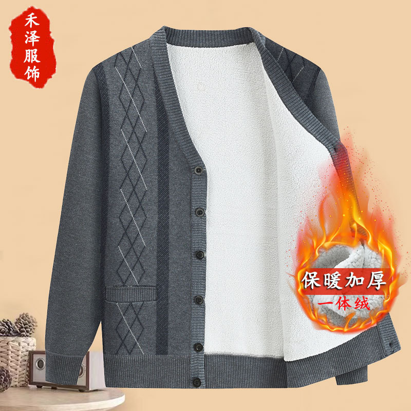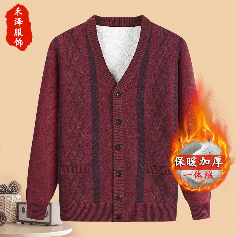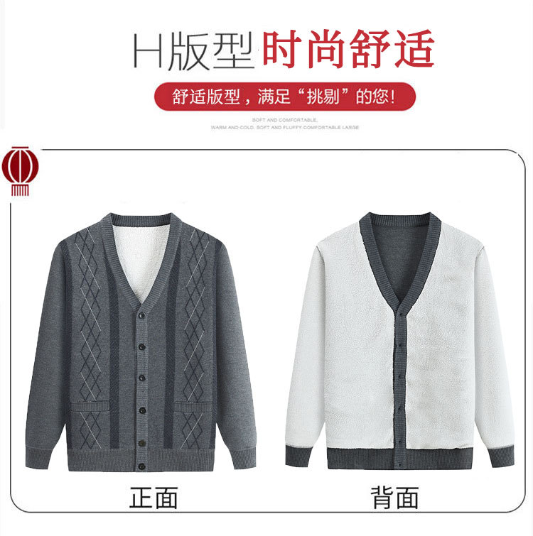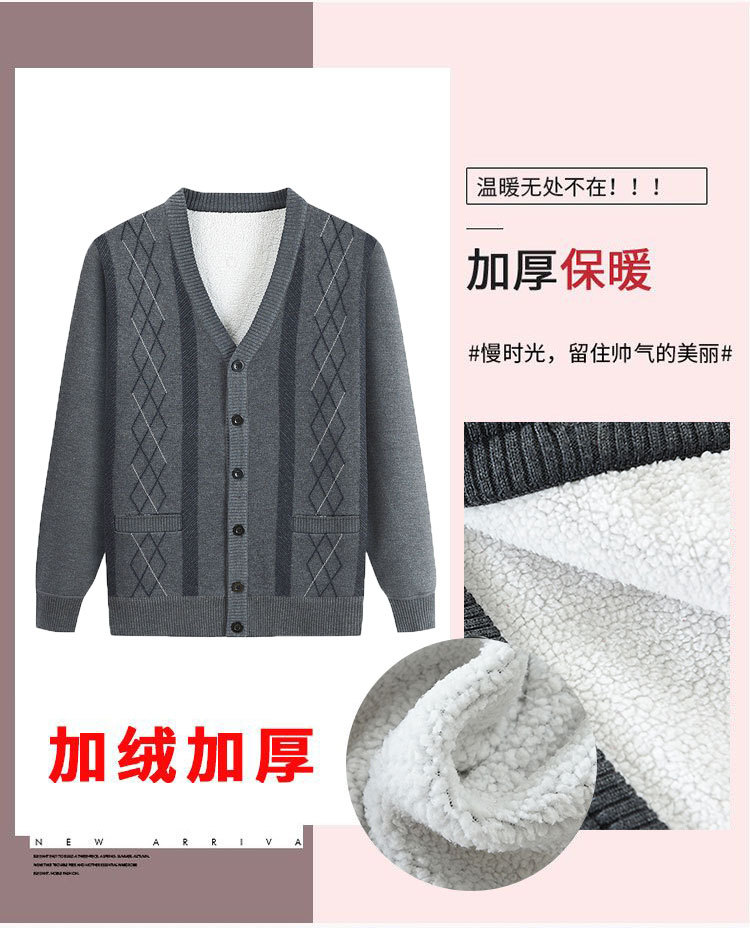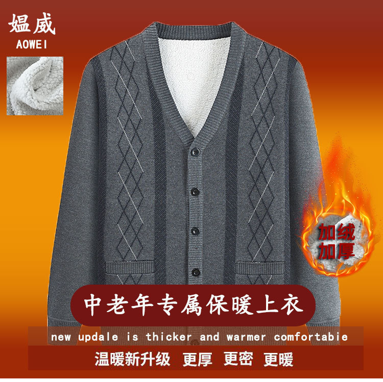 중년 아빠 가을과 겨울 캐시미어 기모 스웨터 노인 니트 스웨터 코트 할아버지 두꺼운 겨울 따뜻한
