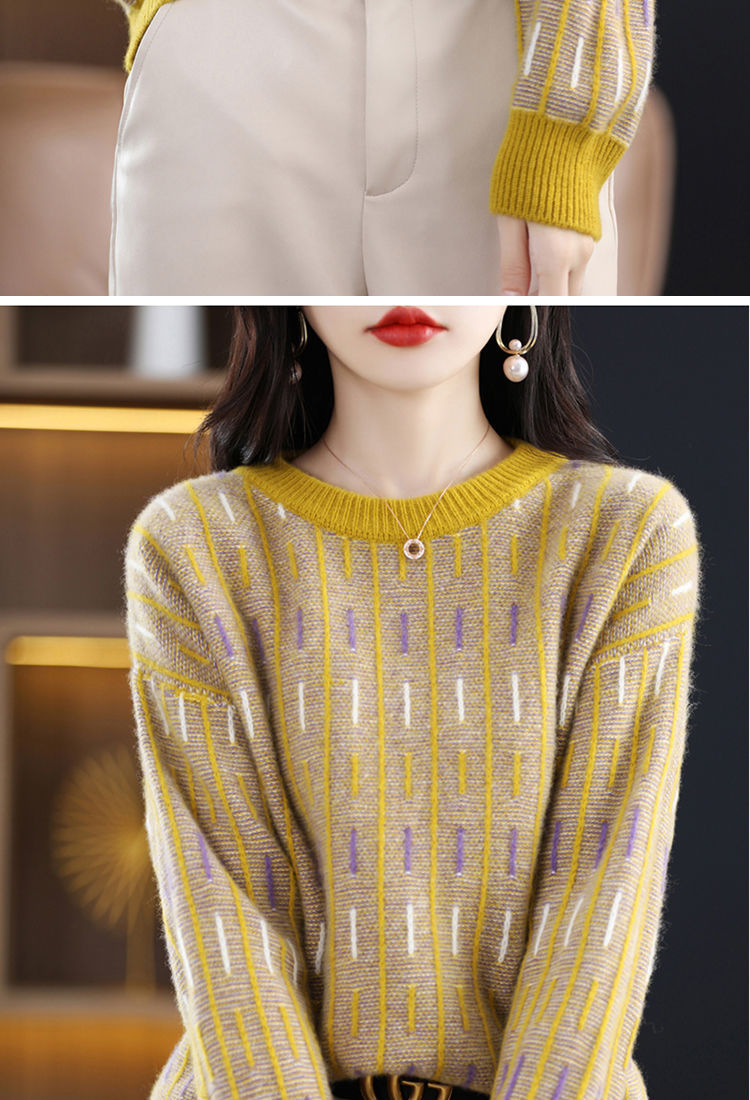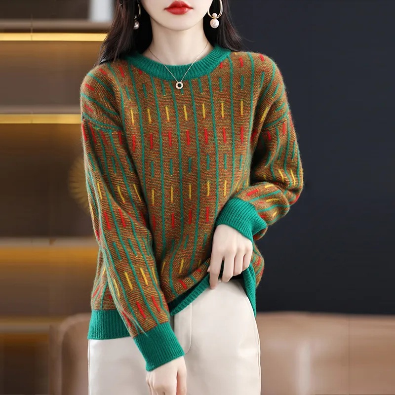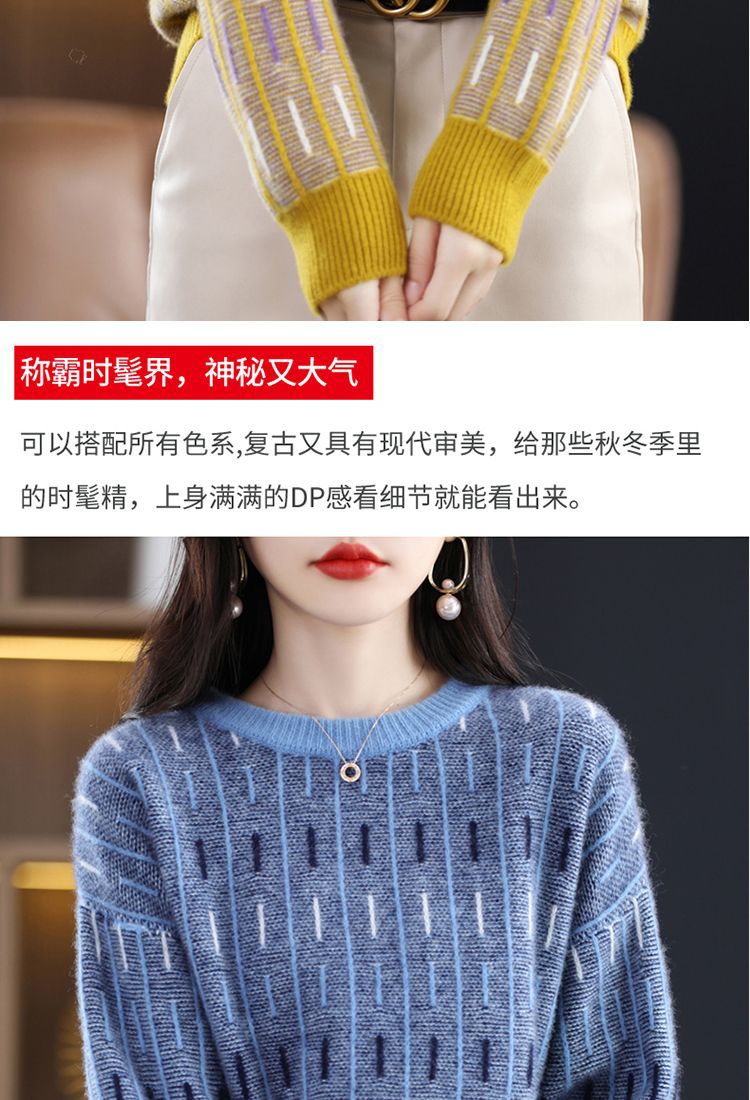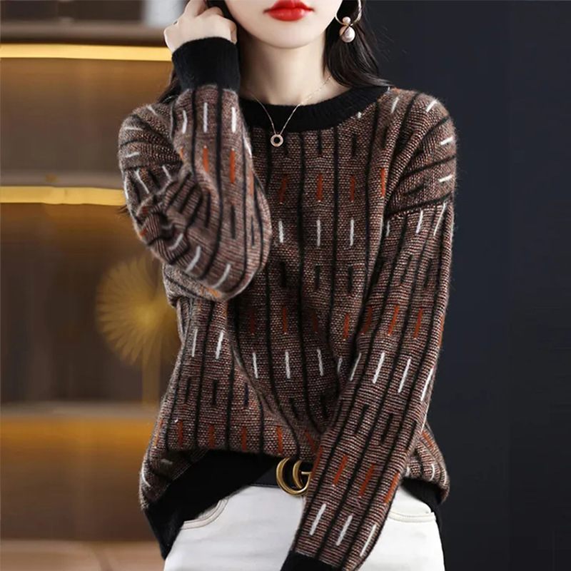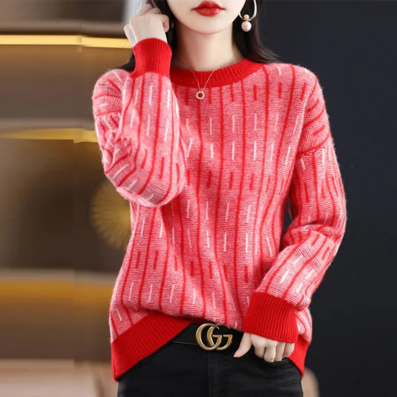 스웨터 여성의 느슨한 아우터 착용 라운드 넥 풀오버 아우터 탑 가을 및 겨울 뉴 컬러 매칭 슬리밍 올 매치 니티드베이스 셔츠스토어 가기