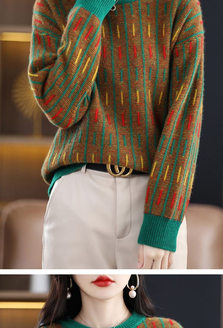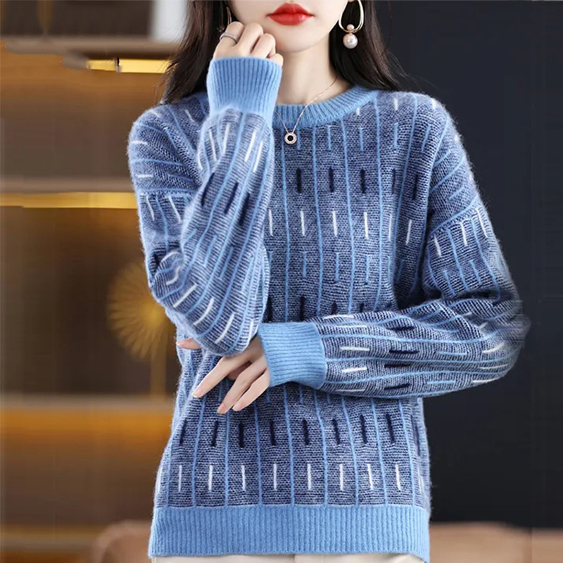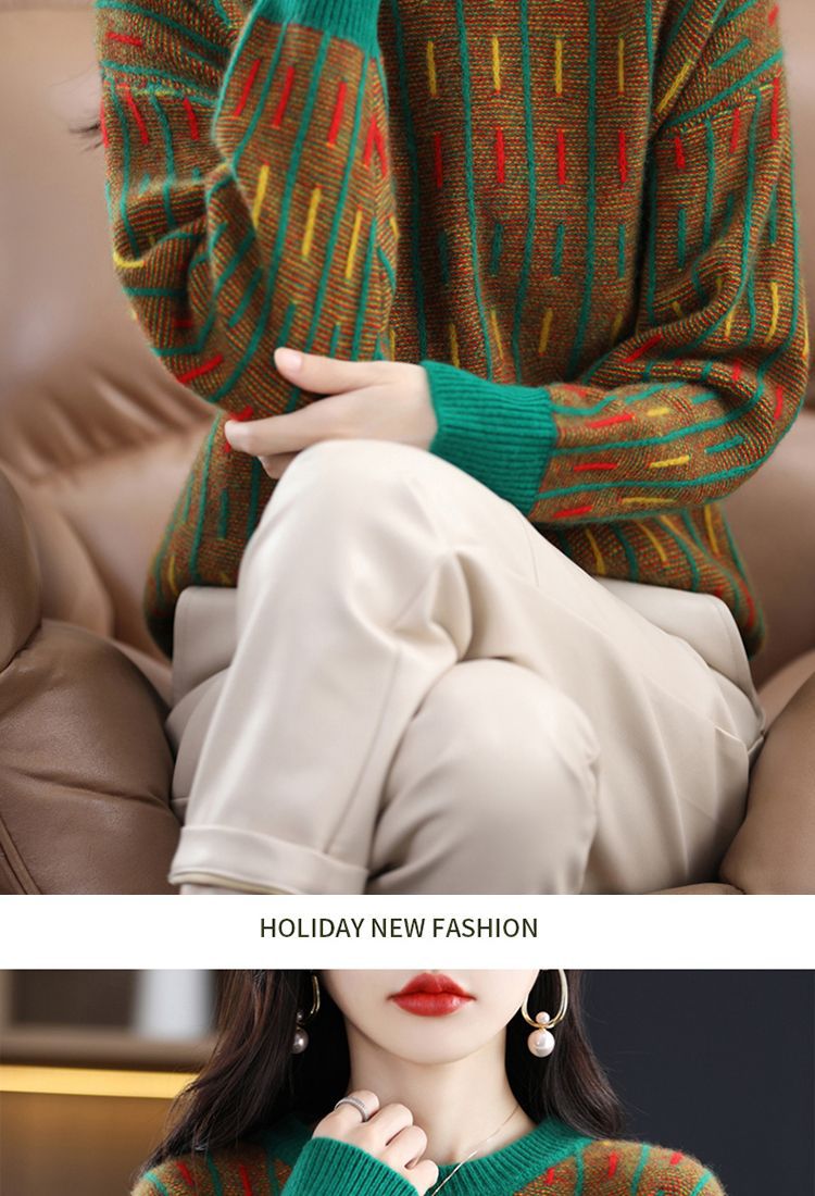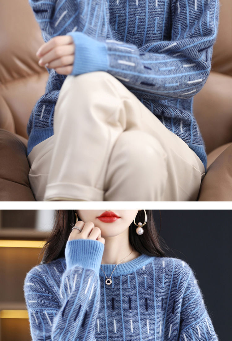 스웨터 여성의 느슨한 아우터 착용 라운드 넥 풀오버 아우터 탑 가을 및 겨울 뉴 컬러 매칭 슬리밍 올 매치 니티드베이스 셔츠스토어 가기