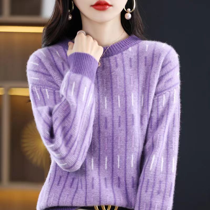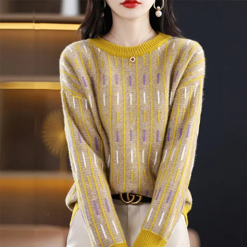 스웨터 여성의 느슨한 아우터 착용 라운드 넥 풀오버 아우터 탑 가을 및 겨울 뉴 컬러 매칭 슬리밍 올 매치 니티드베이스 셔츠