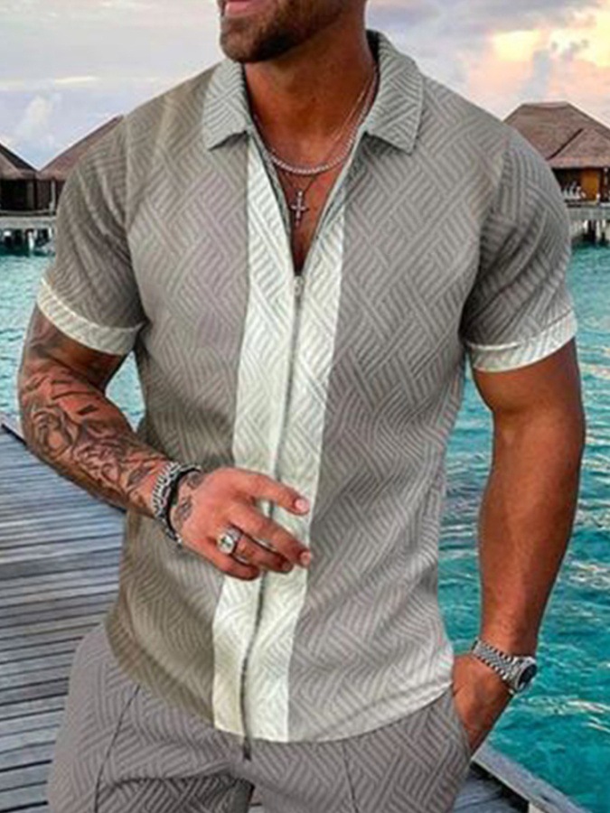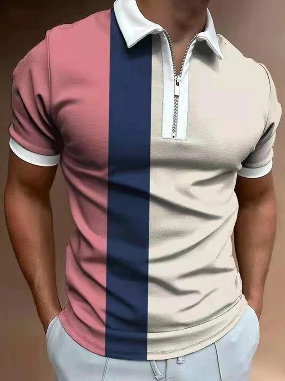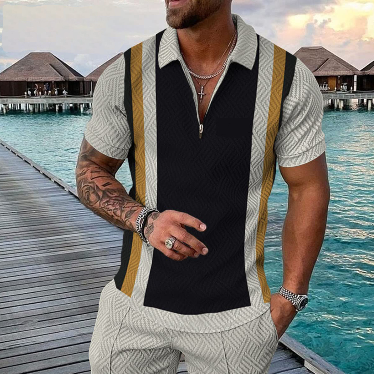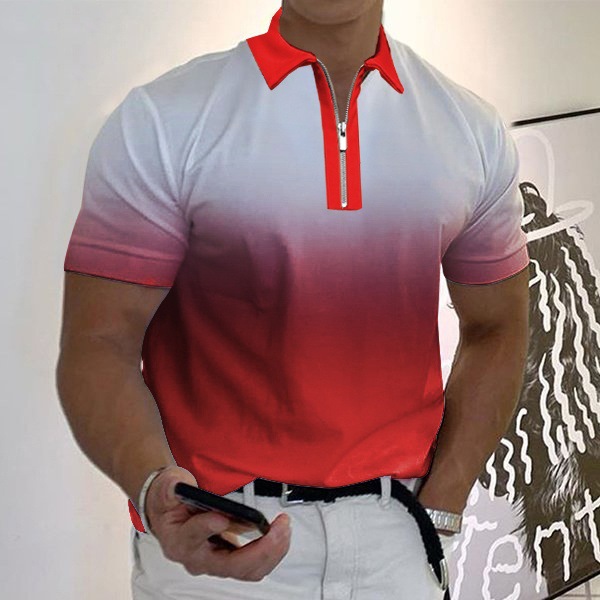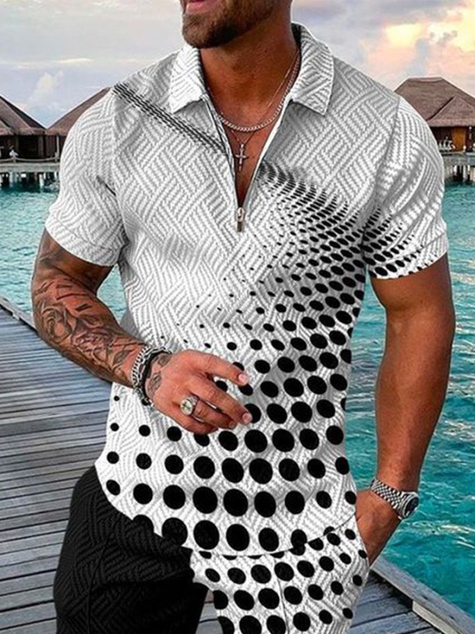 유럽과 미국의 새로운 남성 반팔 지퍼 폴로 셔츠 3D 디지털 인쇄 옷깃 티셔츠 캐주얼 스포츠 공장 직접 판매