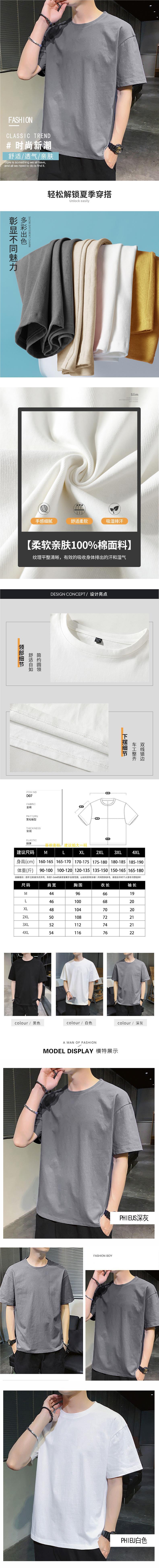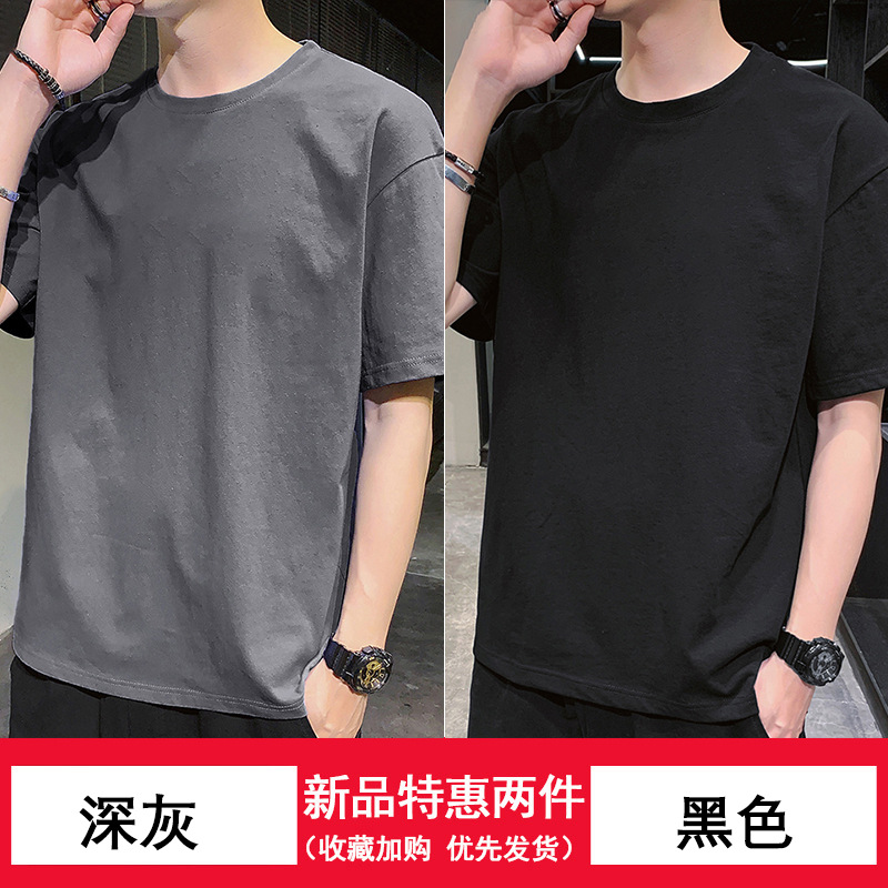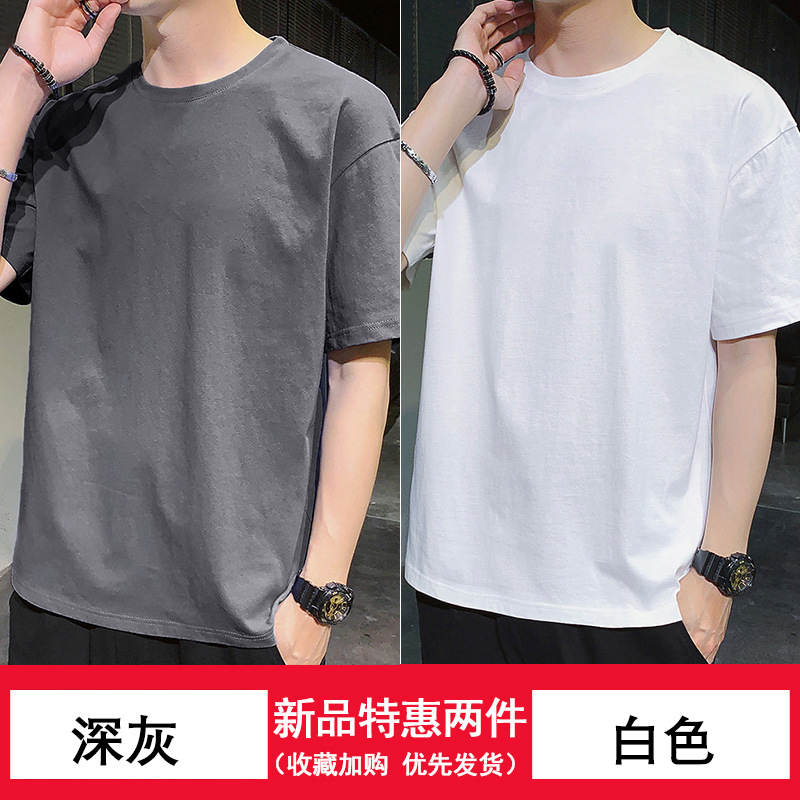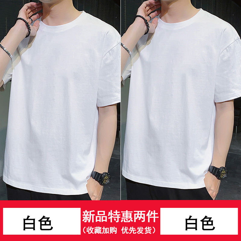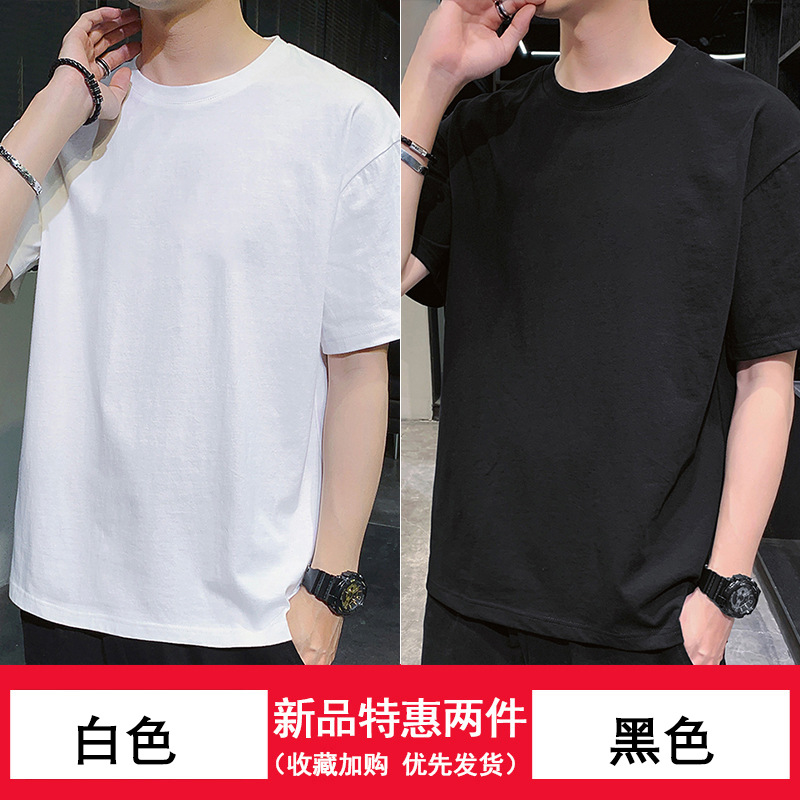 纯/棉短袖t恤男士潮流潮牌宽松上衣新款圆领体恤男内搭打底衫高级스토어 가기