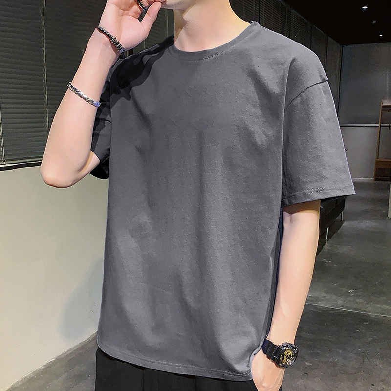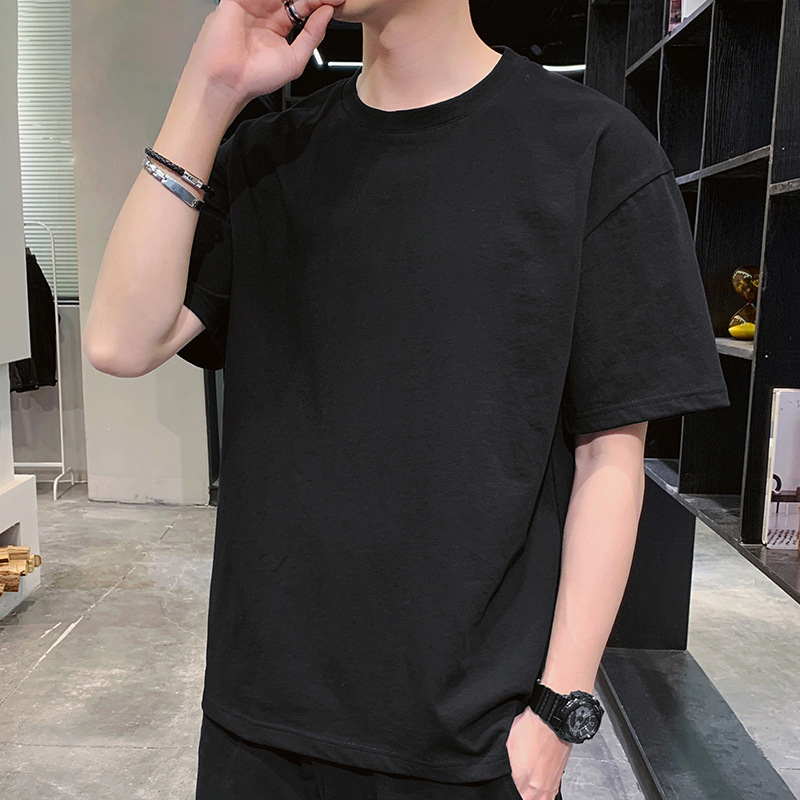 纯/棉短袖t恤男士潮流潮牌宽松上衣新款圆领体恤男内搭打底衫高级