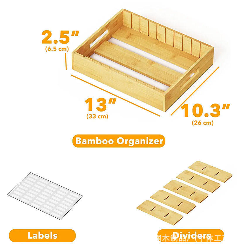 대나무와 나무 판 저장 상자 구획 분리식 식기 주방용품 저장 랙 주방 데스크탑 저장 상자