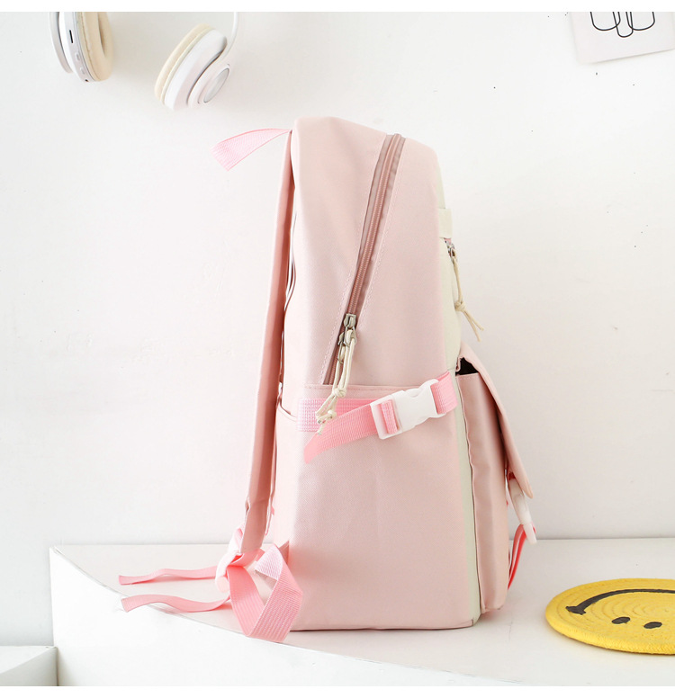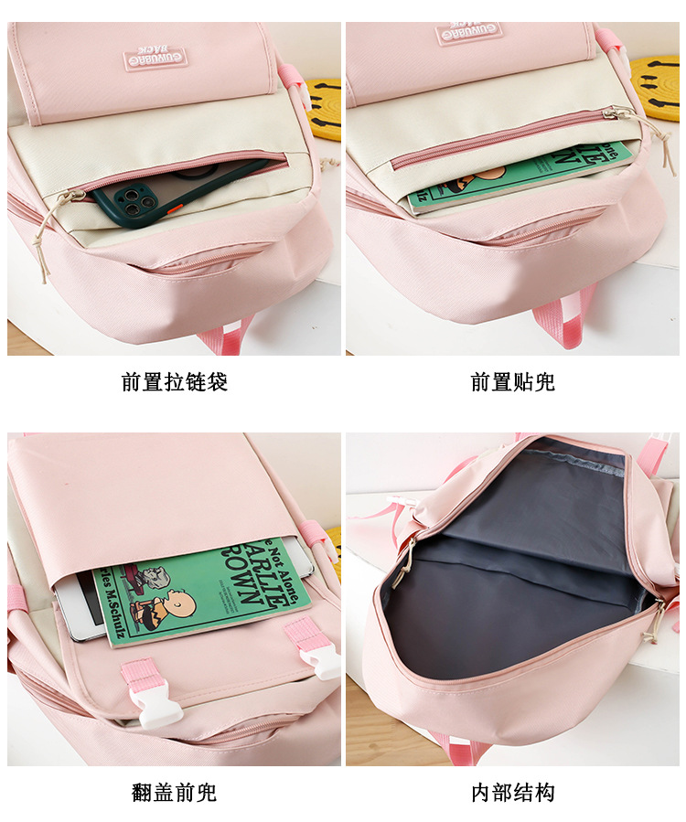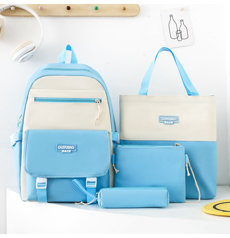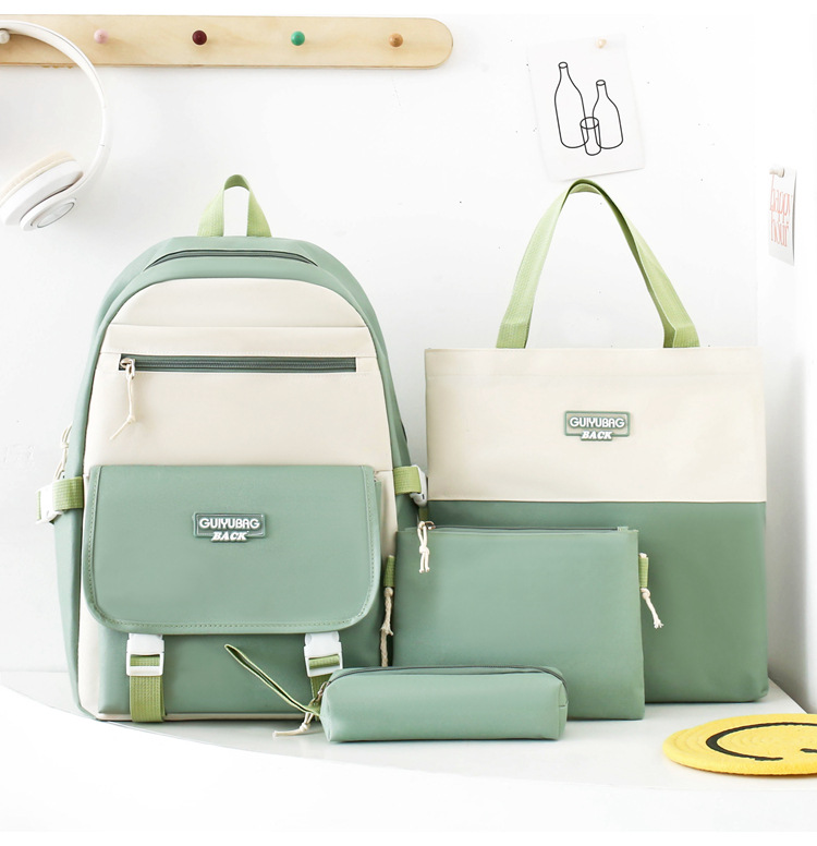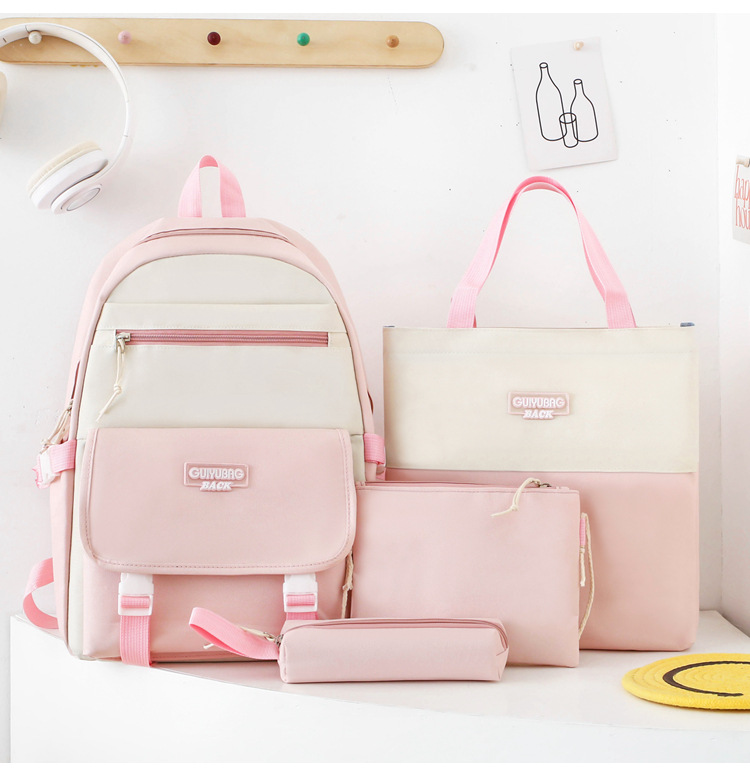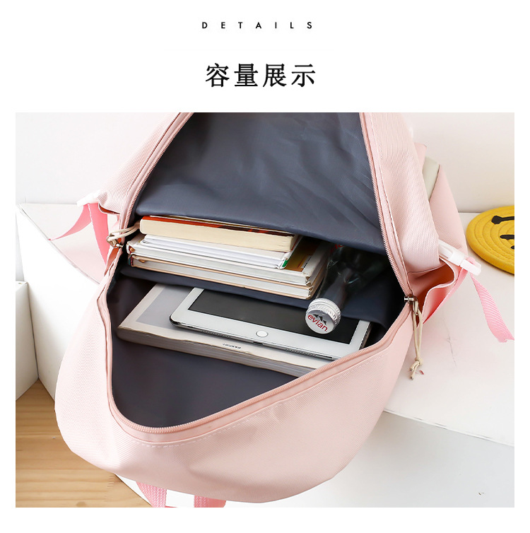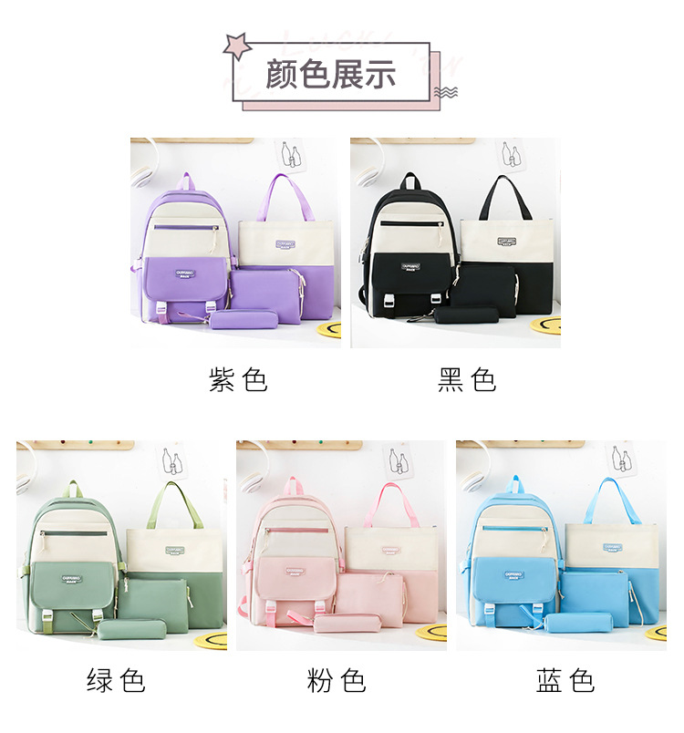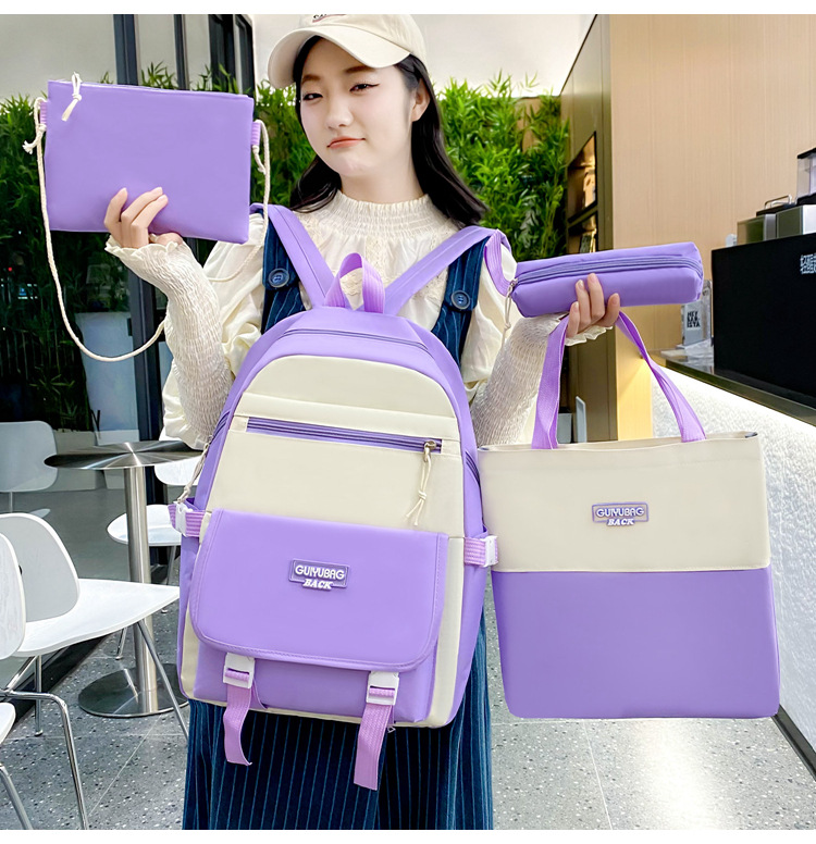 새로운 콘트라스트 컬러 스쿨백 중학생 대학생 캐주얼 배낭 경량 대용량 4 피스 배낭 어깨 가방