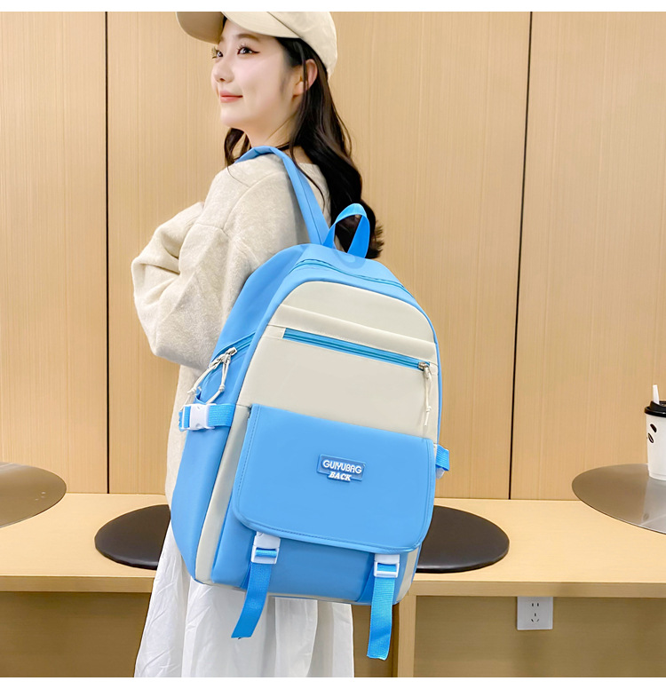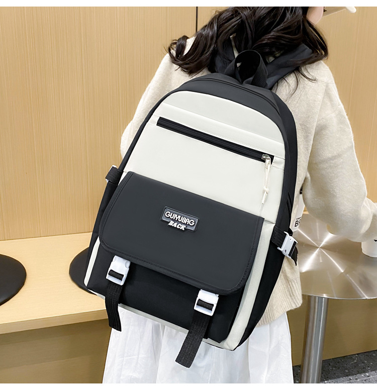 새로운 콘트라스트 컬러 스쿨백 중학생 대학생 캐주얼 배낭 경량 대용량 4 피스 배낭 어깨 가방스토어 가기