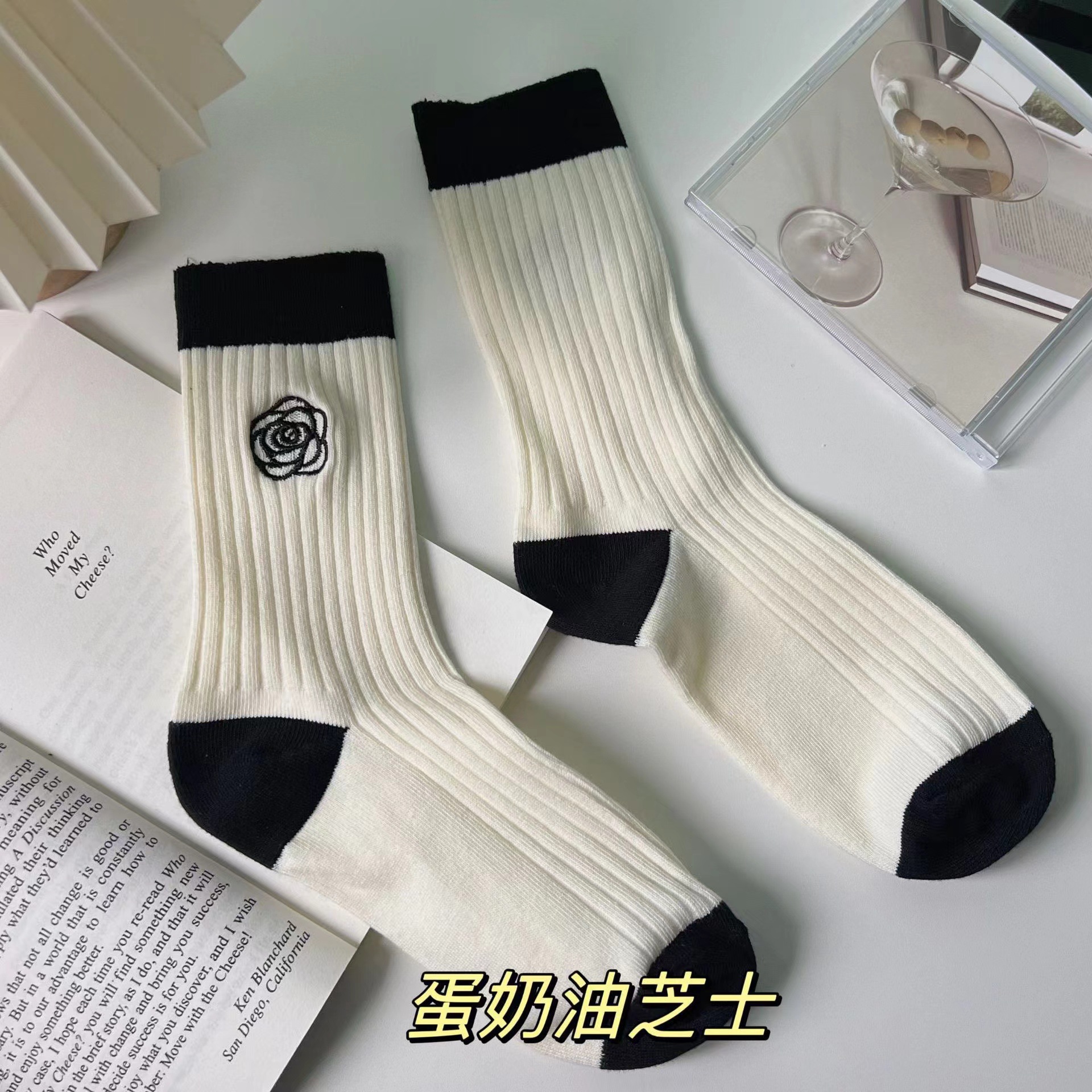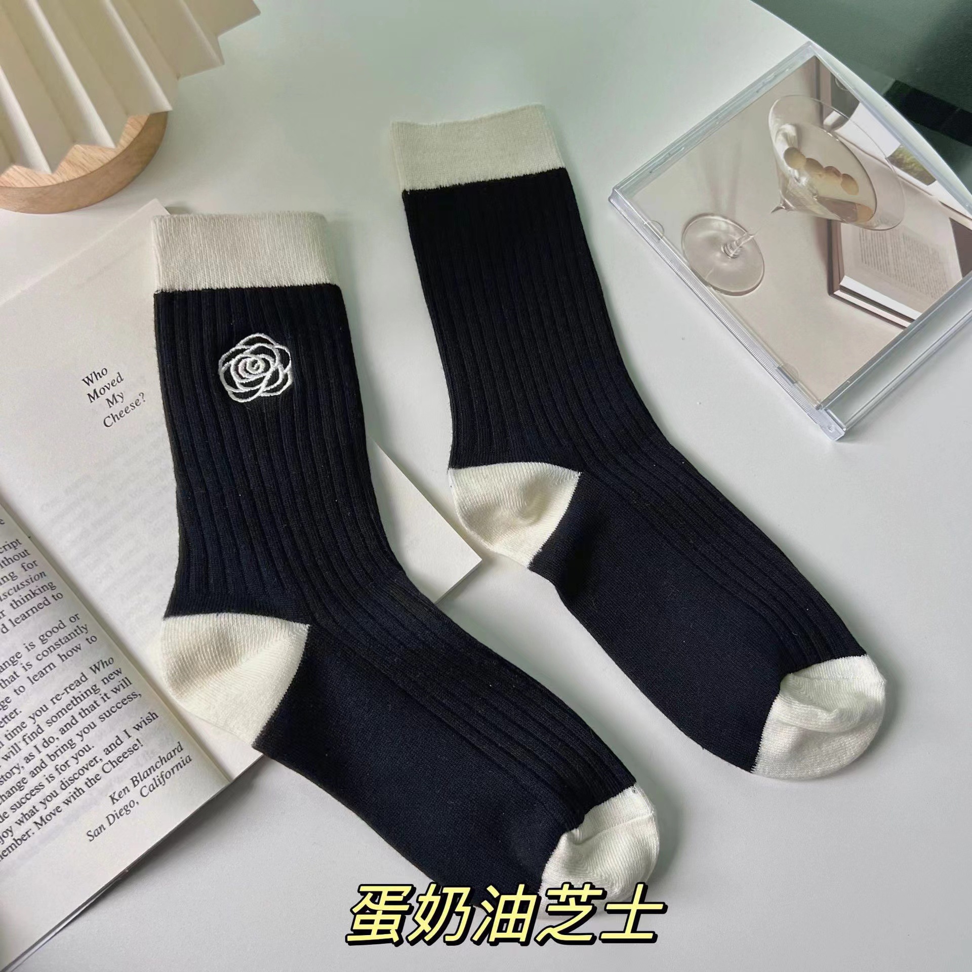 엄선된 슬림 레그 롱삭스 여성용, 샤넬 스타일 동백꽃 인스 트렌드 일본 소녀 양말, 고급스러운 중간 길이 양말스토어 가기