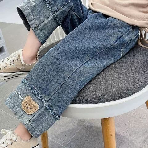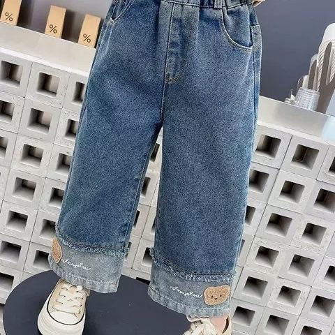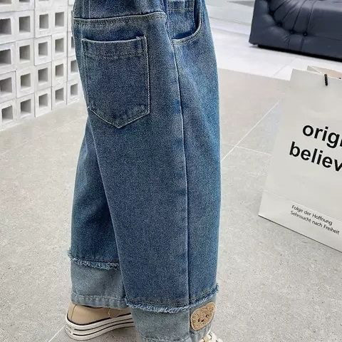 새로운 소녀 청바지 봄과 가을 서양 스타일 캐주얼 여성 아기 복장 가을 어린이 가을 넓은 다리 바지