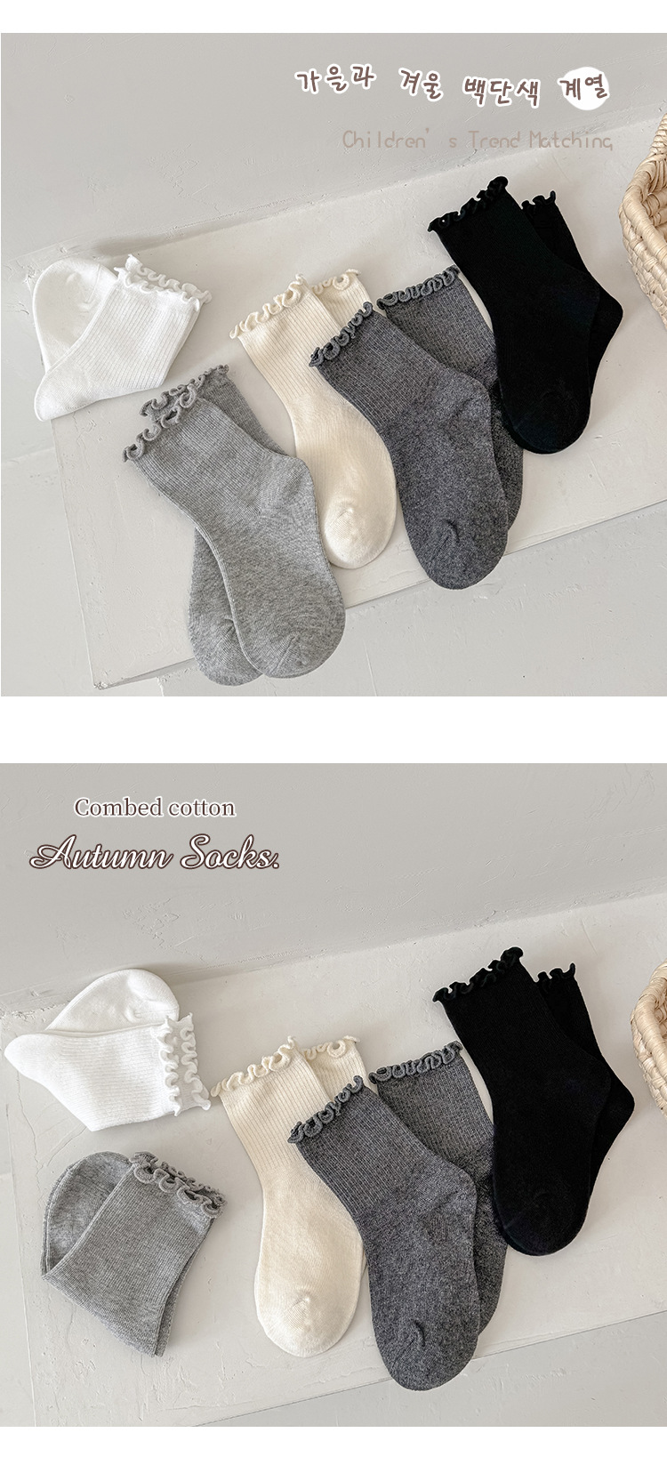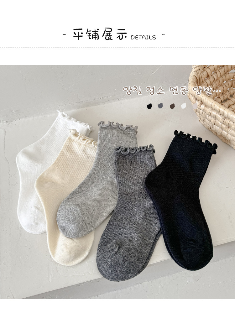 어린이 양말 도매 2024 가을과 겨울 소녀 나무 귀 양말 검은 흰색 일반 튜브 양말 아기면 양말스토어 가기