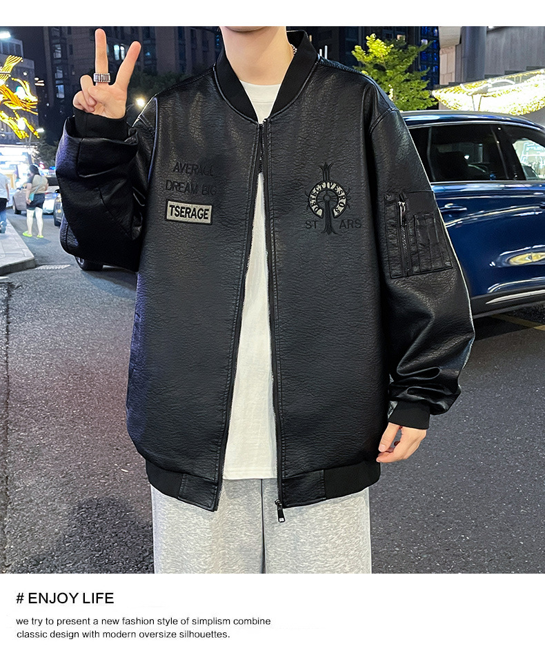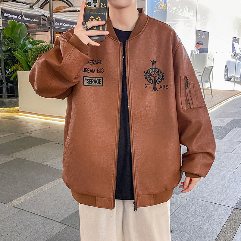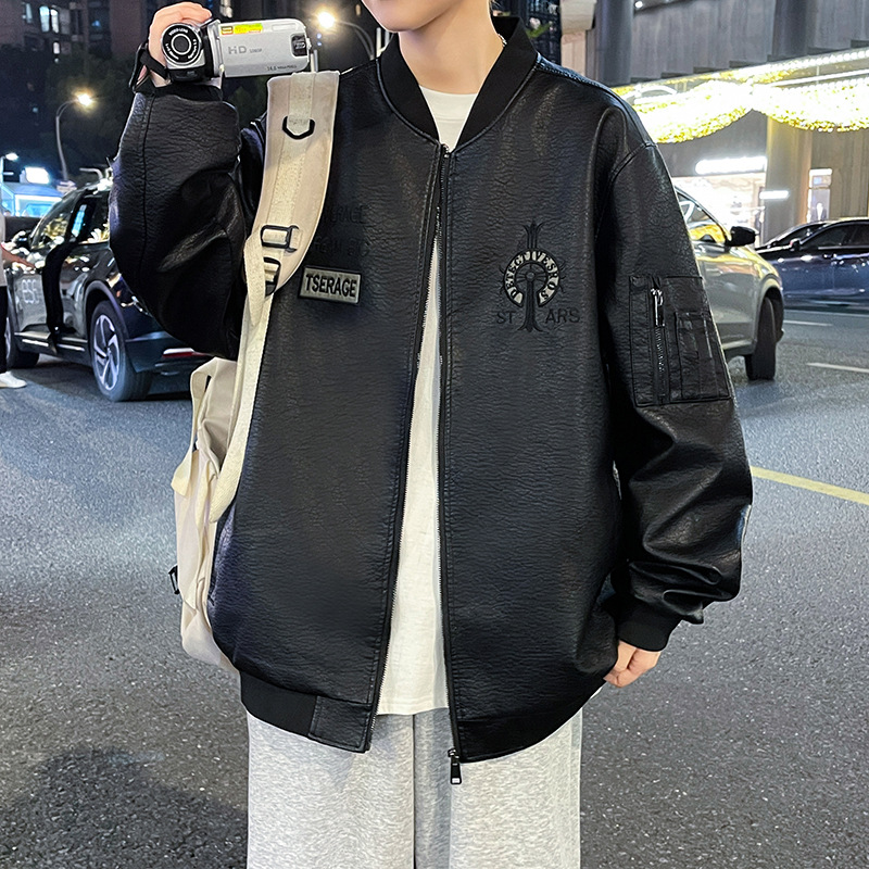 새로운 한국식 유행 잘 생긴 올매치 겨울 플라잉 가죽 자켓 남성 자켓 봄과 가을 바이커 의류 가죽 자켓스토어 가기