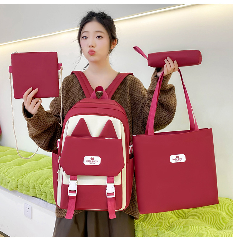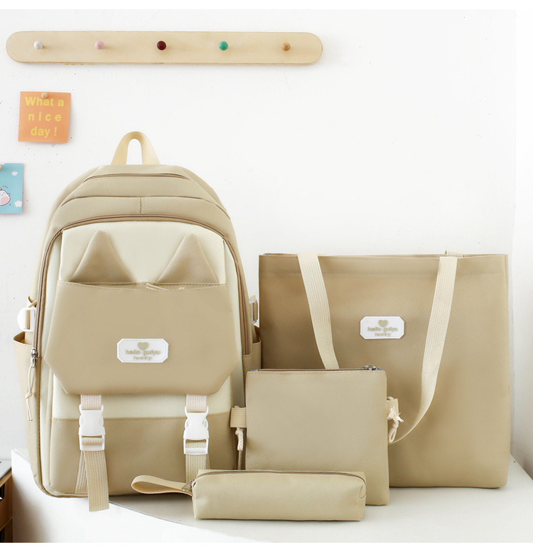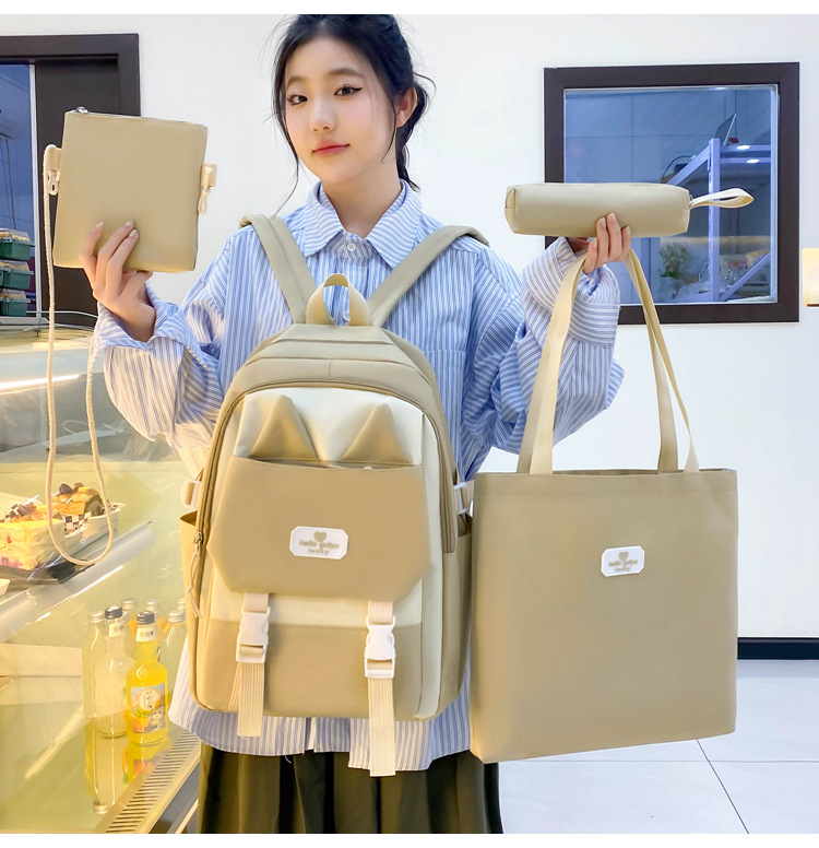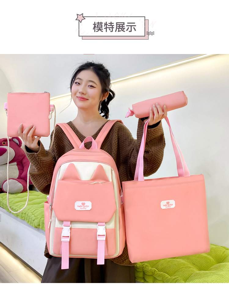 캐주얼 대용량 더블 배낭 4 조각 세트 학생 가방 트램 가방 작은 사첼 연필 가방 4 조각 조합 가방 여성용스토어 가기