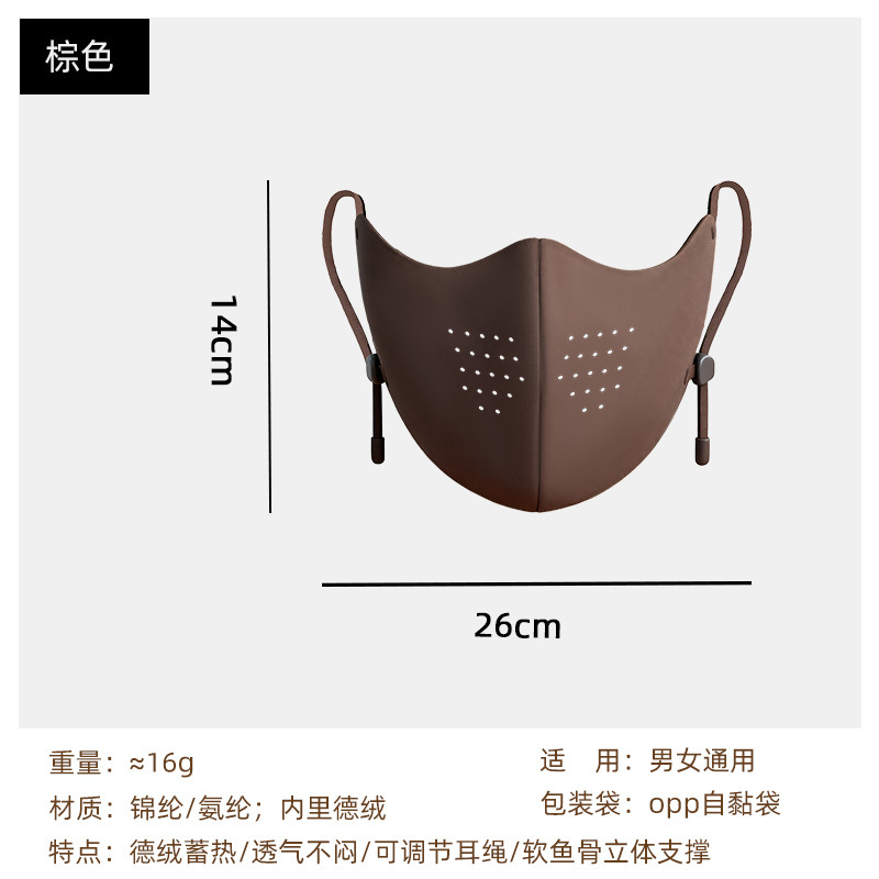 DKZ131为澳绒材质,护眼角立体不蹭妆,嘴巴透气孔设计畅快呼吸,久戴不闷不怕水洗