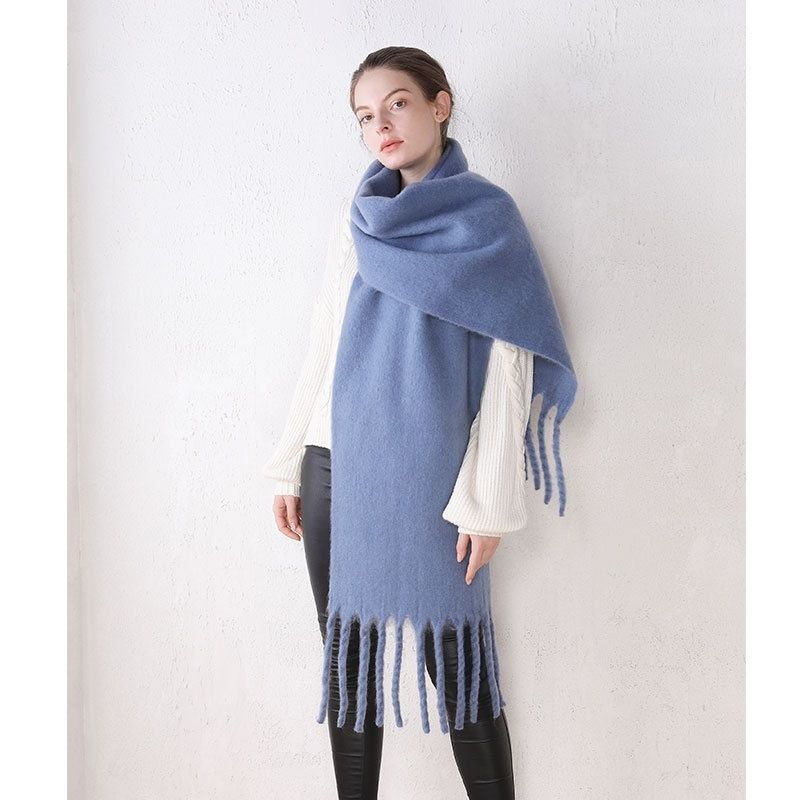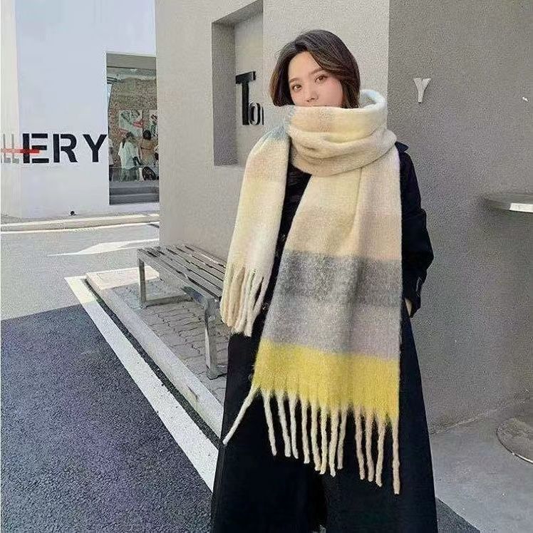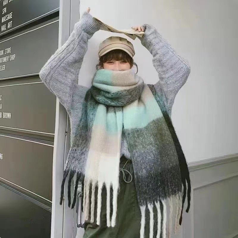Yang Chaolu 동일 스타일 올 매치 스카프 겨울 여자 긴 두꺼운 그라디언트 술 따뜻한 고급 한국 스타일 스카프스토어 가기