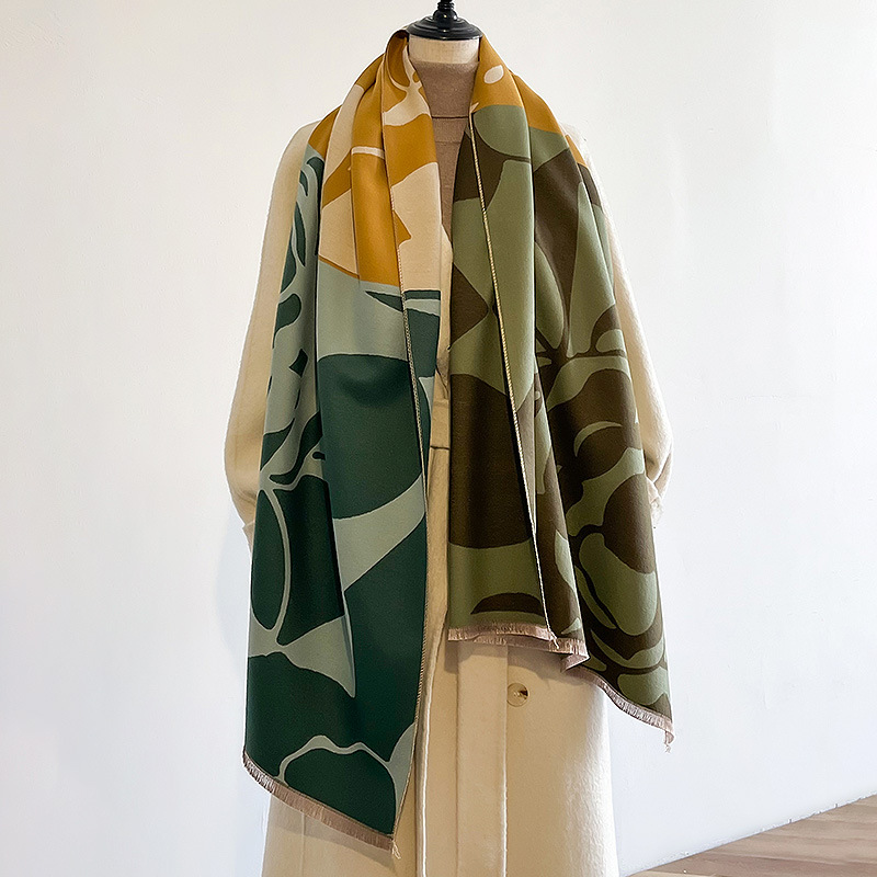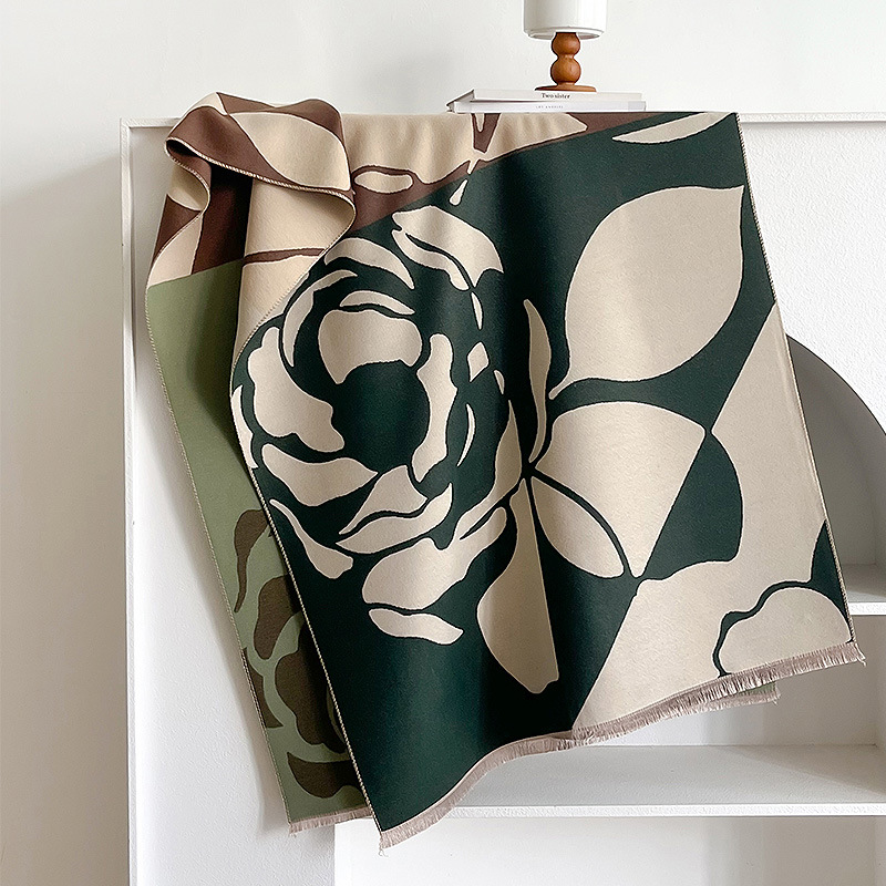 가을과 겨울 식물 동백 컬러 매칭 패션 우아하고 편안한 여성용 캐시미어 열 스카프 에어컨 목도리스토어 가기