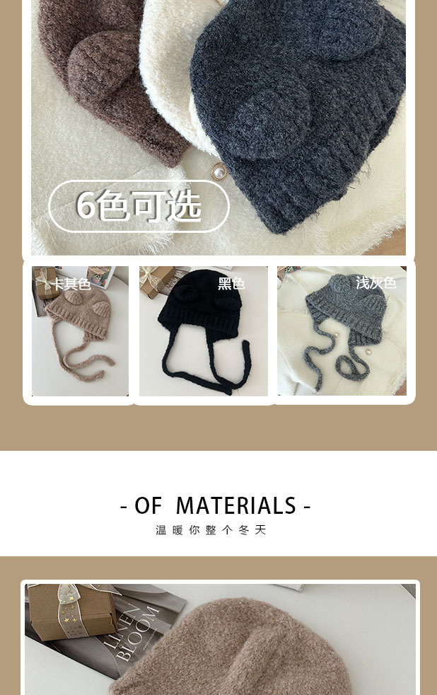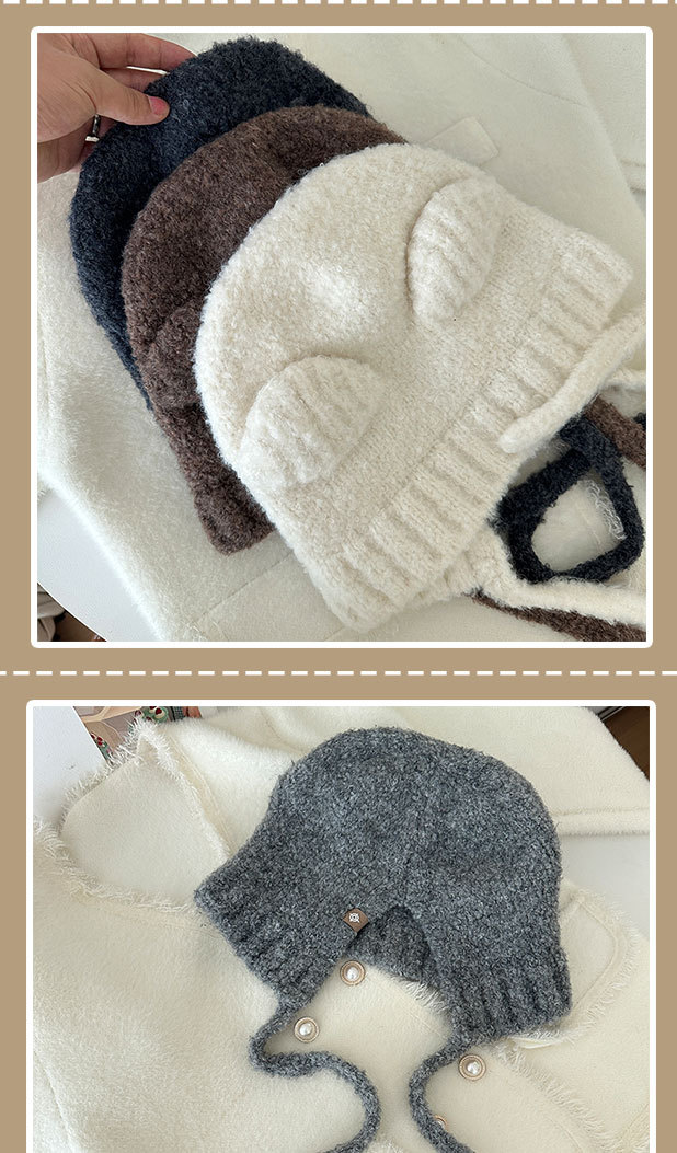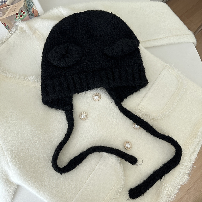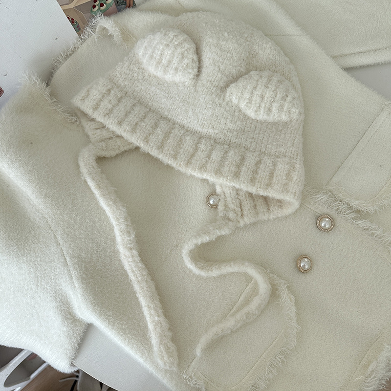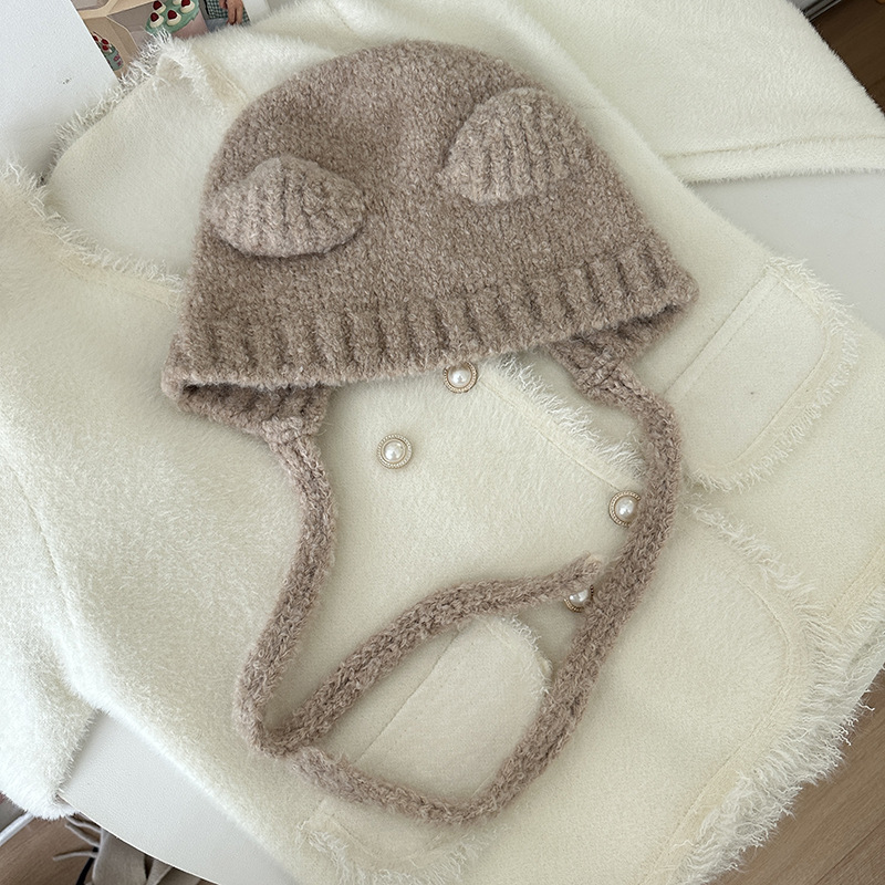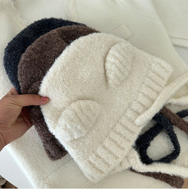업그레이드 된 곰 모자 2024 가을과 겨울 따뜻한 귀 보호 모자 소녀를위한 사랑스러운 곰 귀 니트 양모 모자
