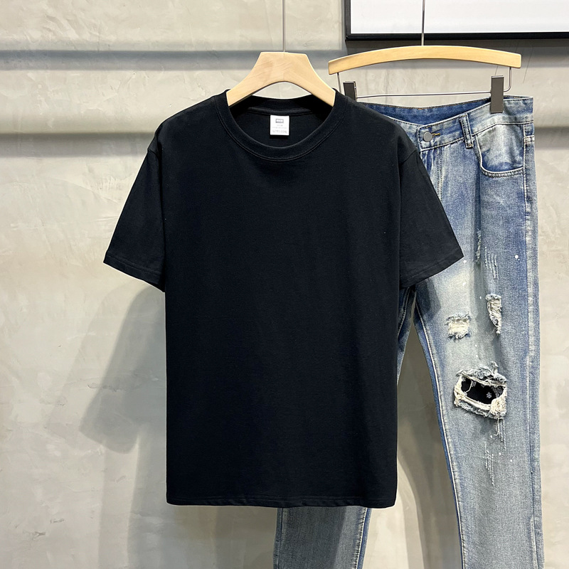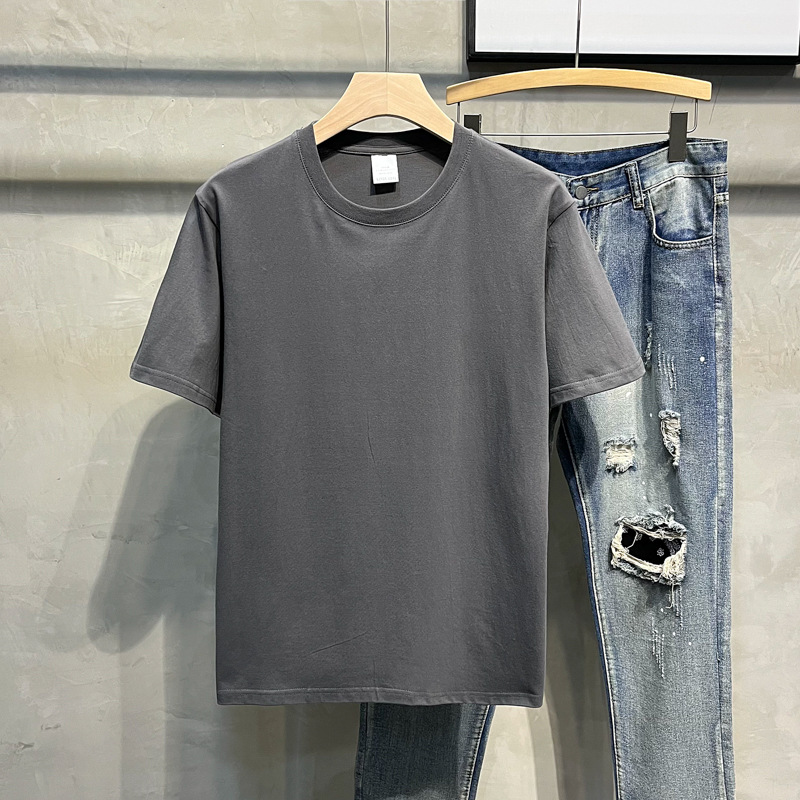 아메리칸 헤비웨이트 퓨어/코튼 남성용 반팔 티셔츠, 루즈하고 편안하며 통기성이 뛰어난 여름 신상 솔리드 컬러 반팔 라운드넥 셔츠
