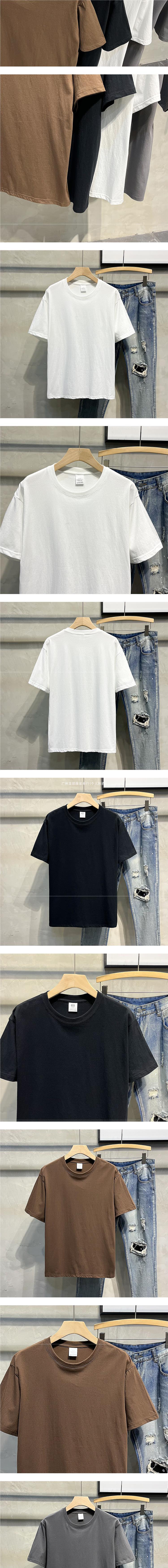 아메리칸 헤비웨이트 퓨어/코튼 남성용 반팔 티셔츠, 루즈하고 편안하며 통기성이 뛰어난 여름 신상 솔리드 컬러 반팔 라운드넥 셔츠스토어 가기