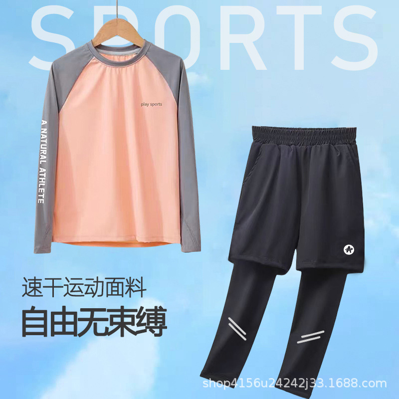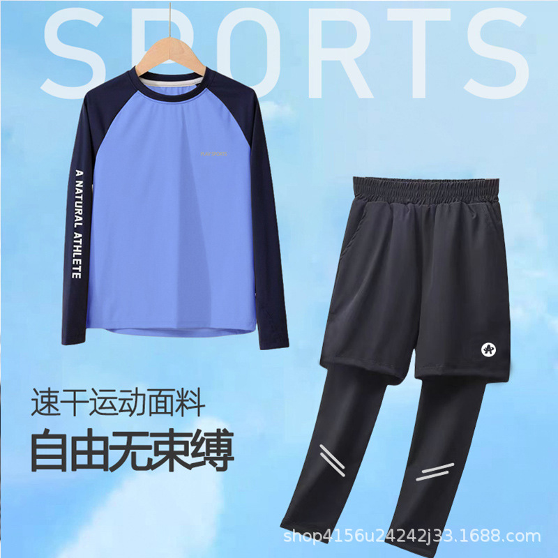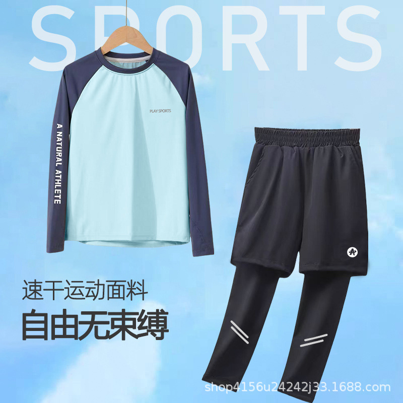 2025 세트 어린이 빠른 건조 옷 스포츠 봄과 가을 새로운 큐크 어린이 아이스 실크 긴 소매 훈련 옷 농구 옷 티셔츠스토어 가기