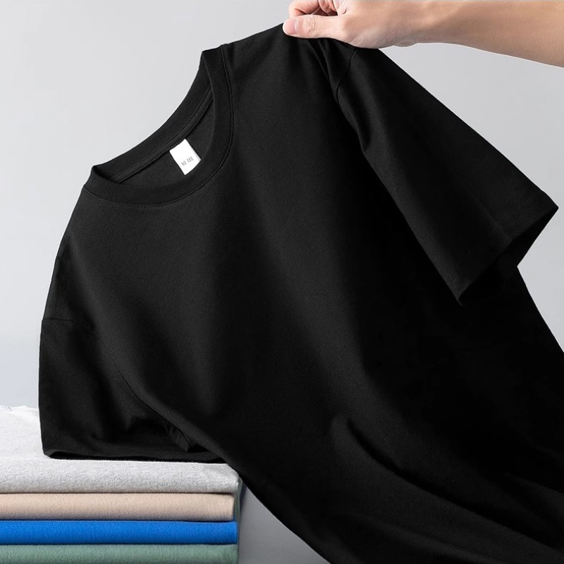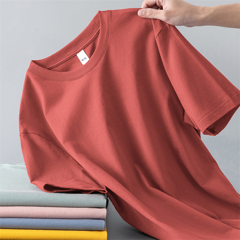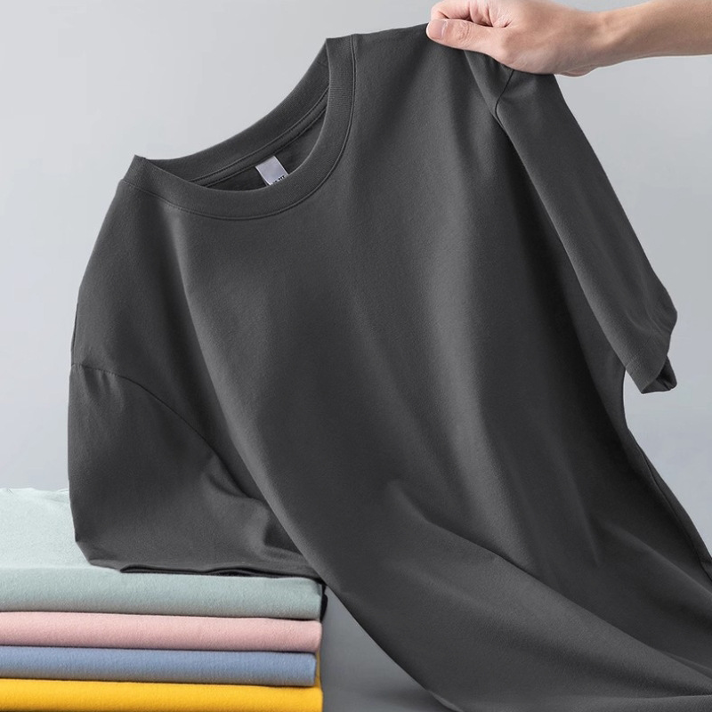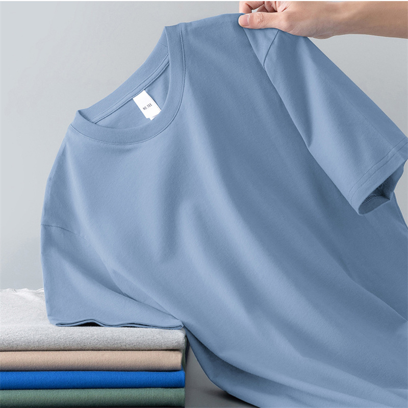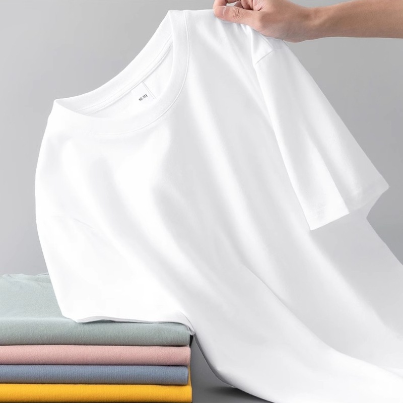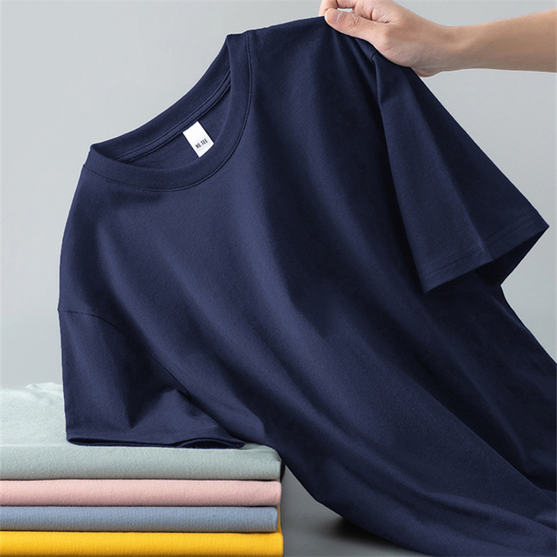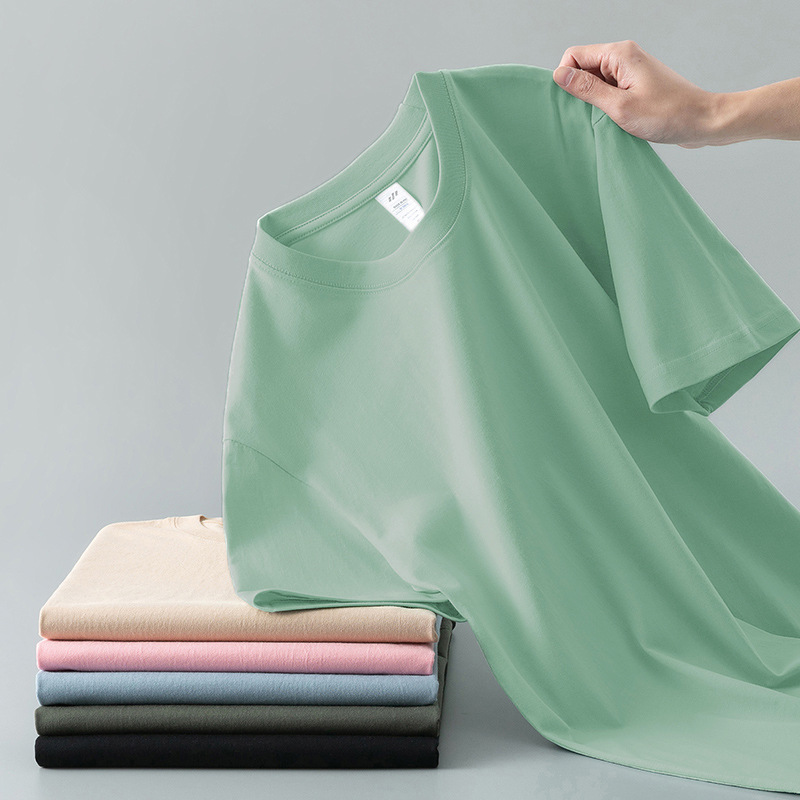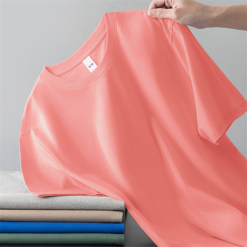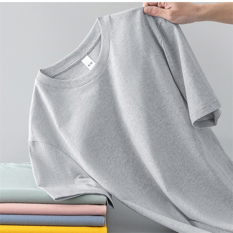 신장 100 순수/면 짧은 소매 티셔츠 남성과 여성 둥근 목 느슨한 단색 커플베이스 2024 새로운 유행 여름스토어 가기