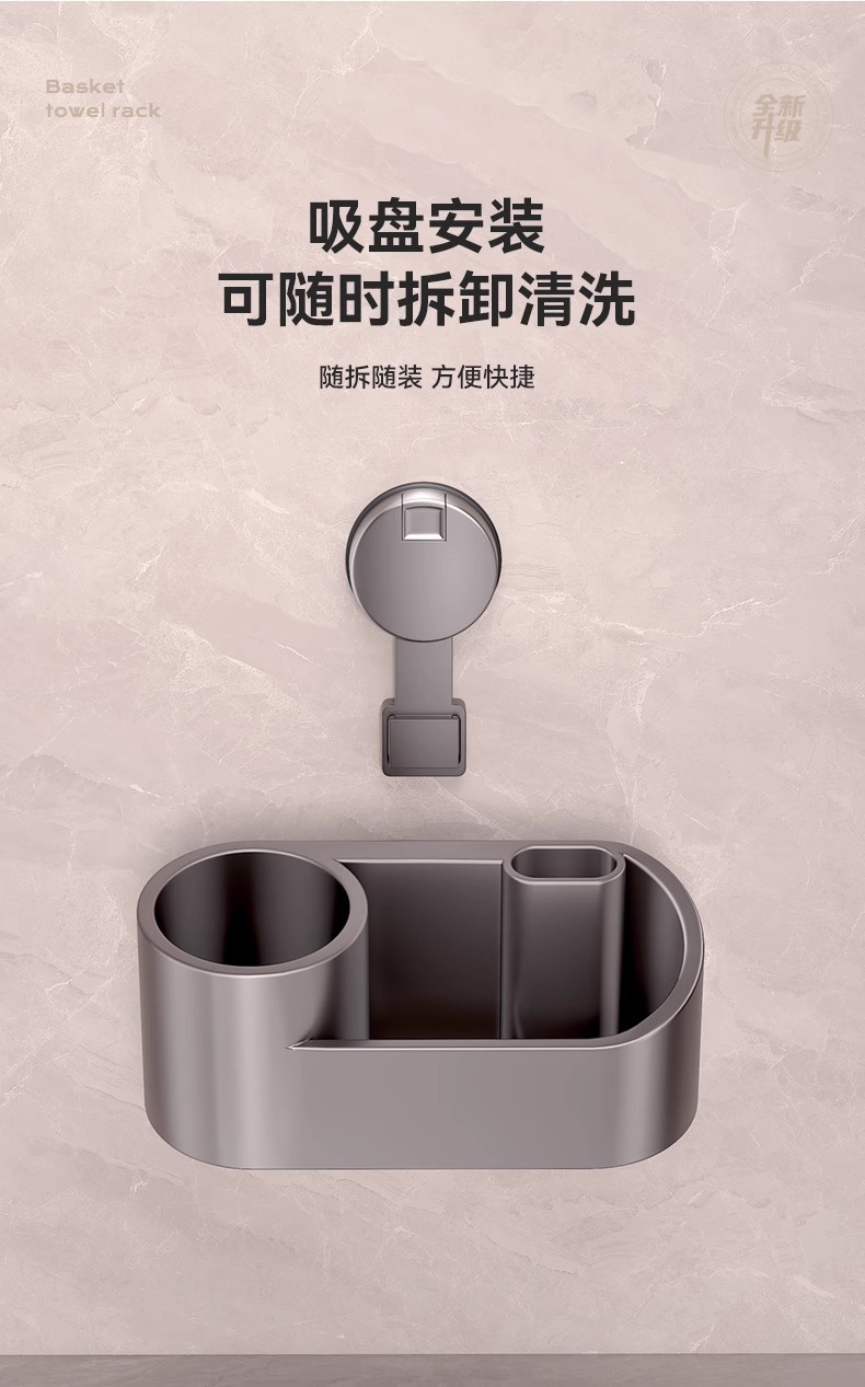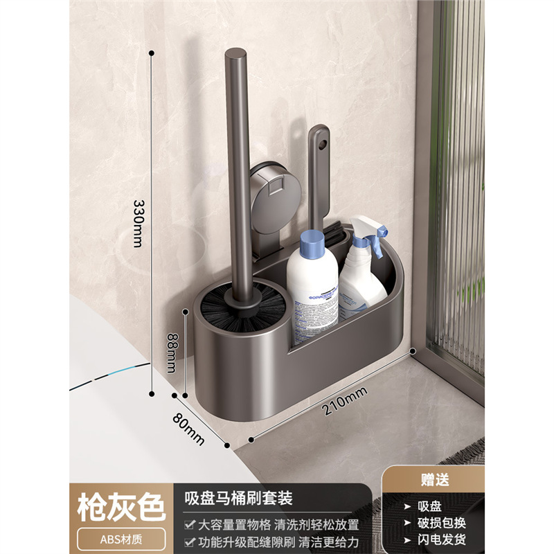 • 흡입 컵 죽은 코가 없는 총 회색 변기 브러시 홀더
