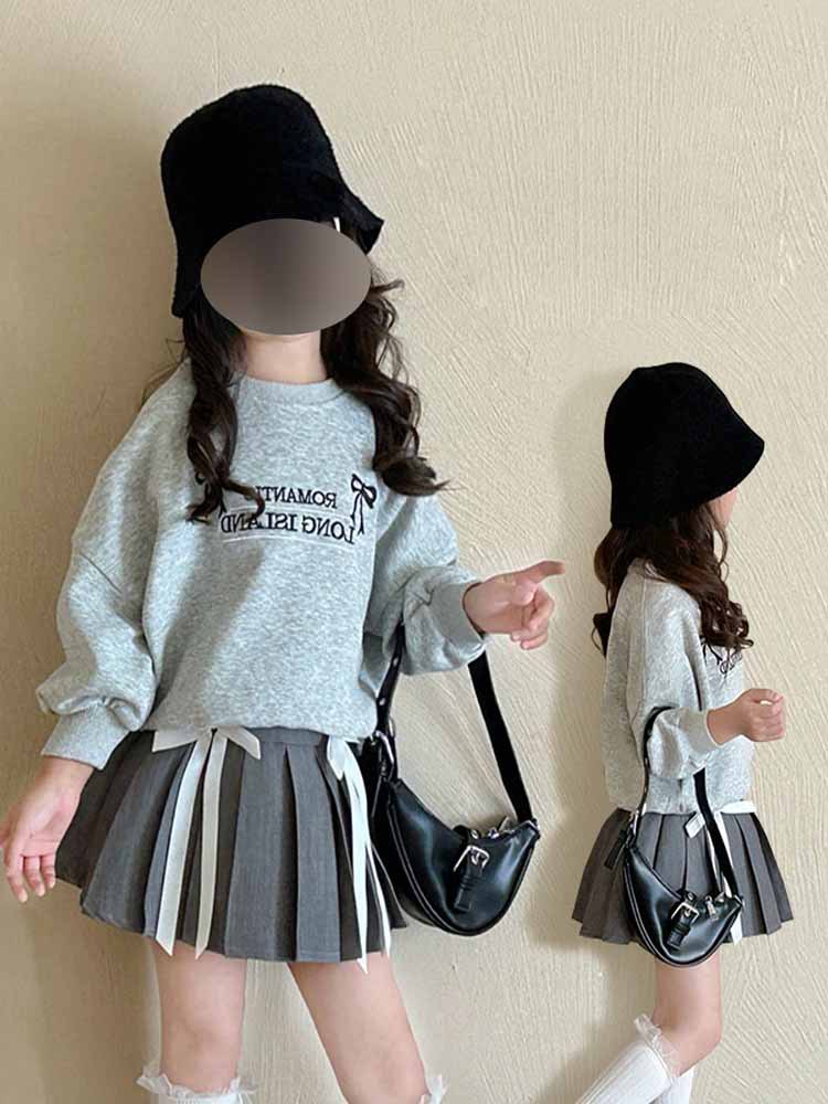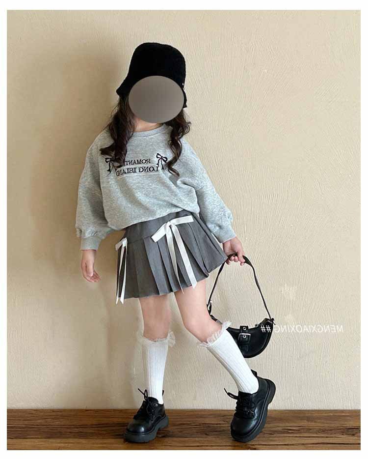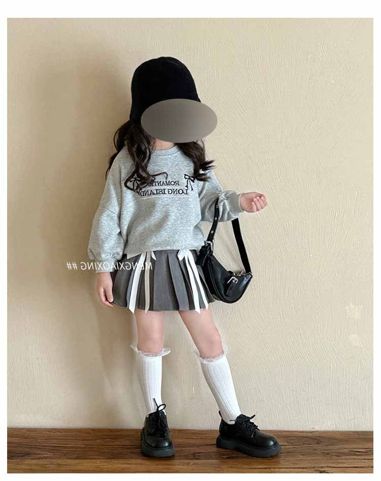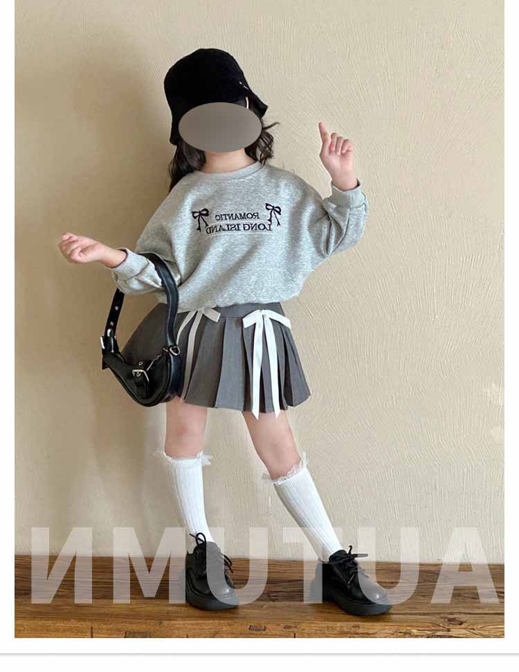 소녀 세트 가을 새 한국어 버전의 긴 소매 편지 스웨터 주름 치마 2 피스 세트 어린이를위한 머리카락스토어 가기