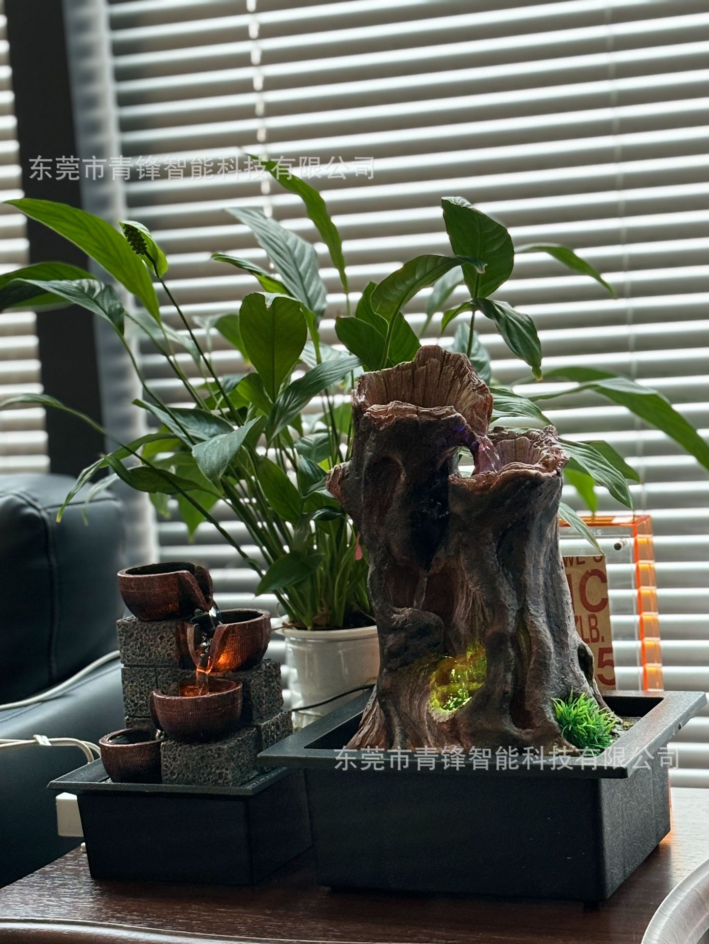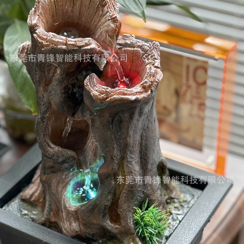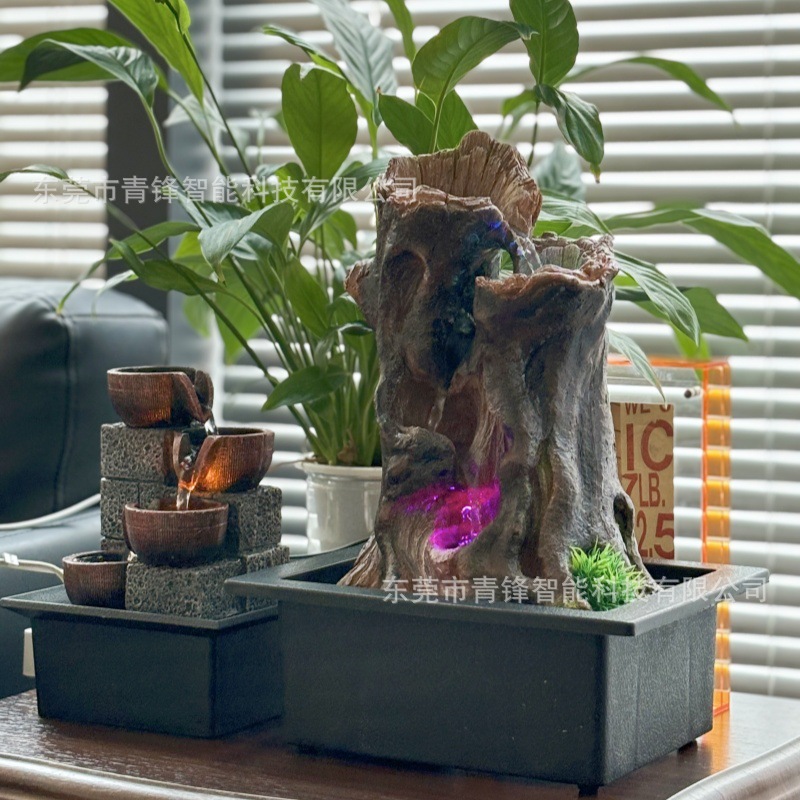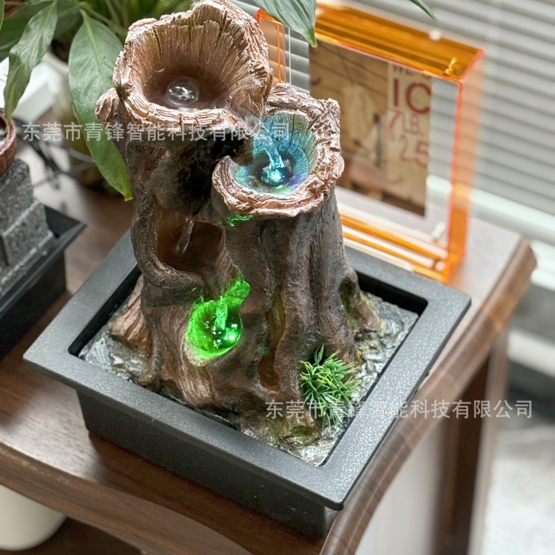수지 인공 식물 데스크탑 중형 분수 장식품 선물 공예품 가정용 물 분수 순환수