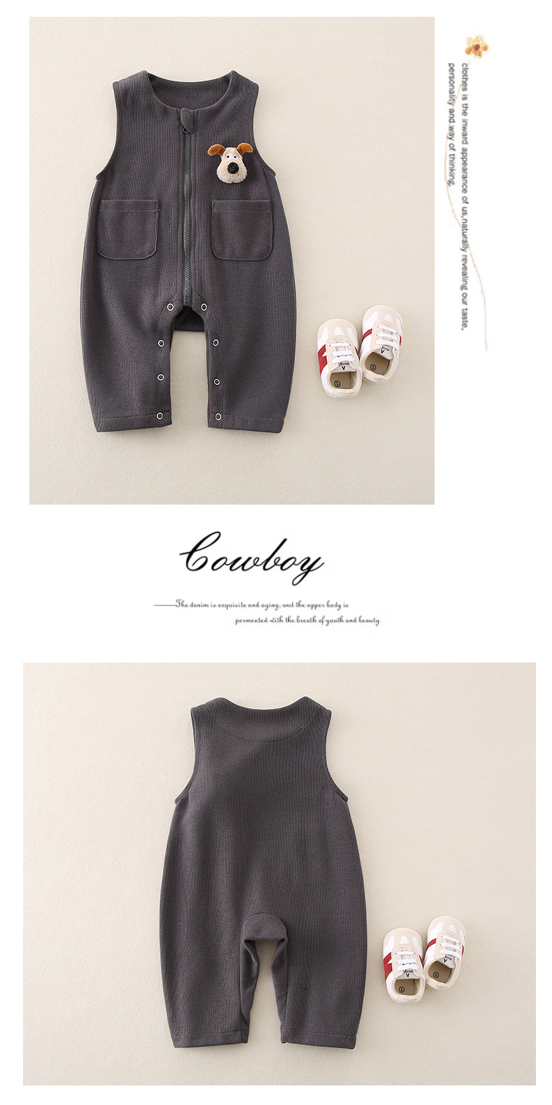 새로운 아기 봄과 가을 민소매 점프 수트 만화 한국식 하퍼 복장 0-12 개월 소년 아기를위한 스트랩 바지