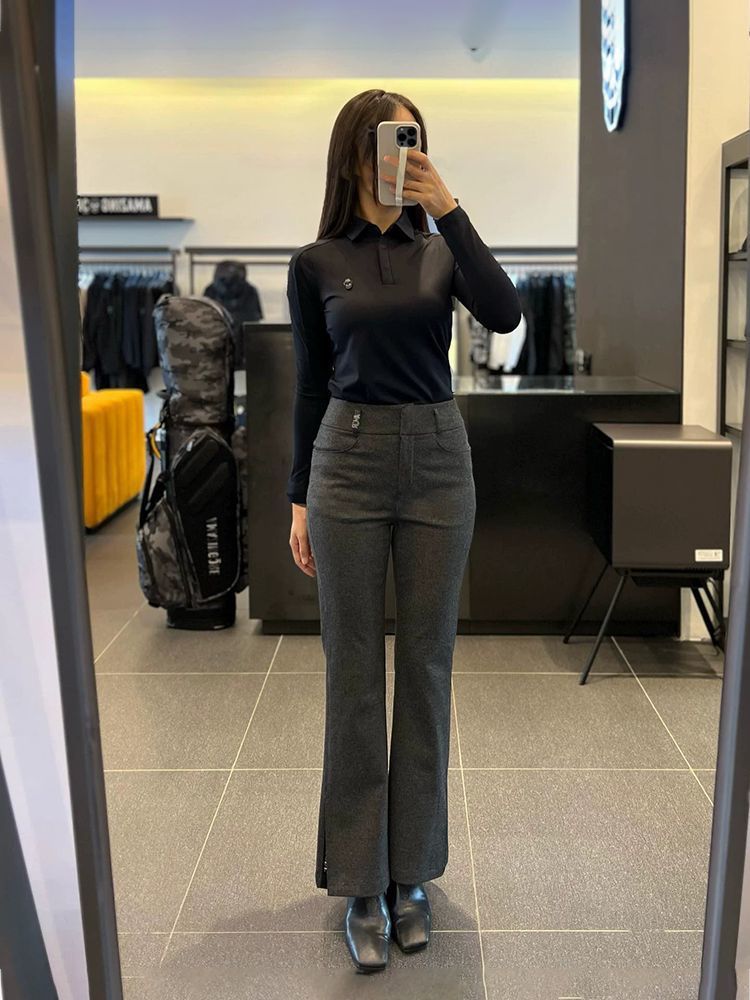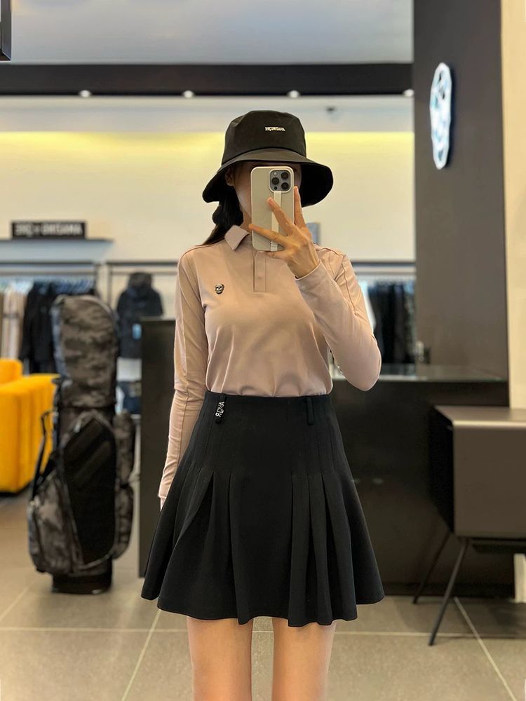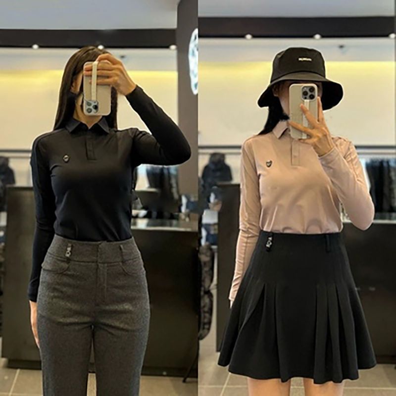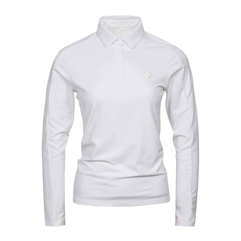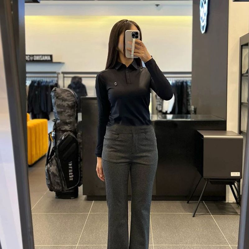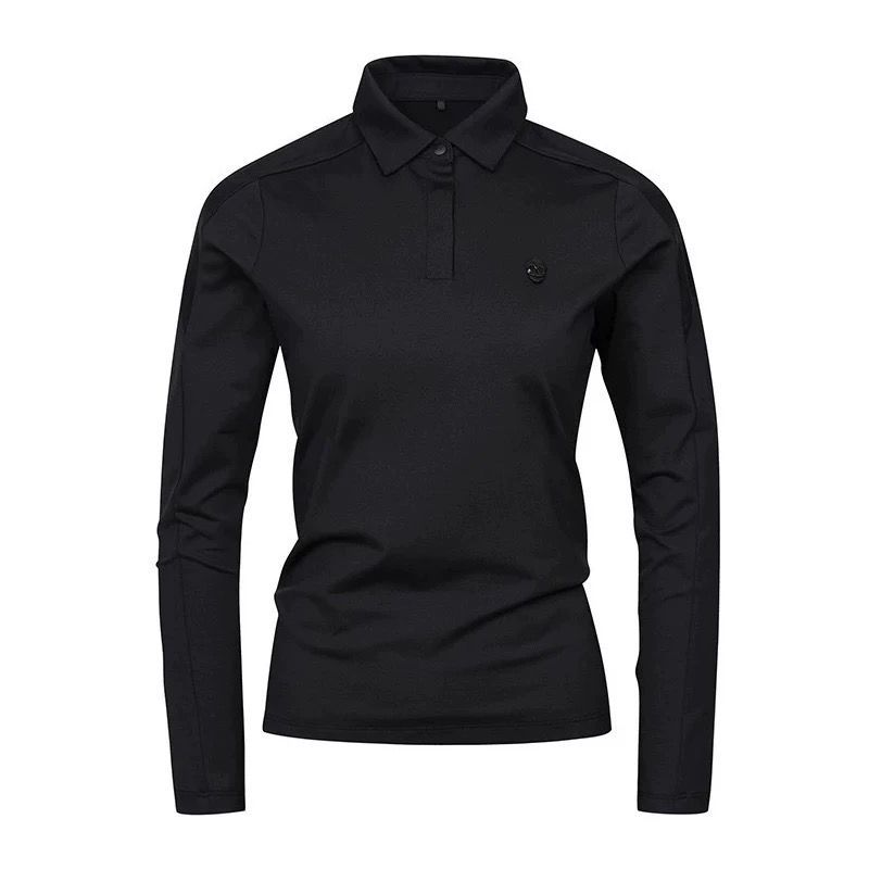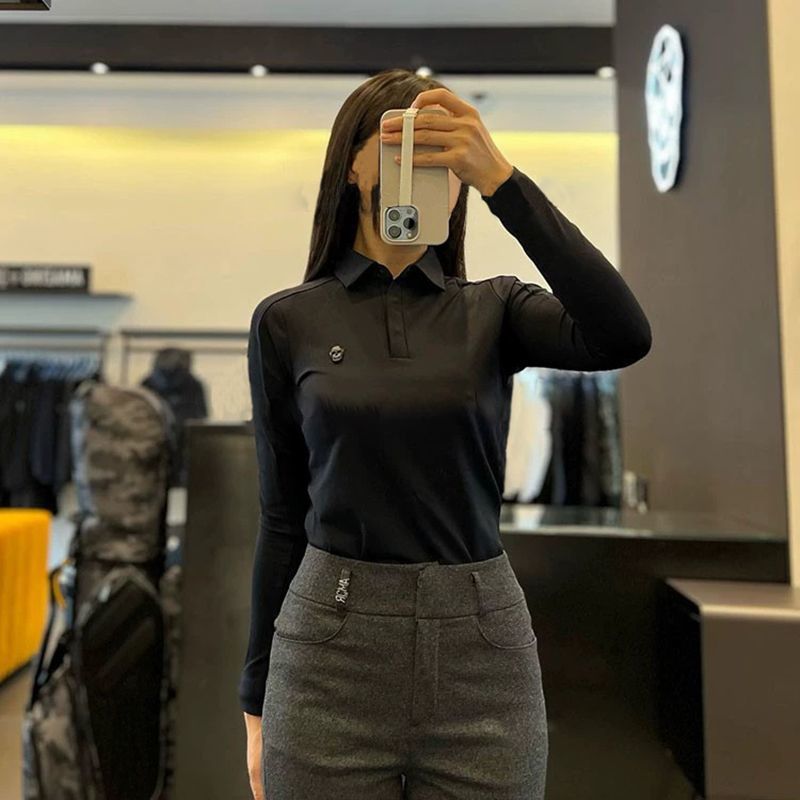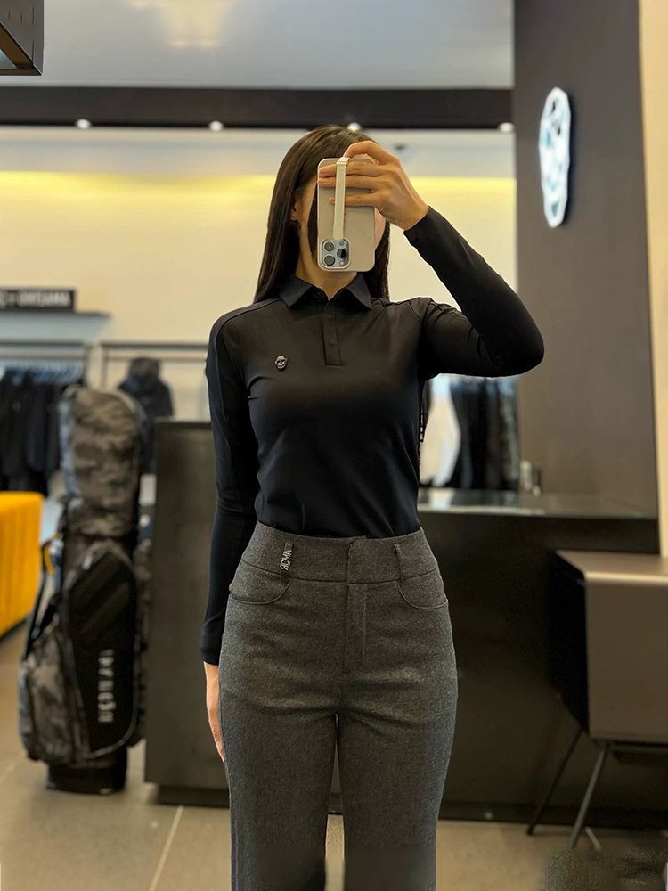 봄과 가을 한국 골프 의류 여성용 솔리드 컬러 입체 로고 탑 라펠 하프 버튼 슬림 긴 소매스토어 가기