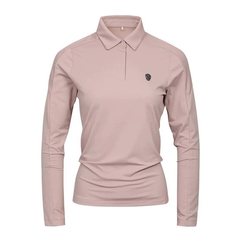 봄과 가을 한국 골프 의류 여성용 솔리드 컬러 입체 로고 탑 라펠 하프 버튼 슬림 긴 소매