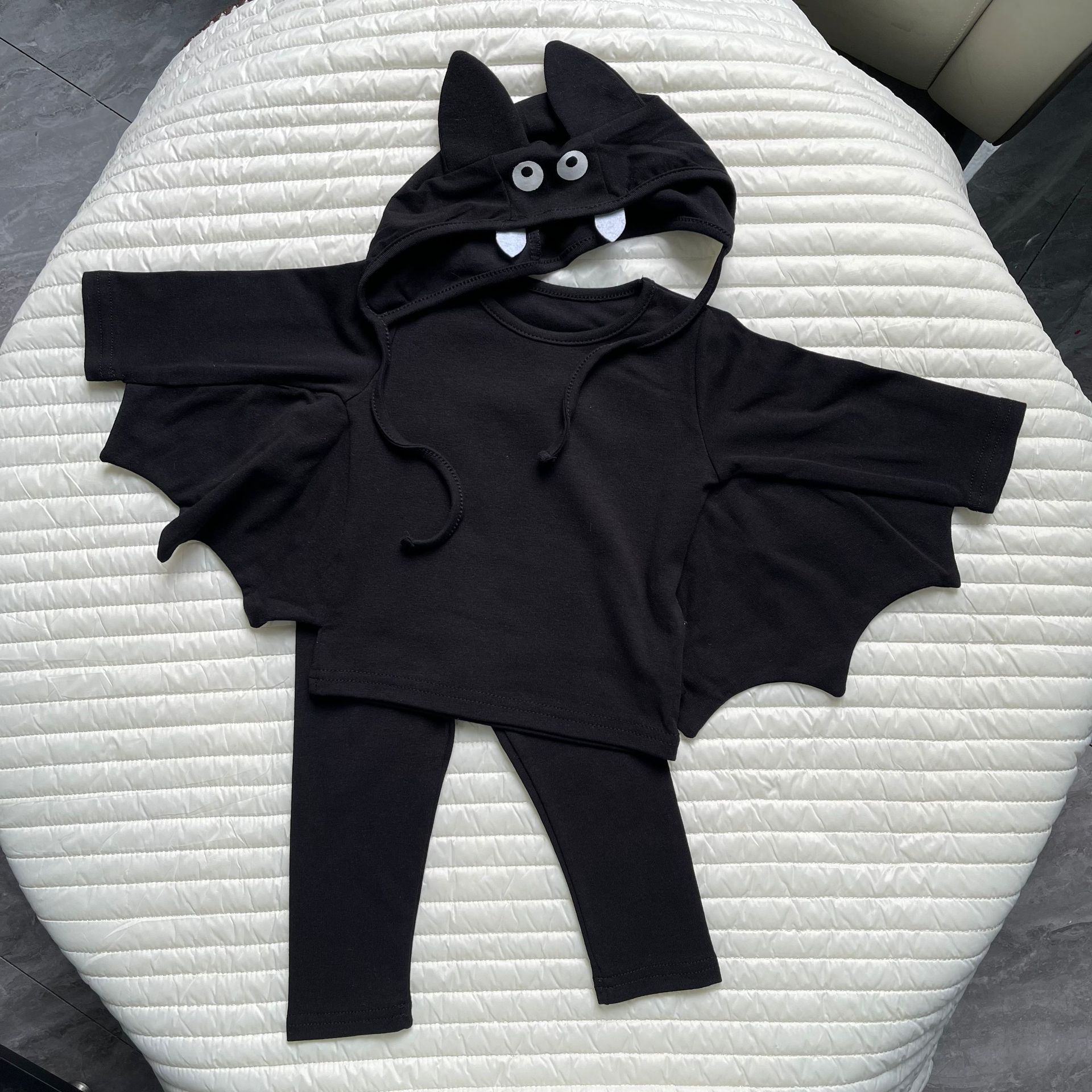 한국식 Ins 봄과 가을 할로윈 테마 박쥐 모양의 세트 단색 어린이 긴팔 새로운 스타일