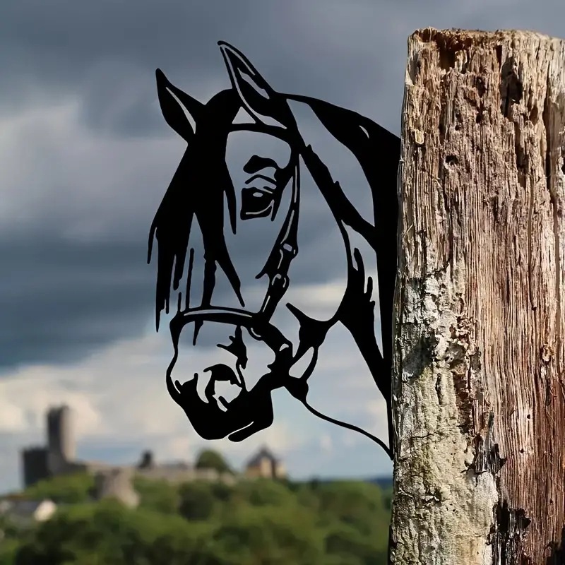 크로스 국경 매력적인 말 실루엣 금속 예술 조각 마을 농가 장식 야외 정원과 울타리 장식스토어 가기